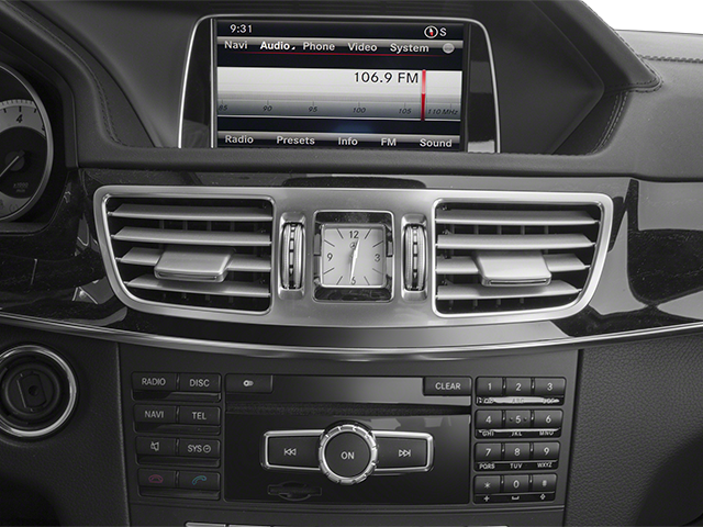 This 2014 Mercedes-Benz E-Class is equipped with 4-Wheel Disc Brakes, 8 Speakers, ABS brakes, Air Conditioning, Alloy wheels, AM/FM radio, Anti-whiplash front head restraints, Auto tilt-away steering wheel, Auto-dimming door mirrors, Auto-dimming Rear-View mirror, Automatic temperature control, Bodyside moldings, Brake assist, Bumpers: body-color, CD player, Delay-off headlights, Driver door bin, Driver vanity mirror, Dual front impact airbags, Dual front side impact airbags, DVD-Audio, Electronic Stability Control, Emergency communication system: mbrace2, Four wheel independent suspension, Front anti-roll bar, Front Bucket Seats, Front Center Armrest, Front dual zone A/C, Front reading lights, Fully automatic headlights, Garage door transmitter: Homelink, Genuine wood console insert, Genuine wood dashboard insert, Genuine wood door panel insert, Head restraints memory, Heated door mirrors, Illuminated entry, Knee airbag, Leather Shift Knob, Leather steering wheel, Low tire pressure warning, MB-Tex Upholstery, Memory seat, Occupant sensing airbag, Outside temperature display, Overhead airbag, Overhead console, Panic alarm, Passenger door bin, Passenger vanity mirror, Power adjustable front head restraints, Power Adjustable Front Seats, Power adjustable rear head restraints, Power door mirrors, Power driver seat, Power moonroof, Power passenger seat, Power steering, Power windows, Premium audio system: COMAND®, Radio data system, Radio: COMAND® AM/FM/WB/In-Dash DVD/CD Player, Rain sensing wipers, Rear anti-roll bar, Rear fog lights, Rear reading lights, Rear seat center armrest, Rear window defroster, Remote keyless entry, Security system, Speed control, Speed-sensing steering, Steering wheel memory, Steering wheel mounted audio controls, Tachometer, Telescoping steering wheel, Tilt steering wheel, Traction control, Trip computer, Turn signal indicator mirrors, Variably intermittent wipers, Weather band radio, and Wheels: 17 5-Spoke Wheels.