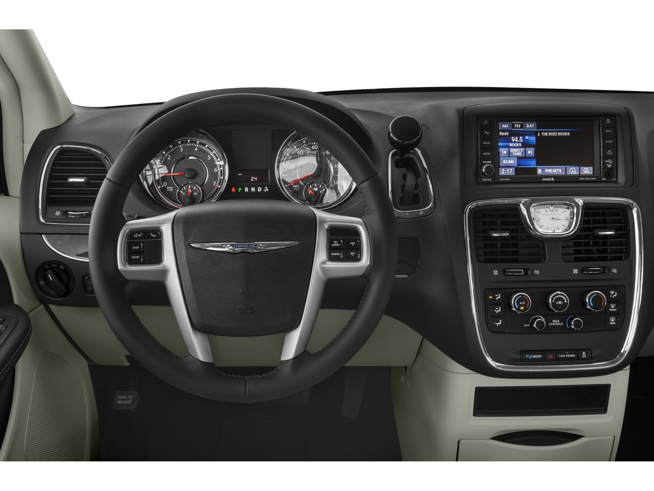 This 2015 Chrysler Town & Country is equipped with Quick Order Package 29K, Black/Light Graystone Leather, Garmin Navigation System, 17 x 6.5 Aluminum Wheels, 3.16 Axle Ratio, 3rd row seats: split-bench, 4-Wheel Disc Brakes, 40GB Hard Drive w/28GB Available, 5-Year SiriusXM Travel Link Service, 6 Speakers, 6.5 Touch Screen Display, A/V remote, ABS brakes, Air Conditioning, Alloy wheels, AM/FM radio: SiriusXM, Anti-whiplash front head restraints, Audio Jack Input for Mobile Devices, Auto-dimming Rear-View mirror, Automatic temperature control, Bodyside moldings, Brake assist, Bumpers: body-color, CD player, Compass, Delay-off headlights, Driver door bin, Driver vanity mirror, Driver's Seat Mounted Armrest, Dual front impact airbags, Dual front side impact airbags, DVD-Audio, Electronic Stability Control, Entertainment system, Front anti-roll bar, Front Bucket Seats, Front dual zone A/C, Front fog lights, Front reading lights, Front wheel independent suspension, Fully automatic headlights, Garage door transmitter, Headphones, Heated door mirrors, Illuminated entry, Knee airbag, Leather Shift Knob, Leather Trimmed Bucket Seats, Low tire pressure warning, Manufacturer's Statement of Origin, MP3 decoder, Occupant sensing airbag, Outside temperature display, Overhead airbag, Overhead console, Panic alarm, ParkView Rear Back-Up Camera, Passenger door bin, Passenger seat mounted armrest, Passenger vanity mirror, Power door mirrors, Power driver seat, Power Liftgate, Power steering, Power windows, Radio data system, Radio: Uconnect 430 CD/DVD/MP3/HDD, Radio: Uconnect 430N CD/DVD/MP3/HDD/NAV, Rear air conditioning, Rear reading lights, Rear window defroster, Rear window wiper, Reclining 3rd row seat, Remote keyless entry, Roof rack, Security Alarm, SiriusXM Travel Link, Speed control, Split folding rear seat, Spoiler, Steering wheel mounted audio controls, Tachometer, Telescoping steering wheel, Tilt steering wheel, Touring Suspension, Traction control, Trip computer, and Variably intermittent wipers.
