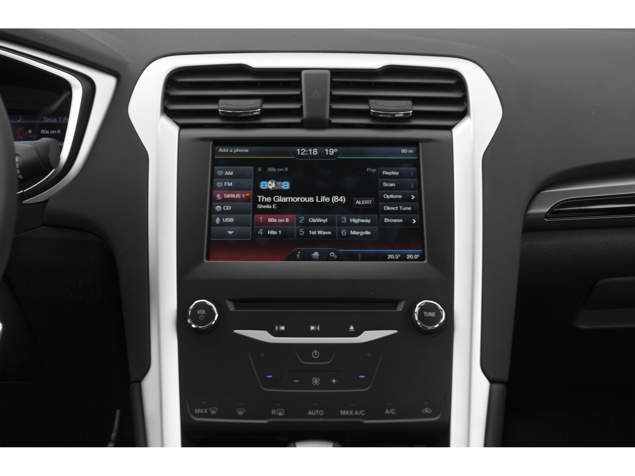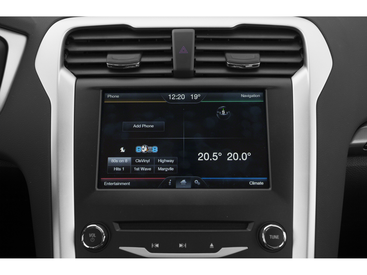 This 2015 Ford Fusion is equipped with 6-Speed Automatic, 17 Painted Aluminum Wheels, 4-Wheel Disc Brakes, 6 Speakers, ABS brakes, Air Conditioning, Alloy wheels, AM/FM radio: SiriusXM, Brake assist, Bumpers: body-color, CD player, Cloth Front Bucket Seats, Compass, Delay-off headlights, Driver door bin, Driver vanity mirror, Dual front impact airbags, Dual front side impact airbags, Electronic Stability Control, Exterior Parking Camera Rear, Four wheel independent suspension, Front anti-roll bar, Front Bucket Seats, Front Center Armrest, Front reading lights, Fully automatic headlights, Heated door mirrors, Illuminated entry, Knee airbag, Low tire pressure warning, Occupant sensing airbag, Outside temperature display, Overhead airbag, Overhead console, Panic alarm, Passenger door bin, Passenger vanity mirror, Power door mirrors, Power driver seat, Power passenger seat, Power steering, Power windows, Radio data system, Radio: AM/FM Stereo/MP3/Single-CD, Rear anti-roll bar, Rear reading lights, Rear seat center armrest, Rear window defroster, Remote keyless entry, Security system, SIRIUS Satellite Radio, Speed control, Speed-sensing steering, Speed-Sensitive Wipers, Split folding rear seat, Steering wheel mounted audio controls, SYNC Communications & Entertainment System, Tachometer, Telescoping steering wheel, Tilt steering wheel, Traction control, Trip computer, Turn signal indicator mirrors, and Variably intermittent wipers.