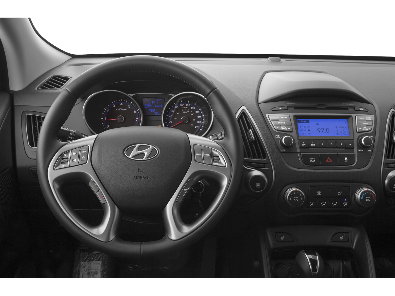 This 2015 Hyundai Tucson is equipped with Option Group 01, 17 x 6.5 Alloy Wheels, Heated Front Bucket Seats, Heated front seats, Leatherette seat bolsters w/cloth insert, Power driver seat, 3.064 Axle Ratio, 4-Wheel Disc Brakes, 6 Speakers, ABS brakes, Air Conditioning, Alloy wheels, AM/FM radio: SiriusXM, Anti-whiplash front head restraints, Brake assist, Bumpers: body-color, Carpeted Floor Mats, Carpeted Rear Cargo Mat, CD player, Delay-off headlights, Driver door bin, Driver vanity mirror, Dual front impact airbags, Dual front side impact airbags, Electronic Stability Control, Exterior Parking Camera Rear, First Aid Kit, Four wheel independent suspension, Front anti-roll bar, Front Bucket Seats, Front Center Armrest, Front fog lights, Front reading lights, Fully automatic headlights, Illuminated entry, Low tire pressure warning, Mudguards, Occupant sensing airbag, Overhead airbag, Overhead console, Panic alarm, Passenger door bin, Passenger vanity mirror, Power door mirrors, Power steering, Power windows, Radio: Autonet AM/FM/CD/MP3 Audio System, Rear anti-roll bar, Rear seat center armrest, Rear window defroster, Rear window wiper, Remote keyless entry, Roof rack: rails only, Security system, Speed control, Speed-sensing steering, Split folding rear seat, Spoiler, Steering wheel mounted audio controls, Tachometer, Telescoping steering wheel, Tilt steering wheel, Traction control, Trip computer, and Variably intermittent wipers.