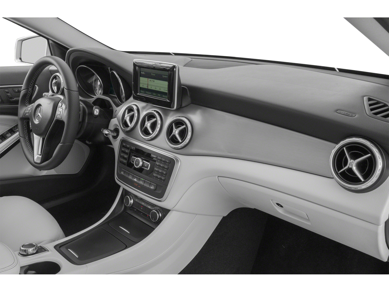 This 2015 Mercedes-Benz GLA is equipped with 18 Twin 5-Spoke Alloy Wheels, 4-Wheel Disc Brakes, 4.13 Axle Ratio, 8 Speakers, ABS brakes, Air Conditioning, Alloy wheels, AM/FM radio, AM/FM/CD/MP3 Audio System, Brake assist, Bumpers: body-color, CD player, Child-Seat-Sensing Airbag, Delay-off headlights, Driver door bin, Driver vanity mirror, Dual front impact airbags, Dual front side impact airbags, Electronic Stability Control, Emergency communication system, Four wheel independent suspension, Front anti-roll bar, Front Bucket Seats, Front Center Armrest, Front fog lights, Front Power Seats, Front reading lights, Fully automatic headlights, Heated door mirrors, Illuminated entry, Knee airbag, Low tire pressure warning, MB-Tex Upholstery, Memory seat, Occupant sensing airbag, Outside temperature display, Overhead airbag, Overhead console, Panic alarm, Passenger door bin, Passenger vanity mirror, Power door mirrors, Power driver seat, Power Liftgate, Power passenger seat, Power steering, Power windows, Premium audio system: COMAND®, Radio data system, Rain sensing wipers, Rear anti-roll bar, Rear fog lights, Rear reading lights, Rear seat center armrest, Rear window defroster, Remote keyless entry, Roof rack: rails only, Security system, Speed control, Speed-sensing steering, Split folding rear seat, Spoiler, Steering wheel mounted audio controls, Tachometer, Telescoping steering wheel, Tilt steering wheel, Traction control, Trip computer, Turn signal indicator mirrors, Variably intermittent wipers, and Weather band radio.