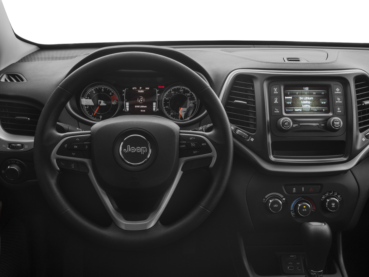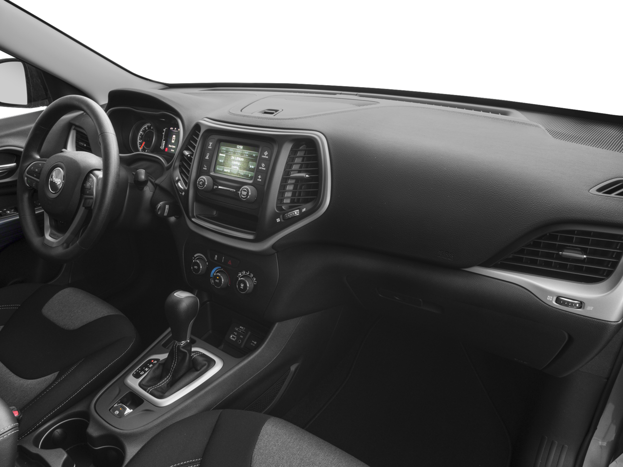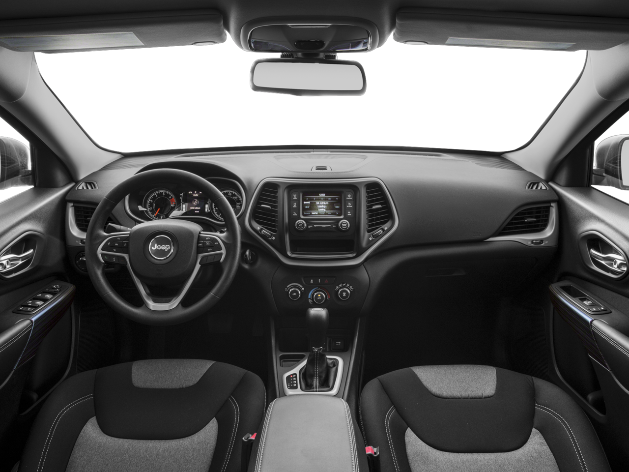 This 2016 Jeep Cherokee is equipped with Quick Order Package 24A, Sport Appearance Group (DISC) (Gloss Black Roof Rails and Wheels: 17 x 7 Aluminum (DISC)), 3.73 Axle Ratio, 4-Wheel Disc Brakes, 6 Speakers, 600 Amp Maintenance Free Battery, ABS brakes, Active Grille Shutters, AM/FM radio, Anti-whiplash front head restraints, Auxiliary Transmission Oil Cooler, Brake assist, Bumpers: body-color, Cloth Low-Back Bucket Seats, Compass, Delay-off headlights, Driver door bin, Driver vanity mirror, Dual front impact airbags, Dual front side impact airbags, Electronic Stability Control, Engine Oil Cooler, Four wheel independent suspension, Front anti-roll bar, Front Bucket Seats, Front Center Armrest, Front reading lights, Illuminated entry, Knee airbag, Low tire pressure warning, Normal Duty Suspension, Occupant sensing airbag, Outside temperature display, Overhead airbag, Overhead console, Panic alarm, Passenger door bin, Passenger vanity mirror, Power door mirrors, Power steering, Power windows, Radio data system, Radio: Uconnect 5.0, Rear anti-roll bar, Rear reading lights, Rear seat center armrest, Rear side impact airbag, Rear window defroster, Rear window wiper, Remote keyless entry, Speed control, Speed-sensing steering, Split folding rear seat, Spoiler, Tachometer, Telescoping steering wheel, Tilt steering wheel, Traction control, Trip computer, Variably intermittent wipers, Voltmeter, and Wheels: 17 x 7 Full Face Steel.