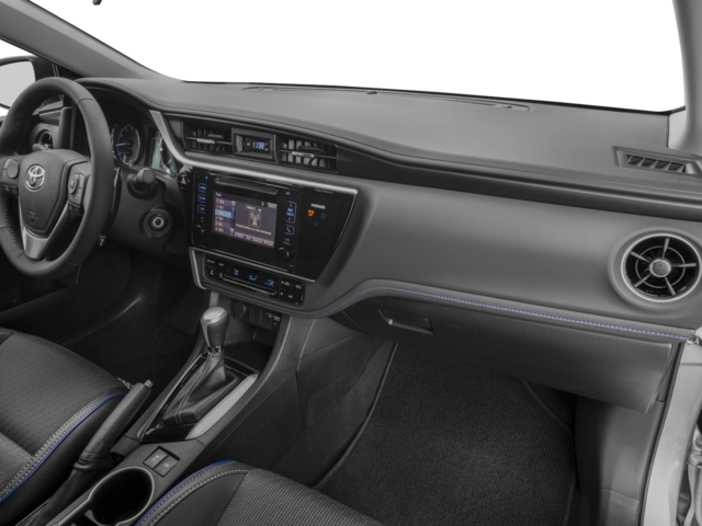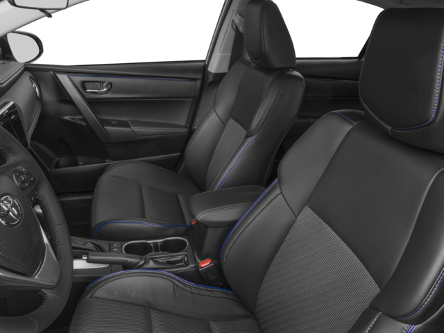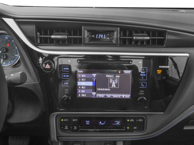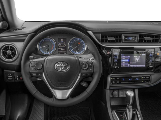 This 2017 Toyota Corolla is equipped with 4-Wheel Disc Brakes, 6 Speakers, ABS brakes, Air Conditioning, Alloy wheels, AM/FM radio, Auto High-beam Headlights, Automatic temperature control, Brake assist, Bumpers: body-color, CD player, Delay-off headlights, Driver door bin, Driver vanity mirror, Dual front impact airbags, Dual front side impact airbags, Electronic Stability Control, Exterior Parking Camera Rear, Fabric Seat Trim w/SofTex, Front anti-roll bar, Front Bucket Seats, Front Center Armrest w/Storage, Front reading lights, Front Sport Bucket Seats, Front wheel independent suspension, Fully automatic headlights, Heated door mirrors, Illuminated entry, Knee airbag, Leather steering wheel, Low tire pressure warning, Occupant sensing airbag, Outside temperature display, Overhead airbag, Panic alarm, Passenger door bin, Passenger vanity mirror, Power door mirrors, Power steering, Power windows, Radio data system, Radio: Entune Audio Plus w/Connected Navigation, Radio: Entune Audio w/6.1 Screen, Rear anti-roll bar, Rear seat center armrest, Rear window defroster, Remote keyless entry, Smart Key System w/Push Button Start, Speed control, Speed-sensing steering, Split folding rear seat, Spoiler, Steering wheel mounted audio controls, Tachometer, Telescoping steering wheel, Tilt & Slide Moonroof, Tilt steering wheel, Traction control, Trip computer, Turn signal indicator mirrors, Variably intermittent wipers, and Wheels: 17 x 7.0 Machined Alloy.