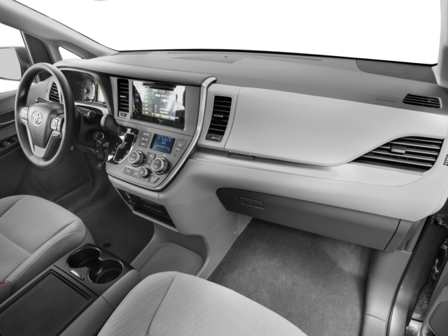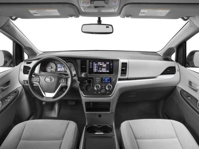 This 2017 Toyota Sienna is equipped with 17 x 6.5 5-Spoke Alloy Wheels, 3rd row seats: split-bench, 4-Wheel Disc Brakes, 6 Speakers, ABS brakes, Air Conditioning, Alloy wheels, AM/FM radio: SiriusXM, Auto-dimming Rear-View mirror, Automatic temperature control, Axle Ratio: 3.94, Brake assist, Bumpers: body-color, CD player, Compass, Delay-off headlights, Door auto-latch, Driver door bin, Driver vanity mirror, Driver's Seat Mounted Armrest, Dual front impact airbags, Dual front side impact airbags, Electronic Stability Control, Exterior Parking Camera Rear, Fabric Seat Material, Front anti-roll bar, Front Bucket Seats, Front dual zone A/C, Front reading lights, Front wheel independent suspension, Fully automatic headlights, Garage door transmitter: HomeLink, Heated door mirrors, Illuminated entry, Knee airbag, Low tire pressure warning, Occupant sensing airbag, Outside temperature display, Overhead airbag, Overhead console, Panic alarm, Passenger door bin, Passenger seat mounted armrest, Passenger vanity mirror, Power door mirrors, Power driver seat, Power steering, Power windows, Radio data system, Radio: AM/FM/HD/CD w/6 Speakers, Rear air conditioning, Rear anti-roll bar, Rear reading lights, Rear seat center armrest, Rear window defroster, Rear window wiper, Reclining 3rd row seat, Remote keyless entry, Roof rack: rails only, Speed control, Speed-sensing steering, Split folding rear seat, Spoiler, Steering wheel mounted audio controls, Tachometer, Telescoping steering wheel, Tilt steering wheel, Traction control, Trip computer, and Variably intermittent wipers.