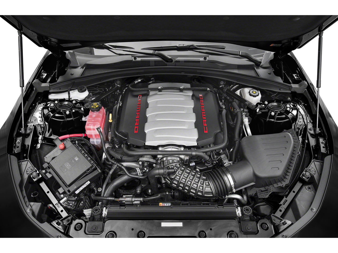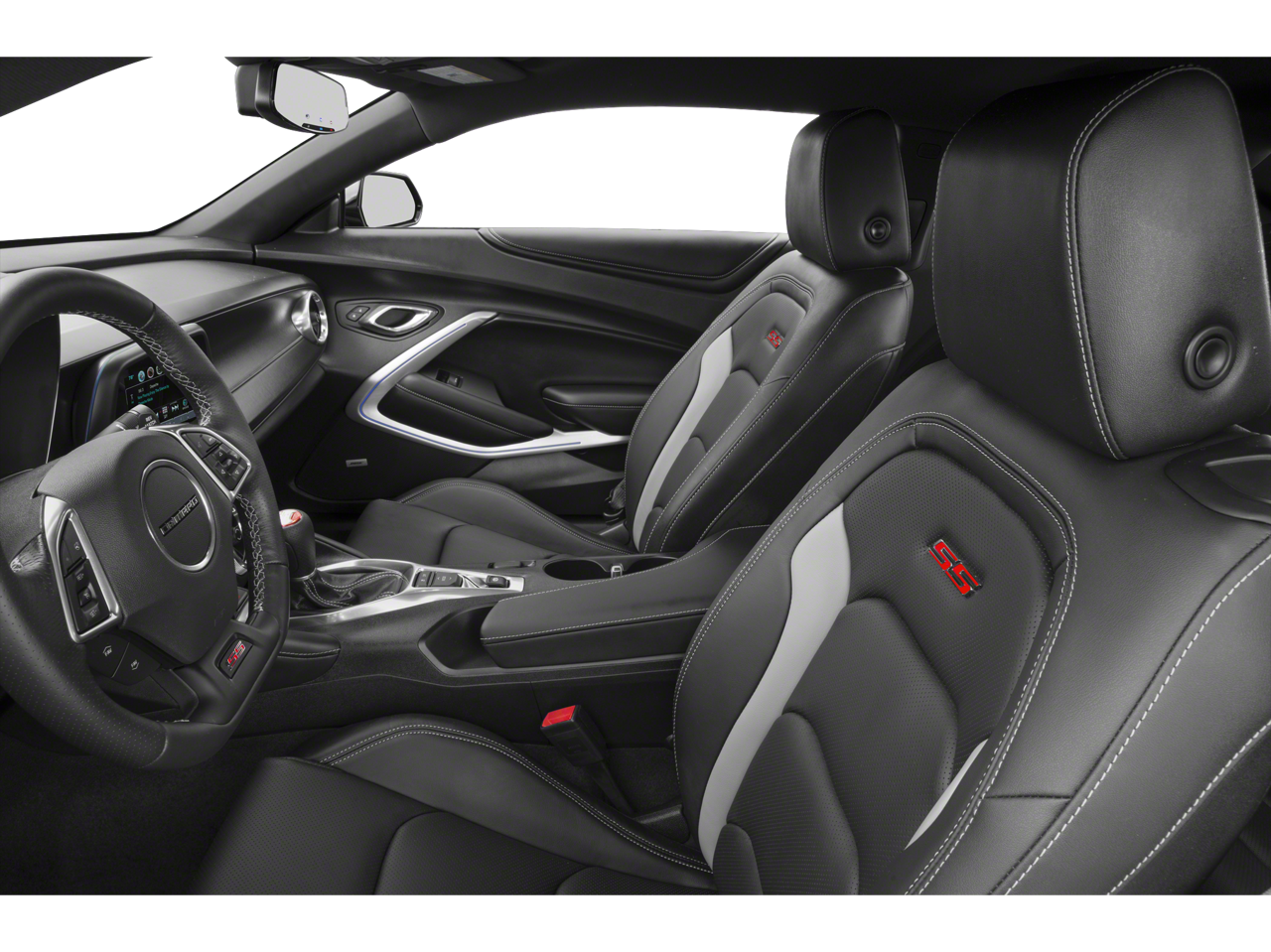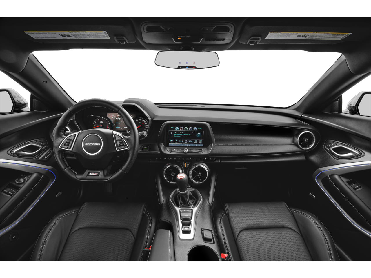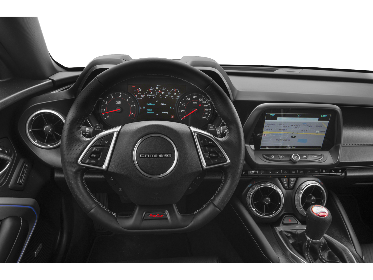 This 2018 Chevrolet Camaro is equipped with Preferred Equipment Group 2SS, 2 USB Ports & Auxiliary Input Jack, 2.77 Rear Axle Ratio, 4-Wheel Disc Brakes, 6-Way Power Front Passenger Seat Adjuster, 8-Way Power Driver Seat Adjuster, 9 Speakers, ABS brakes, Air Conditioning, Alloy wheels, AM/FM radio: SiriusXM, Apple CarPlay/Android Auto, Auto-dimming door mirrors, Auto-dimming Rear-View mirror, Automatic temperature control, Bose Premium 9-Speaker Audio System Feature, Brake assist, Bumpers: body-color, Compass, Delay-off headlights, Driver door bin, Driver vanity mirror, Dual front impact airbags, Dual front side impact airbags, Dual Mode Performance Exhaust, Electronic Stability Control, Emergency communication system: OnStar Guidance, Exterior Parking Camera Rear, Four wheel independent suspension, Front anti-roll bar, Front Bucket Seats, Front Center Armrest, Front dual zone A/C, Front fog lights, Front License Plate Bracket, Front reading lights, Front Sport Bucket Seats, Fully automatic headlights, Garage door transmitter, Heads-Up Display, Heated door mirrors, Heated Driver & Front Passenger Seats, Heated front seats, Heated steering wheel, High-Intensity Discharge Headlights, Illuminated entry, Knee airbag, Leather Shift Knob, Leather-Trimmed Seat Trim, Low tire pressure warning, Memory seat, Occupant sensing airbag, Outside temperature display, Overhead airbag, Paddle-Shift Manual Controls, Panic alarm, Passenger door bin, Passenger vanity mirror, Power door mirrors, Power driver seat, Power passenger seat, Power steering, Power Sunroof, Power windows, Premium audio system: Chevrolet MyLink, Radio data system, Radio: Chevrolet MyLink Audio System, Radio: Chevrolet MyLink w/Navigation, Rear anti-roll bar, Rear window defroster, Remote keyless entry, Remote Vehicle Starter System, Security system, SiriusXM Satellite Radio, Speed control, Speed-sensing steering, Spoiler, Steering wheel mounted audio controls, Tachometer, Telescoping steering wheel, Tilt steering wheel, Traction control, Trip computer, Variably intermittent wipers, Ventilated Driver & Front Passenger Seats, Ventilated front seats, Voltmeter, Wheels: 20 x 8.5 Fr & 20 x 9.5 Rr 5-Spoke, and Wheels: 20 x 8.5 Fr & 20 x 9.5 Rr 5-Spoke Alum.