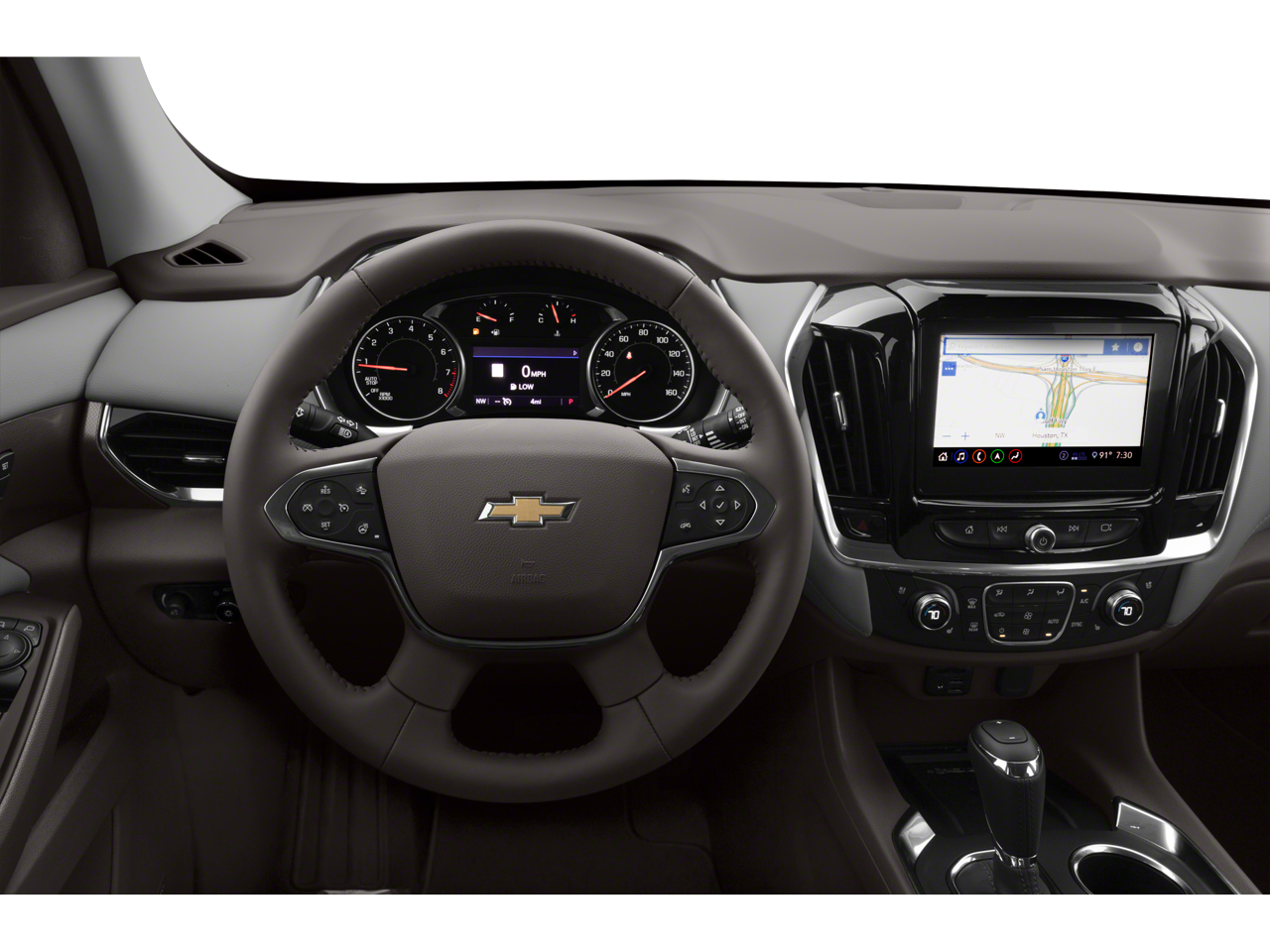 This 2019 Chevrolet Traverse is equipped with Driver Confidence II Package (Following Distance Indicator, Forward Collision Alert, Front Pedestrian Braking, IntelliBeam Auto High Beam Control Headlamps, Lane Keep Assist w/Lane Departure Warning, and Low Speed Forward Automatic Braking), Front License Plate Bracket Mounting Package, Preferred Equipment Group 1LZ, Trailering Equipment (Heavy-Duty Cooling System), Navigation System, 10 Speakers, 3.49 Axle Ratio, 3rd row seats: split-bench, 4-Wheel Disc Brakes, 7-Passenger Seating (2-2-3 Seating Configuration), ABS brakes, Air Conditioning, Alloy wheels, AM/FM radio: SiriusXM, Apple CarPlay/Android Auto, Auto-dimming door mirrors, Auto-dimming Rear-View mirror, Automatic temperature control, Bose Premium 10-Speaker Audio System Feature, Brake assist, Bumpers: body-color, Compass, Delay-off headlights, Driver door bin, Driver vanity mirror, Dual front impact airbags, Dual front side impact airbags, Dual SkyScape 2-Panel Power Sunroof, Electronic Stability Control, Emergency communication system, Four wheel independent suspension, Front anti-roll bar, Front Bucket Seats, Front Center Armrest, Front dual zone A/C, Front fog lights, Front reading lights, Fully automatic headlights, Garage door transmitter, Heated door mirrors, Heated front seats, Heated rear seats, Heated steering wheel, Illuminated entry, Low tire pressure warning, Memory seat, Occupant sensing airbag, Outside temperature display, Overhead airbag, Overhead console, Panic alarm, Passenger door bin, Passenger vanity mirror, Perforated Leather-Appointed Seat Trim, Power door mirrors, Power driver seat, Power Liftgate, Power passenger seat, Power steering, Power windows, Premium audio system: Chevrolet MyLink, Radio data system, Radio: Chevrolet Infotainment AM/FM Stereo w/Navigation, Rear air conditioning, Rear anti-roll bar, Rear reading lights, Rear window defroster, Rear window wiper, Remote keyless entry, Roof rack: rails only, Security system, SiriusXM Radio, Speed control, Speed-sensing steering, Spoiler, Steering wheel memory, Steering wheel mounted audio controls, Tachometer, Telescoping steering wheel, Tilt steering wheel, Traction control, Trip computer, Turn signal indicator mirrors, Variably intermittent wipers, Ventilated front seats, Voltmeter, and Wheels: 20 Argent Metallic Machine Faced Aluminum. Recent Arrival! 18/27 City/Highway MPG