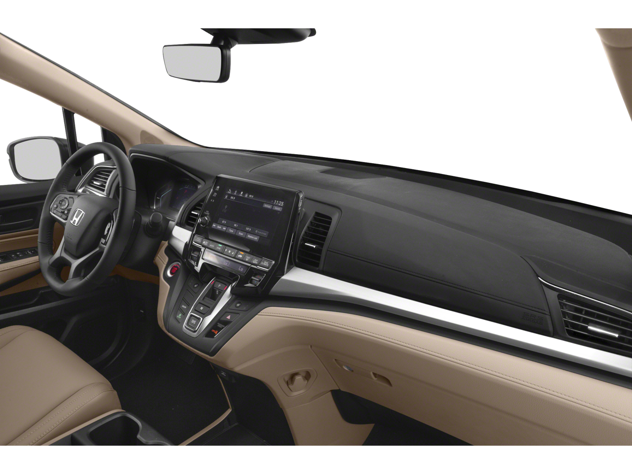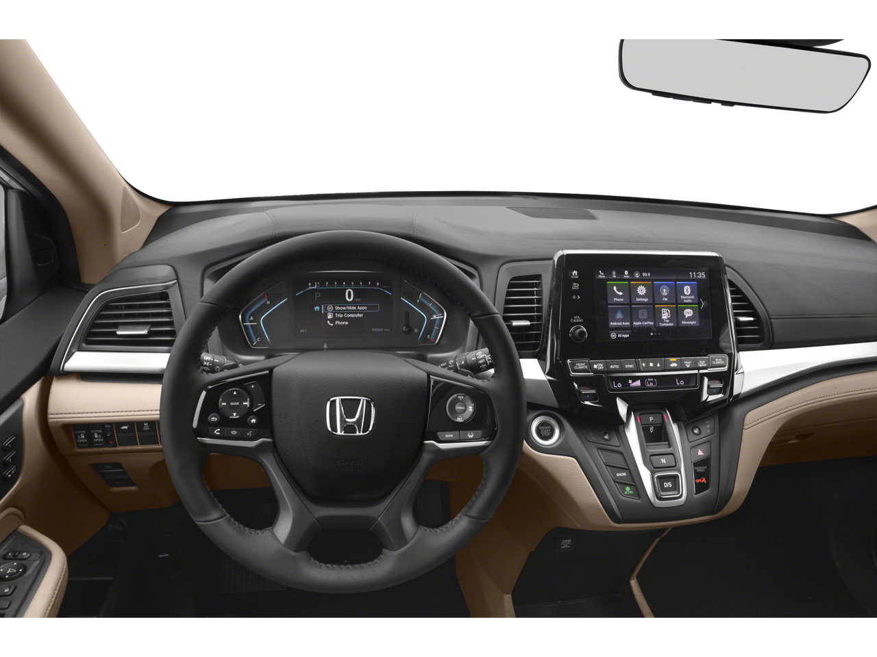 This 2019 Honda Odyssey is equipped with 3rd row seats: split-bench, 4-Wheel Disc Brakes, 4.33 Axle Ratio, 7 Speakers, A/V remote: CabinControl, ABS brakes, Air Conditioning, Alloy wheels, AM/FM radio: SiriusXM, Anti-whiplash front head restraints, Apple CarPlay/Android Auto, Auto High-beam Headlights, Auto-dimming Rear-View mirror, Automatic temperature control, Blind Spot Information (BSI) System warning, Brake assist, Bumpers: body-color, Delay-off headlights, Driver door bin, Driver vanity mirror, Driver's Seat Mounted Armrest, Dual front impact airbags, Dual front side impact airbags, Electronic Stability Control, Emergency communication system: HondaLink, Exterior Parking Camera Rear, Forward collision: Collision Mitigation Braking System (CMBS) + FCW mitigation, Four wheel independent suspension, Front anti-roll bar, Front Bucket Seats, Front dual zone A/C, Front fog lights, Front reading lights, Fully automatic headlights, Garage door transmitter: HomeLink, Heated door mirrors, Heated Front Bucket Seats, Heated front seats, Illuminated entry, Knee airbag, Lane departure: Lane Keeping Assist System (LKAS) active, Leather Seat Trim, Leather steering wheel, Low tire pressure warning, Memory seat, Occupant sensing airbag, Outside temperature display, Overhead airbag, Overhead console, Panic alarm, Passenger door bin, Passenger seat mounted armrest, Passenger vanity mirror, Power door mirrors, Power driver seat, Power Liftgate, Power moonroof, Power passenger seat, Power steering, Power windows, Radio data system, Radio: 160-Watt AM/FM/HD/SiriusXM Audio System, Rear air conditioning, Rear anti-roll bar, Rear reading lights, Rear seat center armrest, Rear window defroster, Rear window wiper, Reclining 3rd row seat, Remote keyless entry, Security system, Speed control, Speed-sensing steering, Speed-Sensitive Wipers, Split folding rear seat, Spoiler, Steering wheel mounted audio controls, Tachometer, Telescoping steering wheel, Tilt steering wheel, Traction control, Trip computer, Turn signal indicator mirrors, Variably intermittent wipers, and Wheels: 18 Dark Silver-Painted Alloy.