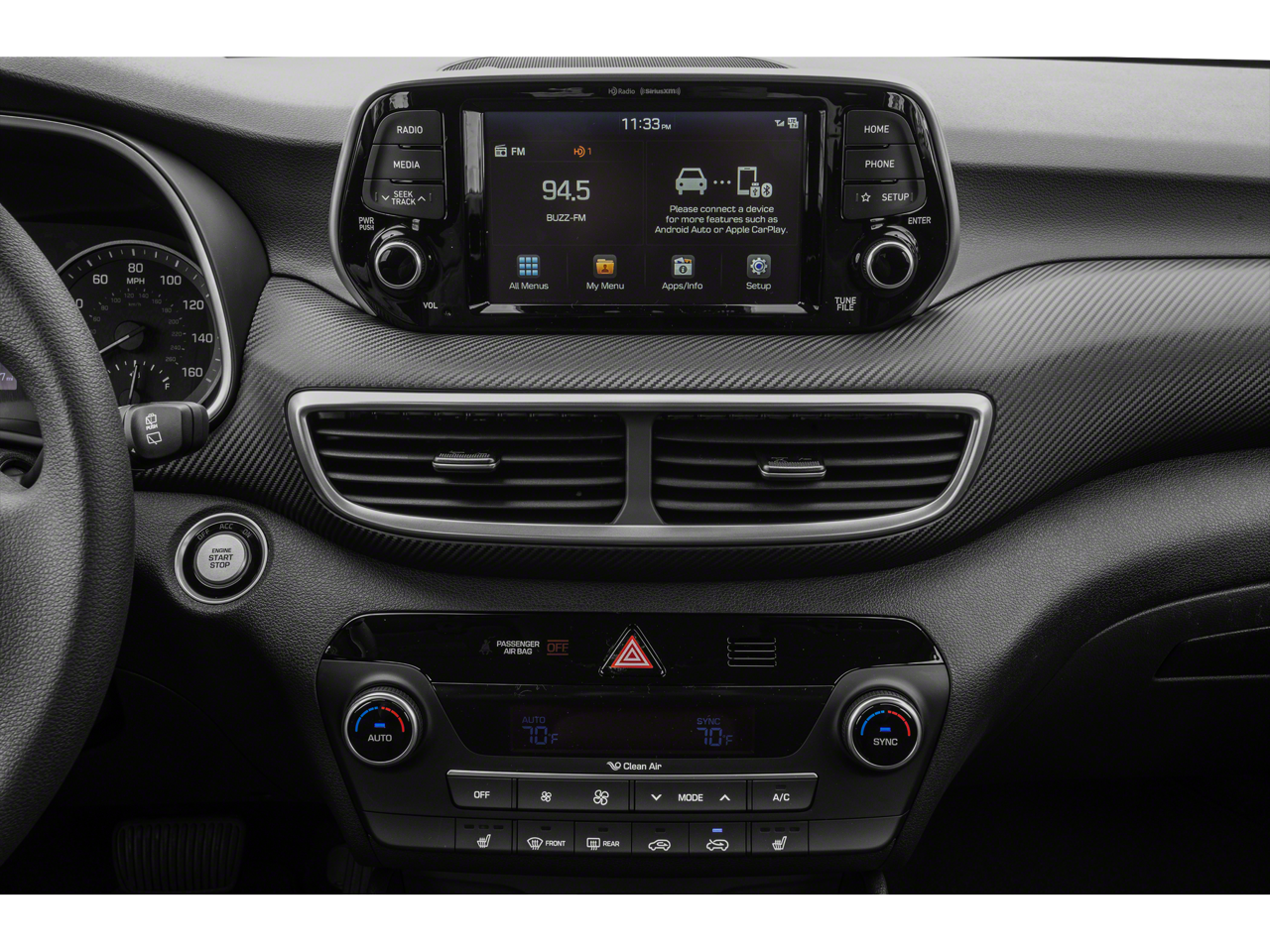 This 2019 Hyundai Tucson is equipped with Option Group 01, 18 x 7.0J Alloy Wheels, 4-Wheel Disc Brakes, 6 Speakers, ABS brakes, Air Conditioning, Alloy wheels, AM/FM radio: SiriusXM, Apple CarPlay & Android Auto, Automatic temperature control, Axle Ratio: 3.064, Brake assist, Bumpers: body-color, Carpeted Floor Mats, Delay-off headlights, Driver door bin, Driver vanity mirror, Dual front impact airbags, Dual front side impact airbags, Electronic Stability Control, Emergency communication system: Blue Link, Exterior Parking Camera Rear, Four wheel independent suspension, Front anti-roll bar, Front Bucket Seats, Front Center Armrest, Front dual zone A/C, Front reading lights, Fully automatic headlights, Heated door mirrors, Heated Front Bucket Seats, Heated front seats, Illuminated entry, Low tire pressure warning, Occupant sensing airbag, Outside temperature display, Overhead airbag, Overhead console, Panic alarm, Passenger door bin, Passenger vanity mirror, Power door mirrors, Power driver seat, Power steering, Power windows, Radio: AM/FM/SiriusXM Audio System, Rear anti-roll bar, Rear seat center armrest, Rear window defroster, Rear window wiper, Remote keyless entry, Reversible Cargo Tray, Roof rack: rails only, Security system, Speed control, Speed-sensing steering, Split folding rear seat, Spoiler, Steering wheel mounted audio controls, Tachometer, Telescoping steering wheel, Tilt steering wheel, Traction control, Trip computer, Variably intermittent wipers, and YES Essentials Cloth Seat Trim.