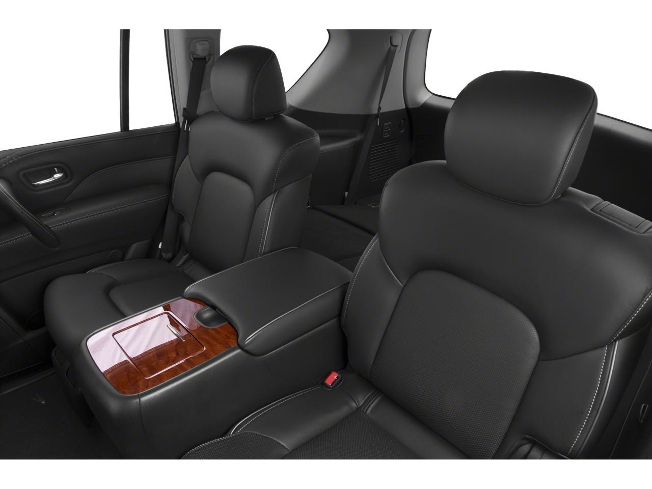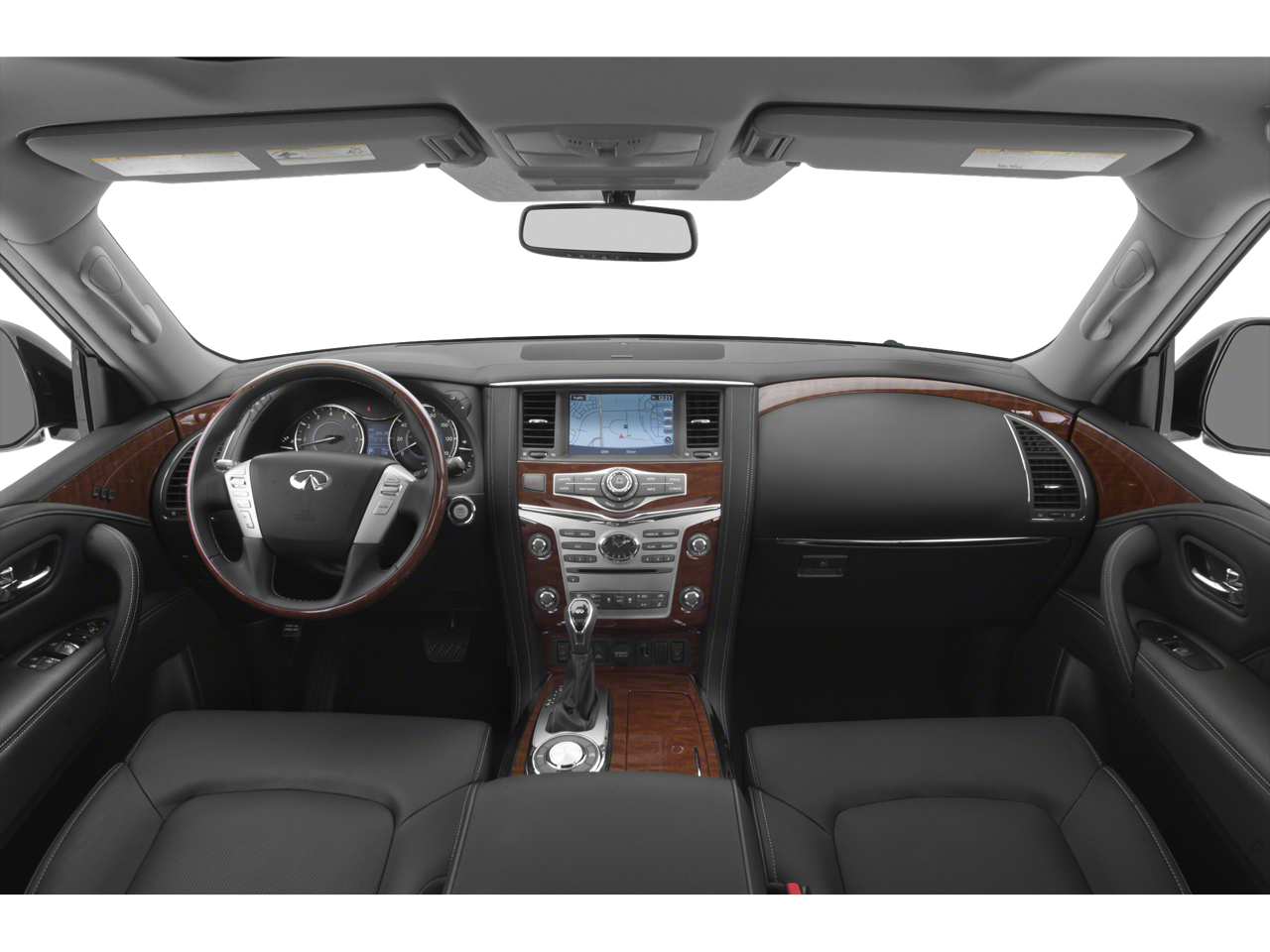 This 2019 INFINITI QX80 is equipped with All-Season Package (All-Season Floor Mats and Cargo Area Mat), Cargo Package (First-Aid Kit, High-Density Non-Slip Rear Cargo Carpet, and Nylon-Cord Cargo Net), Navigation system: INFINITI InTouch Navigation, 13 Speakers, 2.94 Axle Ratio, 3rd row seats: split-bench, 4-Wheel Disc Brakes, ABS brakes, Air Conditioning, Alloy wheels, AM/FM radio: SiriusXM, Anti-whiplash front head restraints, Auto High-beam Headlights, Auto tilt-away steering wheel, Auto-dimming door mirrors, Auto-dimming Rear-View mirror, Auto-leveling suspension, Automatic temperature control, Brake assist, Bumpers: body-color, CD player, Delay-off headlights, Driver door bin, Driver vanity mirror, Dual front impact airbags, Dual front side impact airbags, DVD-Audio, Electronic Stability Control, Emergency communication system: INFINITI Connection, Four wheel independent suspension, Front anti-roll bar, Front Bucket Seats, Front Center Armrest, Front dual zone A/C, Front fog lights, Front reading lights, Fully automatic headlights, Garage door transmitter: HomeLink, Genuine wood console insert, Genuine wood dashboard insert, Genuine wood door panel insert, Heated door mirrors, Heated Front Bucket Seats, Heated front seats, Heated steering wheel, Illuminated entry, INFINITI Radiant Welcome Lighting, Leather Shift Knob, Leather steering wheel, Leather-Appointed Seats w/Stratford Burl Trim, Literature Kit, Low tire pressure warning, Memory seat, Occupant sensing airbag, Outside temperature display, Overhead airbag, Overhead console, Panic alarm, Passenger door bin, Passenger vanity mirror, Power door mirrors, Power driver seat, Power Liftgate, Power moonroof, Power passenger seat, Power steering, Power windows, Radio data system, Radio: AM/FM/HD w/Single In-Dash CD/DVD Player & MP3, Rain sensing wipers, Rear air conditioning, Rear anti-roll bar, Rear audio controls, Rear reading lights, Rear seat center armrest, Rear window defroster, Rear window wiper, Reclining 3rd row seat, Remote keyless entry, Roof rack: rails only, Roof Rail Cross Bars, Security system, Speed control, Speed-sensing steering, Split folding rear seat, Spoiler, Steering wheel memory, Steering wheel mounted audio controls, Tachometer, Telescoping steering wheel, Tilt steering wheel, Traction control, Trip computer, Turn signal indicator mirrors, Variably intermittent wipers, Voltmeter, and Wheels: 20 x 8.0 Aluminum-Alloy.