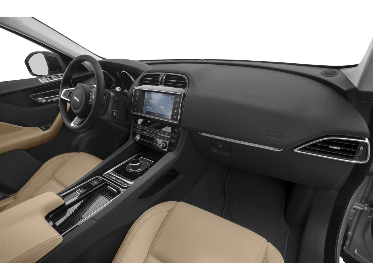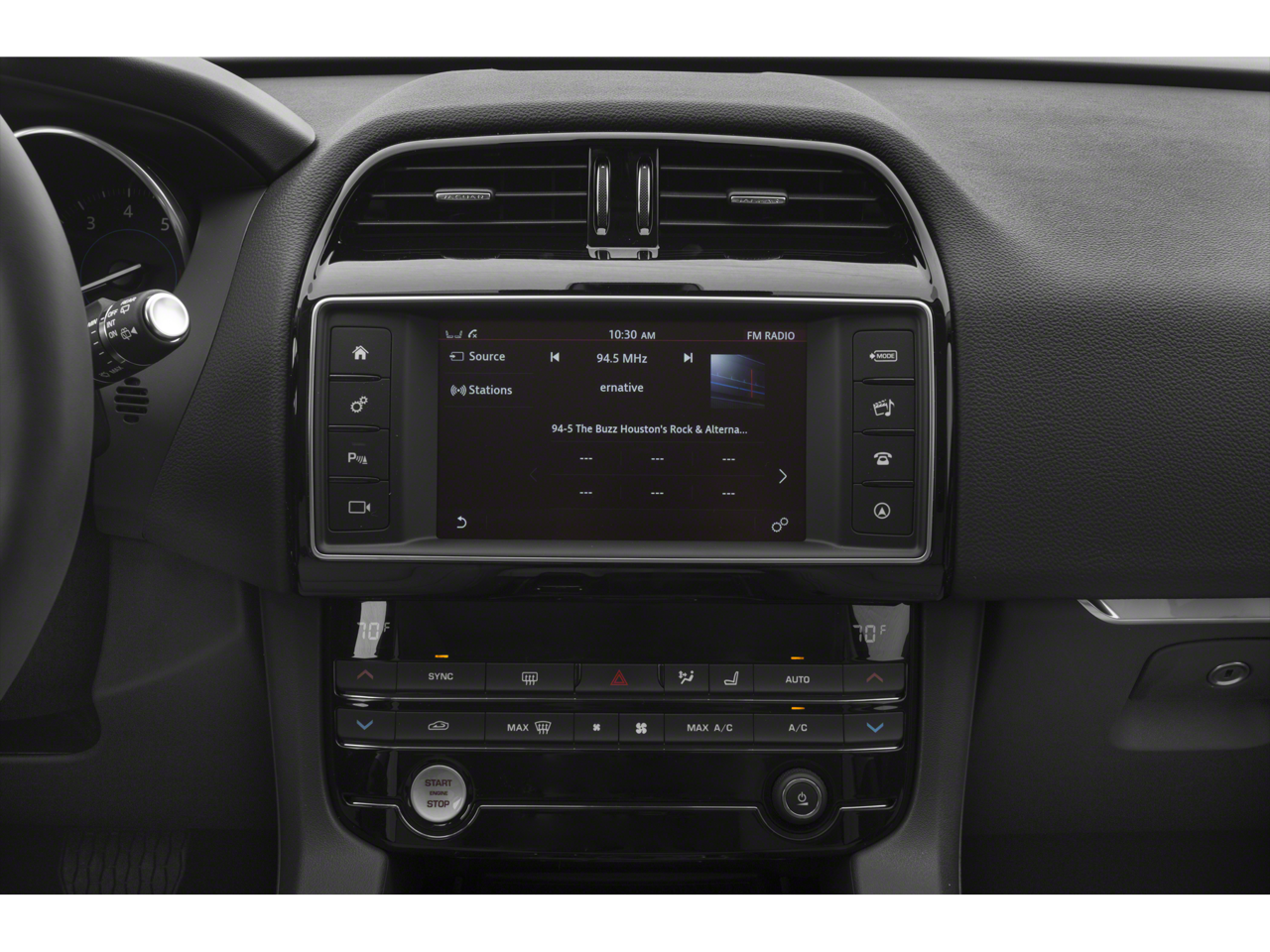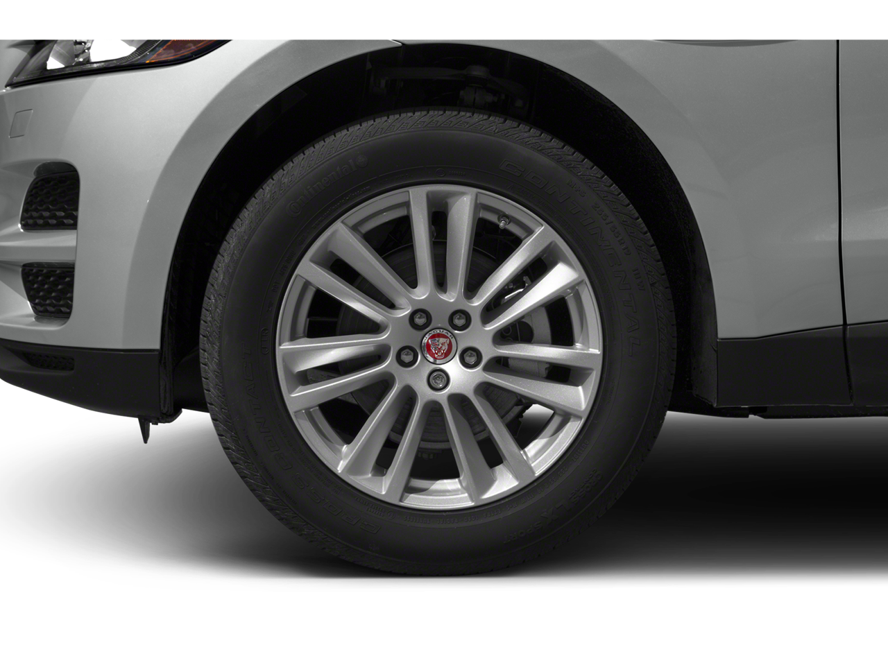This 2019 Jaguar F-PACE is equipped with 11 Speakers, 3.23 Axle Ratio, 4-Wheel Disc Brakes, ABS brakes, Air Conditioning, Alloy wheels, AM/FM radio, Auto-dimming door mirrors, Auto-dimming Rear-View mirror, Automatic temperature control, Brake assist, Bumpers: body-color, Compass, Delay-off headlights, Driver door bin, Driver vanity mirror, Dual front impact airbags, Dual front side impact airbags, Electronic Stability Control, Emergency communication system: InControl Protect, Exterior Parking Camera Rear, Four wheel independent suspension, Front anti-roll bar, Front Bucket Seats, Front Center Armrest, Front dual zone A/C, Front reading lights, Fully automatic headlights, Garage door transmitter: HomeLink, Heated door mirrors, Illuminated entry, Leather steering wheel, Low tire pressure warning, LuxTec Seat Trim, Memory seat, Occupant sensing airbag, Outside temperature display, Overhead airbag, Overhead console, Panic alarm, Passenger door bin, Passenger vanity mirror, Power door mirrors, Power driver seat, Power Liftgate, Power moonroof, Power passenger seat, Power steering, Power windows, Radio data system, Radio: Meridian 380W Sound System, Rain sensing wipers, Rear anti-roll bar, Rear fog lights, Rear reading lights, Rear window defroster, Rear window wiper, Remote keyless entry, Security system, Speed control, Speed-sensing steering, Split folding rear seat, Spoiler, Steering wheel mounted audio controls, Tachometer, Telescoping steering wheel, Tilt steering wheel, Traction control, Trip computer, Turn signal indicator mirrors, Variably intermittent wipers, and Wheels: 19 5 Spoke (Style 5037)