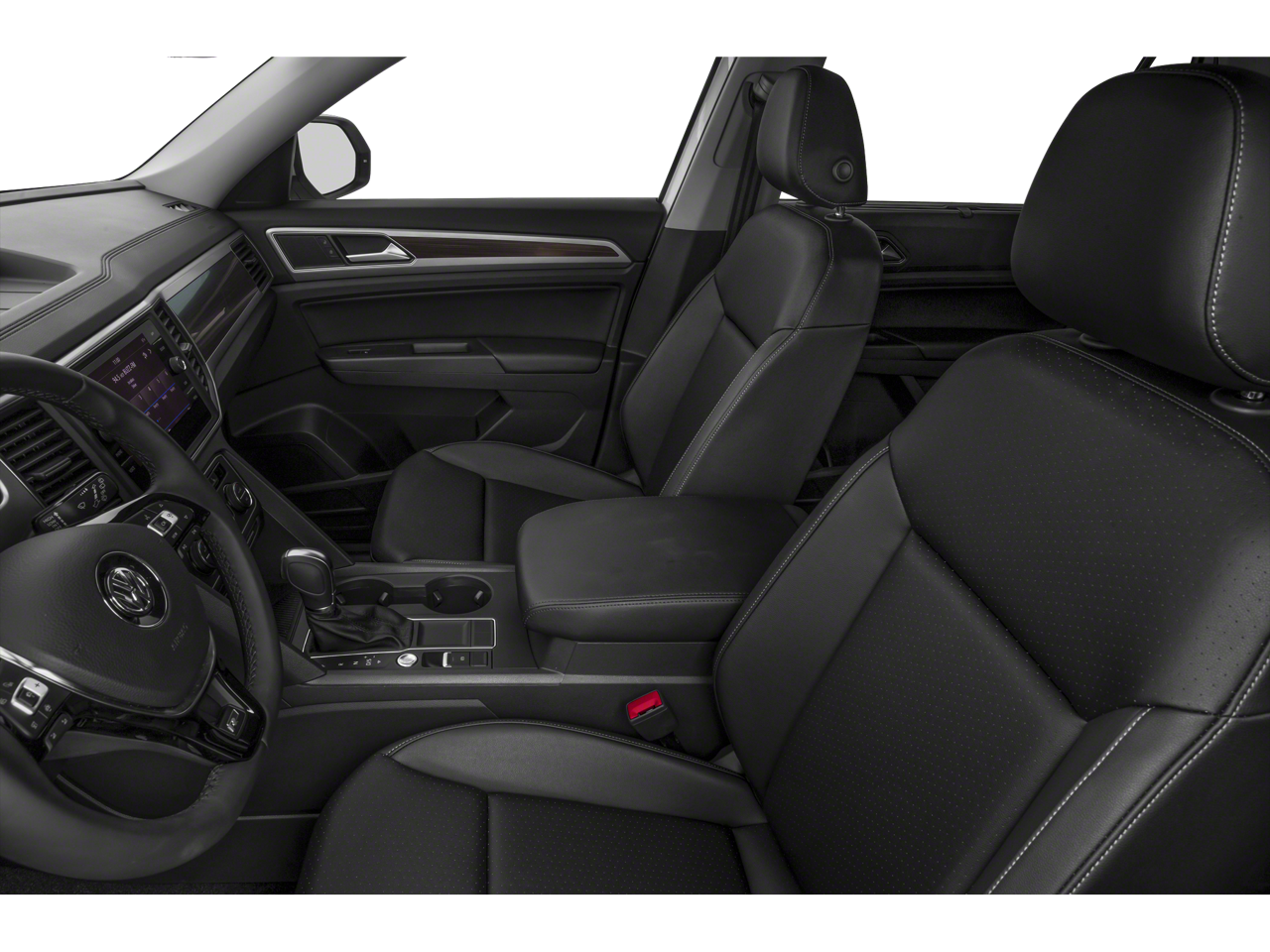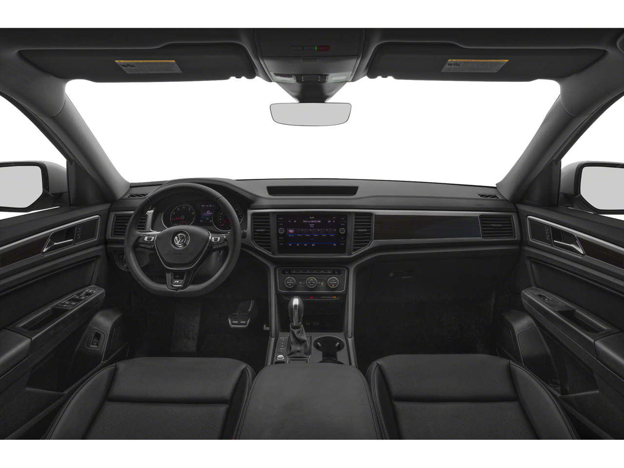This 2019 Volkswagen Atlas is equipped with 20 Twin 5-Spoke Alloy Wheels, 3.60 Axle Ratio, 3rd row seats: split-bench, 4-Wheel Disc Brakes, 8 Speakers, ABS brakes, Active Blind Spot Monitor, Air Conditioning, Alloy wheels, AM/FM radio: SiriusXM, Auto-dimming Rear-View mirror, Automatic temperature control, Brake assist, Bumpers: body-color, Compass, Delay-off headlights, Driver door bin, Driver vanity mirror, Dual front impact airbags, Dual front side impact airbags, Electronic Stability Control, Emergency communication system: VW Car-Net services (capabilities require enrollment or subscription), Exterior Parking Camera Rear, Forward collision: FCW w/Autonomous Emergency Braking mitigation, Four wheel independent suspension, Front anti-roll bar, Front Bucket Seats, Front Center Armrest, Front dual zone A/C, Front fog lights, Front reading lights, Heated Comfort Front Bucket Seats, Heated door mirrors, Heated front seats, Illuminated entry, Low tire pressure warning, Occupant sensing airbag, Outside temperature display, Overhead airbag, Overhead console, Panic alarm, Passenger door bin, Passenger vanity mirror, Power door mirrors, Power driver seat, Power Liftgate, Power steering, Power windows, Radio data system, Radio: Composition Media 8.0 Touchscreen, Rain sensing wipers, Rear air conditioning, Rear anti-roll bar, Rear reading lights, Rear seat center armrest, Rear window defroster, Rear window wiper, Remote CD player, Remote keyless entry, Roof rack: rails only, Security system, Speed control, Speed-sensing steering, Split folding rear seat, Spoiler, Standard Suspension, Steering wheel mounted audio controls, Tachometer, Telescoping steering wheel, Tilt steering wheel, Traction control, Trip computer, Turn signal indicator mirrors, V-Tex Leatherette Seating Surfaces, and Variably intermittent wipers.