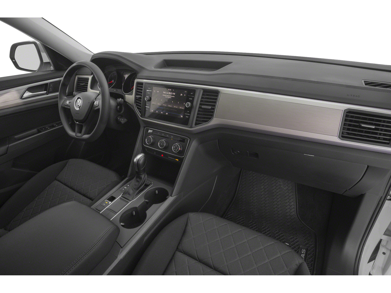 This 2019 Volkswagen Atlas is equipped with 20 Silver Triple 5-Spoke Wheels (Wheels: 20 Silver Triple 5-Spoke Alloy), Panoramic Sunroof Package (HomeLink Garage Door Opener and Panoramic Sunroof), Towing Package, 18 5-Spoke Wheels, 3.60 Axle Ratio, 3rd row seats: split-bench, 4-Wheel Disc Brakes, 8 Speakers, ABS brakes, Active Blind Spot Monitor, Air Conditioning, Alloy wheels, AM/FM radio: SiriusXM, Auto-dimming Rear-View mirror, Automatic temperature control, Brake assist, Bumpers: body-color, Compass, Delay-off headlights, Driver door bin, Driver vanity mirror, Dual front impact airbags, Dual front side impact airbags, Electronic Stability Control, Emergency communication system: VW Car-Net services (capabilities require enrollment or subscription), Exterior Parking Camera Rear, Forward collision: FCW w/Autonomous Emergency Braking mitigation, Four wheel independent suspension, Front anti-roll bar, Front Bucket Seats, Front Center Armrest, Front dual zone A/C, Front fog lights, Front reading lights, Heated Comfort Front Bucket Seats, Heated door mirrors, Heated front seats, Heavy Duty Trunk Liner w/VW CarGo Blocks, Illuminated entry, Low tire pressure warning, Occupant sensing airbag, Outside temperature display, Overhead airbag, Overhead console, Panic alarm, Passenger door bin, Passenger vanity mirror, Power door mirrors, Power driver seat, Power Liftgate, Power steering, Power windows, Privacy Cover, Radio data system, Radio: Composition Media 8.0 Touchscreen, Rain sensing wipers, Rear air conditioning, Rear anti-roll bar, Rear Bumper Applique in Chrome, Rear reading lights, Rear seat center armrest, Rear window defroster, Rear window wiper, Remote CD player, Remote keyless entry, Roof rack: rails only, Rubber Mats Kit - Bench Seats, Security system, Speed control, Speed-sensing steering, Split folding rear seat, Spoiler, Standard Suspension, Steering wheel mounted audio controls, Tachometer, Telescoping steering wheel, Tilt steering wheel, Traction control, Trip computer, Turn signal indicator mirrors, V-Tex Leatherette Seating Surfaces, and Variably intermittent wipers.