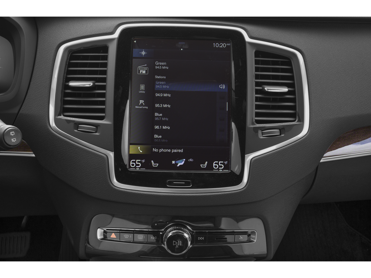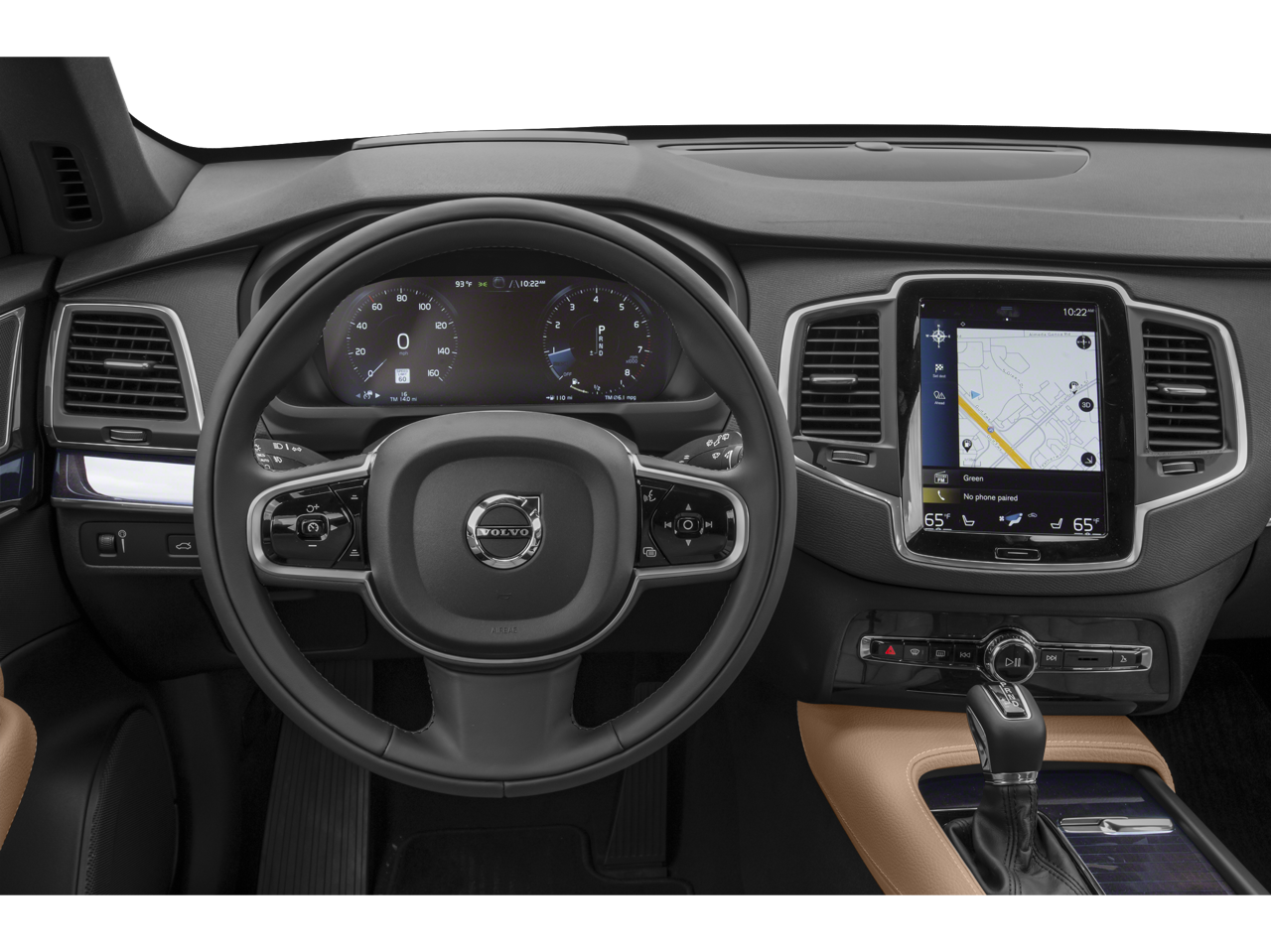 This 2019 Volvo XC90 is equipped with AWD, Charcoal Leather, Navigation System, 10 Speakers, 3rd row seats: bucket, 4-Wheel Disc Brakes, ABS brakes, Air Conditioning, Alloy wheels, AM/FM radio: SiriusXM, Anti-whiplash front head restraints, Apple CarPlay/Android Auto, Auto High-beam Headlights, Auto-dimming door mirrors, Auto-dimming Rear-View mirror, Automatic temperature control, Brake assist, Bumpers: body-color, Delay-off headlights, Driver door bin, Driver vanity mirror, Dual front impact airbags, Dual front side impact airbags, Electronic Stability Control, Emergency communication system: Volvo On-Call, Exterior Parking Camera Rear, Four wheel independent suspension, Front anti-roll bar, Front Bucket Seats, Front Center Armrest w/Storage, Front dual zone A/C, Front fog lights, Front reading lights, Fully automatic headlights, Garage door transmitter: HomeLink, Headlight cleaning, Heated door mirrors, Heated Front Bucket Seats, Heated front seats, Illuminated entry, Knee airbag, Leather Seating Surfaces w/Charcoal Interior, Leather Shift Knob, Low tire pressure warning, Memory seat, Occupant sensing airbag, Outside temperature display, Overhead airbag, Panic alarm, Passenger door bin, Passenger vanity mirror, Power door mirrors, Power driver seat, Power Liftgate, Power moonroof, Power passenger seat, Power steering, Power windows, Premium audio system: Sensus Connect, Radio data system, Radio: High Performance Audio System w/Sensus Nav, Rain sensing wipers, Rear air conditioning, Rear anti-roll bar, Rear dual zone A/C, Rear fog lights, Rear reading lights, Rear seat center armrest, Rear window defroster, Rear window wiper, Remote keyless entry, Roof rack: rails only, Security system, Speed control, Speed-sensing steering, Split folding rear seat, Spoiler, Steering wheel mounted audio controls, Tachometer, Telescoping steering wheel, Tilt steering wheel, Traction control, Trip computer, Turn signal indicator mirrors, Variably intermittent wipers, and Wheels: 19 10-Spoke Turbine in Silver Bright.