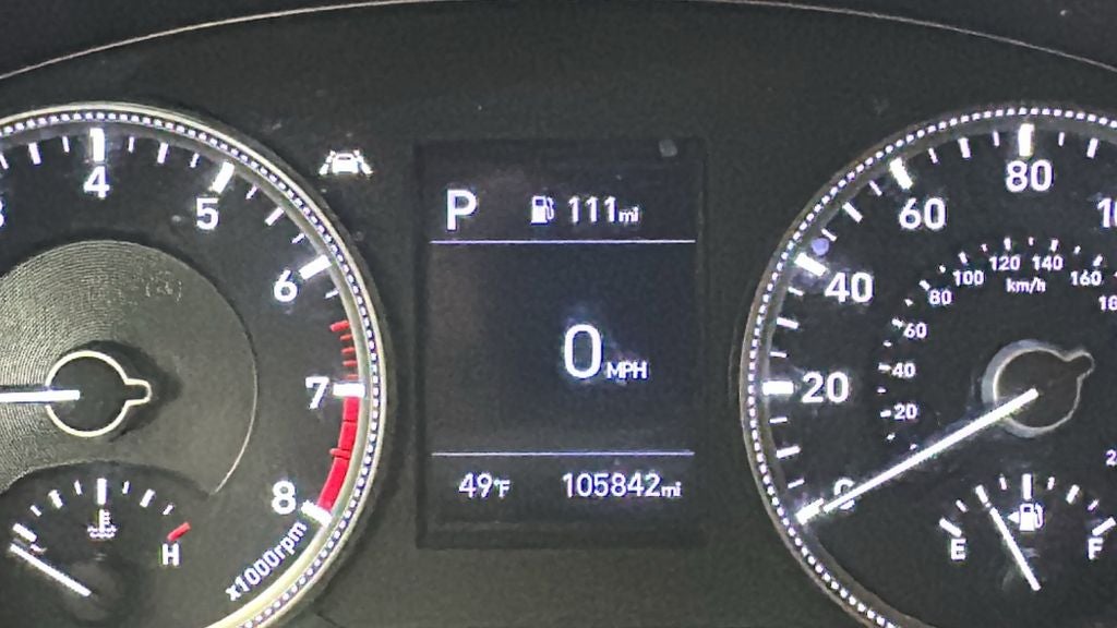 This 2020 Hyundai Santa Fe is equipped with Option Group 01, Black/Beige Cloth, 17 x 7.0J Alloy Wheels, 4-Wheel Disc Brakes, 6 Speakers, ABS brakes, Air Conditioning, Alloy wheels, AM/FM radio, Apple CarPlay & Android Auto, Auto High-beam Headlights, Axle Ratio 3.798, Brake assist, Bumpers: body-color, Cargo Cover, Cargo Net, Carpeted Floor Mats, Delay-off headlights, Driver door bin, Driver vanity mirror, Dual front impact airbags, Dual front side impact airbags, Electronic Stability Control, Exterior Parking Camera Rear, Four wheel independent suspension, Front anti-roll bar, Front Bucket Seats, Front Center Armrest, Front reading lights, Fully automatic headlights, Illuminated entry, Low tire pressure warning, Mudguards, Occupant sensing airbag, Outside temperature display, Overhead airbag, Overhead console, Panic alarm, Passenger door bin, Passenger vanity mirror, Power door mirrors, Power steering, Power windows, Radio: AM/FM/MP3 Display Audio, Rear anti-roll bar, Rear seat center armrest, Rear window defroster, Rear window wiper, Remote keyless entry, Security system, Speed control, Speed-sensing steering, Split folding rear seat, Spoiler, Stain-Resistant Cloth Seating Surfaces, Steering wheel mounted audio controls, Tachometer, Telescoping steering wheel, Tilt steering wheel, Traction control, Trip computer, and Variably intermittent wipers.