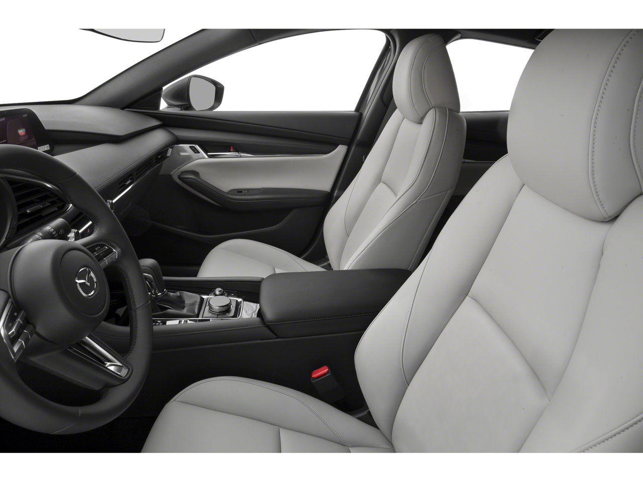 This 2021 Mazda Mazda3 is equipped with Preferred Package, 4-Wheel Disc Brakes, 8 Speakers, ABS brakes, Air Conditioning, Alloy wheels, AM/FM radio, AppLink/Apple CarPlay and Android Auto, Auto High-beam Headlights, Automatic temperature control, Brake assist, Bumpers: body-color, Compass, Delay-off headlights, Driver door bin, Driver vanity mirror, Dual front impact airbags, Dual front side impact airbags, Electronic Stability Control, Emergency communication system: MAZDA CONNECT, Exterior Parking Camera Rear, Front anti-roll bar, Front Bucket Seats, Front Center Armrest, Front dual zone A/C, Front reading lights, Front wheel independent suspension, Fully automatic headlights, Heated front seats, Heated Front Sport Seats, Illuminated entry, Knee airbag, Leatherette Seat Trim, Low tire pressure warning, Memory seat, Occupant sensing airbag, Outside temperature display, Overhead airbag, Overhead console, Panic alarm, Passenger door bin, Passenger vanity mirror, Power door mirrors, Power driver seat, Power moonroof, Power steering, Power windows, Radio data system, Radio: AM/FM Audio System, Rain sensing wipers, Rear seat center armrest, Rear window defroster, Rear window wiper, Remote keyless entry, Speed control, Speed-sensing steering, Split folding rear seat, Spoiler, Steering wheel mounted audio controls, Tachometer, Telescoping steering wheel, Tilt steering wheel, Traction control, Trip computer, Turn signal indicator mirrors, Variably intermittent wipers, and Wheels: 18 x 7J Gray Finish Alloy.