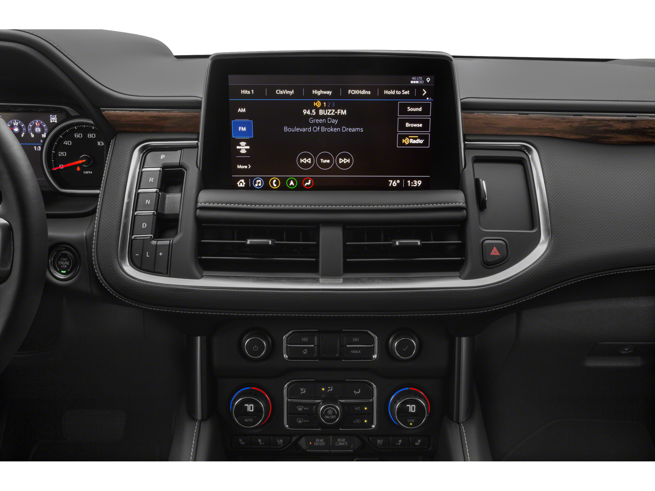 This 2021 Chevrolet Suburban is equipped with License Plate Front Mounting Package, Preferred Equipment Group 1LZ (12-Way Power Driver & Passenger Seat Adjusters, 1st & 2nd Row Color-Keyed Carpeted Floor Mats, 2 USB Data Ports, 3rd Row 60/40 Power-Folding Split-Bench, Auto-Dimming Inside Rear-View Mirror, Automatic Heated Steering Wheel, Bose 10-Speaker Surround w/CenterPoint, Bright Front & Rear Door Sill Plates, Chrome Door Handles w/Body-Color Strip, Chrome Mirror Caps, Color-Keyed Carpeting Floor Covering, Driver & Front Outboard Passenger Airbags, Dual Exhaust System, Enhanced Driver Information Center, Floor Console w/Storage Area, Front & Rear Park Assist, Hands-Free Rear Power Programmable Liftgate, HD Radio, Heated & Ventilated Driver & Front Passenger Seats, Heated 2nd Row Outboard Seats, Heated Driver & Front Passenger Seats, Infotainment Display, Lane Change Alert w/Side Blind Zone Alert, Lane Keep Assist w/Lane Departure Warning, Leather-Wrapped Steering Wheel, LED Daytime Running Lamps, Memory Settings, Outside Heated Power-Adjustable Mirrors, Power Release 2nd Row Bucket Seats, Power Tilt & Telescopic Steering Column, Rear Cross Traffic Alert, Remote Start, Safety Alert Seat, SiriusXM Radio w/360L, and Universal Home Remote), Navigation System, 10 Speakers, 20 x 9 Polished Aluminum Wheels, 3.23 Rear Axle Ratio, 3rd row seats: split-bench, 4-Wheel Disc Brakes, ABS brakes, Adaptive suspension, Air Conditioning, Alloy wheels, AM/FM radio: SiriusXM with 360L, Apple CarPlay/Android Auto, Auto High-beam Headlights, Auto-dimming door mirrors, Auto-dimming Rear-View mirror, Auto-leveling suspension, Automatic temperature control, Brake assist, Bumpers: body-color, Compass, Delay-off headlights, Driver door bin, Driver vanity mirror, Dual front impact airbags, Dual front side impact airbags, Electronic Stability Control, Emergency communication system: OnStar and Chevrolet connected services capable, Four wheel independent suspension, Front anti-roll bar, Front Bucket Seats, Front Center Armrest, Front dual zone A/C, Front reading lights, Fully automatic headlights, Garage door transmitter, Heated door mirrors, Heated front seats, Heated rear seats, Heated steering wheel, Illuminated entry, Leather steering wheel, Low tire pressure warning, Magnetic Ride Control Suspension, Memory seat, Occupant sensing airbag, Outside temperature display, Overhead airbag, Overhead console, Panic alarm, Passenger door bin, Passenger vanity mirror, Perforated Leather Seating Surfaces, Power door mirrors, Power driver seat, Power Liftgate, Power passenger seat, Power steering, Power windows, Premium audio system: Chevrolet Infotainment 3 Premium, Radio: Chevrolet Infotainment 3 Premium System, Rain sensing wipers, Rear air conditioning, Rear anti-roll bar, Rear reading lights, Rear window defroster, Rear window wiper, Remote keyless entry, Roof rack: rails only, Security system, Speed control, Speed-sensing steering, Split folding rear seat, Spoiler, Steering wheel memory, Steering wheel mounted audio controls, Tachometer, Telescoping steering wheel, Tilt steering wheel, Traction control, Trip computer, Turn signal indicator mirrors, Variably intermittent wipers, Ventilated front seats, Voltmeter, Wheel Locks (Set of 4) (LPO), and Wheels: 22 x 9 Polished Aluminum.