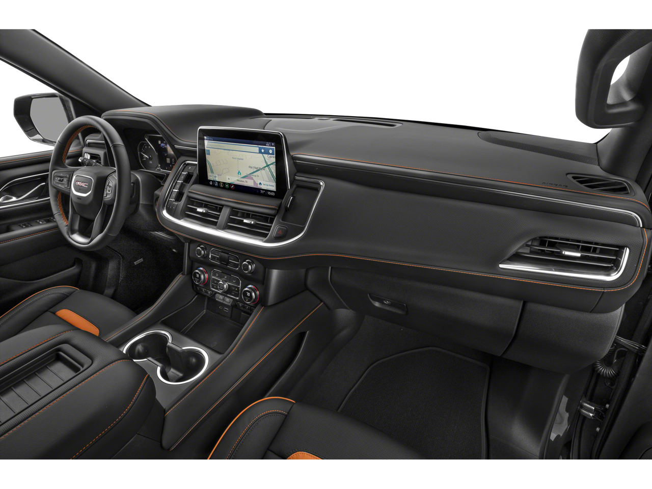 This 2021 GMC Yukon XL is equipped with AT4 Premium Plus Package (Dual-Pane Panoramic Power Sunroof and Power-Retractable Assist Steps), Max Trailering Package (Extra Capacity Cooling System), Preferred Equipment Group 4SB (12-Way Power Seat Adjusters, 2 Presets For Outside Rearview Mirrors, 3rd Row 60/40 Power-Folding Split-Bench Seat, Black Roof-Mounted Luggage Rack Side Rails, Bose 9-Speaker Stereo Audio System Feature, Bright Front & Rear Door Sill Plates, Front High-Approach Angle Fascia, Hands-Free Power Programmable Rear Liftgate, Heated & Ventilated Driver & Front Passenger Seats, Heated 2nd Row Outboard Position Seats, Heated Automatic Steering Wheel, Heated Driver & Front Passenger Seats, Heavy-Duty Air Filter, Hill Descent Control, Inside Rear-View Auto-Dimming Mirror, Outside Heated Power-Adjustable Mirrors, Power Release 2nd Row 60/40 Split-Folding Bench Seat, Power Tilt & Telescopic Steering Column, Red Horizontal-Mounted Recovery Hooks, Safety Alert Seat, and Universal Home Remote), Premium Capability Package w/Active Response 4WD (Air Ride Adaptive Suspension and Electronic Limited Slip Differential (eLSD)), Rear Media & Nav Package (HD Radio, Radio: AM/FM/SiriusXM w/Navigation, Rear Seat Media System, and SiriusXM w/360L), Technology Package (15 Diagonal Multi-Color Head-Up Display, HD Surround Vision, and Rear Pedestrian Alert), 4WD, 3.23 Rear Axle Ratio, 3rd row seats: split-bench, 4-Wheel Disc Brakes, 9 Speakers, ABS brakes, Adaptive suspension, Air Conditioning, Alloy wheels, AM/FM radio: SiriusXM with 360L, Apple CarPlay/Android Auto, Auto High-beam Headlights, Auto-dimming door mirrors, Auto-dimming Rear-View mirror, Auto-leveling suspension, Automatic Emergency Braking, Automatic temperature control, Brake assist, Bumpers: body-color, Compass, Delay-off headlights, Driver door bin, Driver vanity mirror, Dual front impact airbags, Dual front side impact airbags, Electronic Stability Control, Emergency communication system: OnStar and GMC connected services capable, Floor Console, Following Distance Indicator, Forward Collision Alert, Four wheel independent suspension, Front & Rear Park Assist, Front anti-roll bar, Front Bucket Seats, Front Center Armrest, Front dual zone A/C, Front fog lights, Front Pedestrian Braking, Front reading lights, Fully automatic headlights, Garage door transmitter, Heated door mirrors, Heated front seats, Heated rear seats, Heated steering wheel, Hitch Guidance w/Hitch Vie