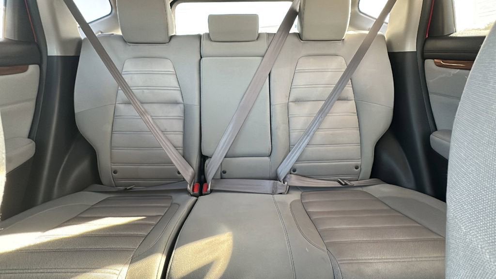 This 2021 Honda CR-V is equipped with 18 Alloy Wheels, 4-Wheel Disc Brakes, 5.64 Axle Ratio, 6 Speakers, ABS brakes, Adaptive Cruise Control: Adaptive Cruise Control (ACC) with Low-Speed Follow, Air Conditioning, Alloy wheels, AM/FM radio: SiriusXM, Apple CarPlay/Android Auto, Auto High-beam Headlights, Automatic temperature control, Blind Spot Information (BSI) System warning, Brake assist, Bumpers: body-color, Cloth Seat Trim, Compass, Delay-off headlights, Driver door bin, Driver vanity mirror, Dual front impact airbags, Dual front side impact airbags, Electronic Stability Control, Exterior Parking Camera Rear, Forward collision: Collision Mitigation Braking System (CMBS) + FCW mitigation, Four wheel independent suspension, Front anti-roll bar, Front Bucket Seats, Front Center Armrest, Front dual zone A/C, Front fog lights, Front reading lights, Heated door mirrors, Heated Front Bucket Seats, Heated front seats, Illuminated entry, Low tire pressure warning, Occupant sensing airbag, Outside temperature display, Overhead airbag, Overhead console, Panic alarm, Passenger door bin, Passenger vanity mirror, Power door mirrors, Power driver seat, Power moonroof, Power steering, Power windows, Radio data system, Radio: 180-Watt AM/FM/HD/SiriusXM Audio System, Rear anti-roll bar, Rear seat center armrest, Rear window defroster, Rear window wiper, Remote keyless entry, Security system, Speed control, Speed-sensing steering, Speed-Sensitive Wipers, Split folding rear seat, Spoiler, Steering wheel mounted audio controls, Tachometer, Telescoping steering wheel, Tilt steering wheel, Traction control, Trip computer, Turn signal indicator mirrors, and Variably intermittent wipers.