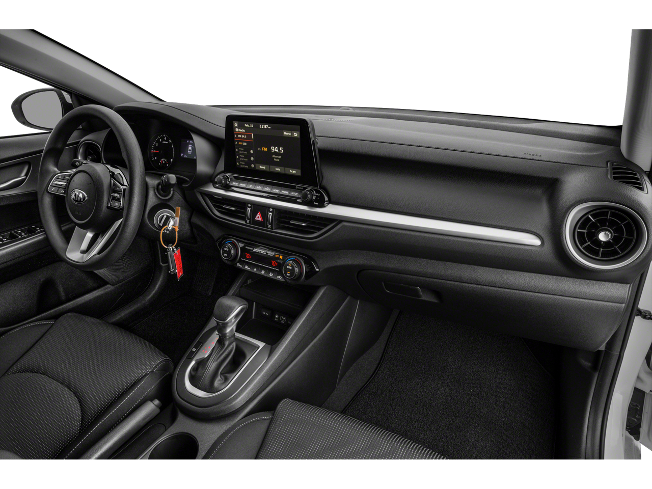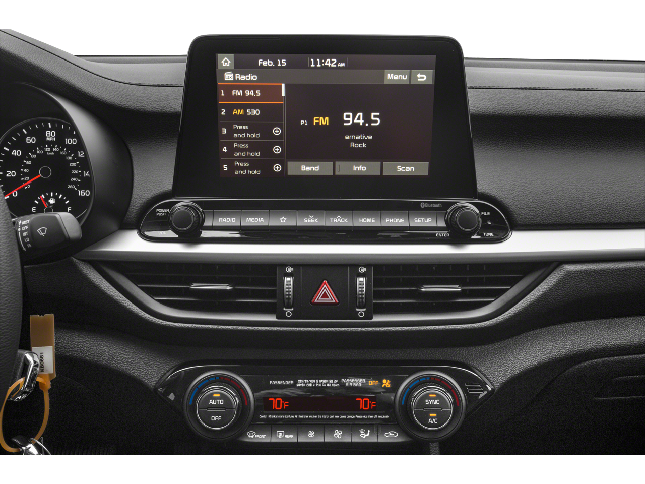 This 2021 Kia Forte is equipped with 4 Speakers, 4-Wheel Disc Brakes, ABS brakes, Air Conditioning, Alloy wheels, AM/FM radio, Apple CarPlay & Android Auto, Brake assist, Bumpers: body-color, Delay-off headlights, Driver door bin, Driver vanity mirror, Dual front impact airbags, Dual front side impact airbags, Electronic Stability Control, Exterior Parking Camera Rear, Front anti-roll bar, Front Bucket Seats, Front Center Armrest, Front reading lights, Front wheel independent suspension, Fully automatic headlights, Illuminated entry, Lane Departure Warning System, Low tire pressure warning, Occupant sensing airbag, Outside temperature display, Overhead airbag, Overhead console, Panic alarm, Passenger door bin, Passenger vanity mirror, Power door mirrors, Power steering, Power windows, Radio data system, Radio: AM/FM/MP3 Display Audio System, Rear reading lights, Rear window defroster, Remote keyless entry, Security system, Speed control, Split folding rear seat, Steering wheel mounted audio controls, Tachometer, Telescoping steering wheel, Tilt steering wheel, Traction control, Trip computer, Variably intermittent wipers, Wheels: 16 Machine Finish Alloy, and Woven Cloth Seat Trim.