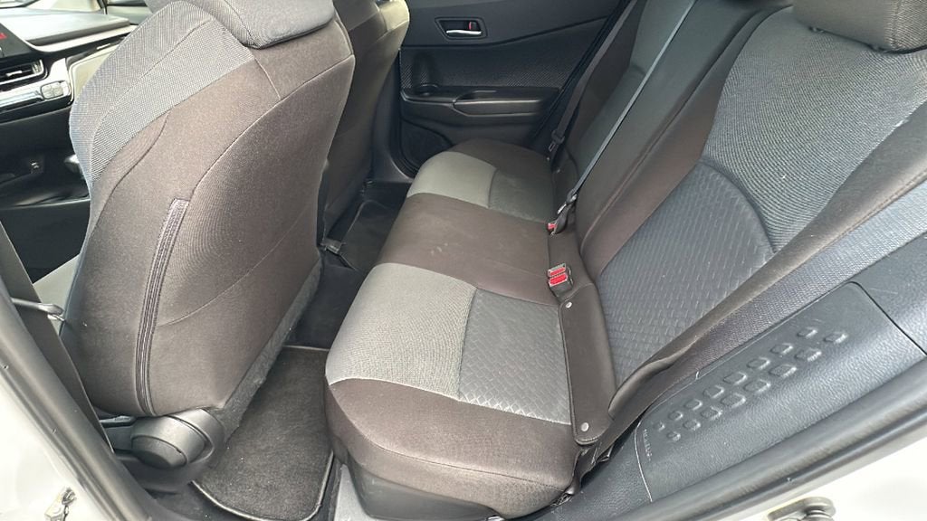 This 2021 Toyota C-HR is equipped with 4-Wheel Disc Brakes, 6 Speakers, ABS brakes, Air Conditioning, AM/FM radio: SiriusXM, Auto High-beam Headlights, Auto-dimming Rear-View mirror, Automatic temperature control, Axle Ratio: TBD, Brake assist, Bumpers: body-color, Delay-off headlights, Driver door bin, Driver vanity mirror, Dual front impact airbags, Dual front side impact airbags, Electronic Stability Control, Emergency communication system: Safety Connect with 1-year trial, Exterior Parking Camera Rear, Fabric Seat Material, Four wheel independent suspension, Front anti-roll bar, Front Bucket Seats, Front Center Armrest, Front dual zone A/C, Front reading lights, Fully automatic headlights, Heated door mirrors, Illuminated entry, Knee airbag, Leather Shift Knob, Low tire pressure warning, Occupant sensing airbag, Outside temperature display, Overhead airbag, Panic alarm, Passenger door bin, Passenger vanity mirror, Power door mirrors, Power steering, Power windows, Radio data system, Radio: AM/FM Stereo w/8 Touch-Screen Display, Rear anti-roll bar, Rear side impact airbag, Rear window defroster, Rear window wiper, Remote keyless entry, Speed control, Speed-sensing steering, Split folding rear seat, Spoiler, Steering wheel mounted audio controls, Tachometer, Telescoping steering wheel, Tilt steering wheel, Traction control, Trip computer, Turn signal indicator mirrors, Variably intermittent wipers, and Wheels: 6.5 x 17 Steel.