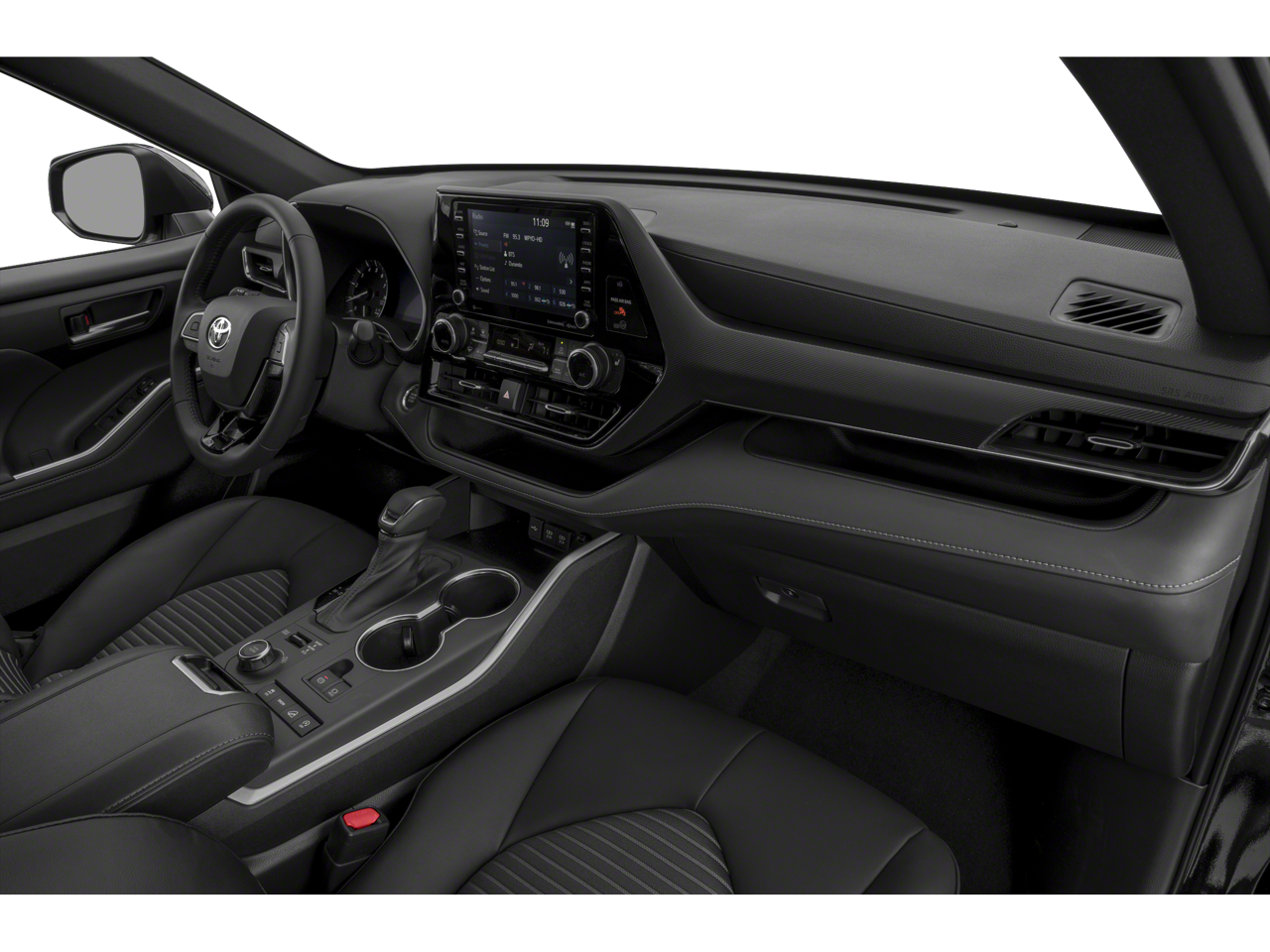 This 2021 Toyota Highlander is equipped with Red Leather Interior (Leather Seat Trim), AWD, 3.003 Axle Ratio, 3rd row seats: split-bench, 4-Wheel Disc Brakes, 6 Speakers, ABS brakes, Air Conditioning, Alloy wheels, AM/FM radio: SiriusXM, Apple CarPlay/Android Auto, Auto High-beam Headlights, Auto-dimming Rear-View mirror, Automatic temperature control, Bodyside moldings, Brake assist, Bumpers: body-color, Delay-off headlights, Driver door bin, Driver vanity mirror, Dual front impact airbags, Dual front side impact airbags, Electronic Stability Control, Emergency communication system: Safety Connect with 1-year trial, Exterior Parking Camera Rear, Four wheel independent suspension, Front anti-roll bar, Front Bucket Seats, Front Center Armrest, Front dual zone A/C, Front fog lights, Front reading lights, Fully automatic headlights, Garage door transmitter: HomeLink, Heated door mirrors, Heated Front Bucket Seats, Heated front seats, Illuminated entry, Knee airbag, Leather Shift Knob, Low tire pressure warning, Mixed Media Seat Trim, Occupant sensing airbag, Outside temperature display, Overhead airbag, Overhead console, Panic alarm, Passenger door bin, Passenger vanity mirror, Power door mirrors, Power driver seat, Power Liftgate, Power moonroof, Power passenger seat, Power steering, Power windows, Radio: Audio Plus, Rear air conditioning, Rear anti-roll bar, Rear reading lights, Rear window defroster, Rear window wiper, Reclining 3rd row seat, Remote keyless entry, Roof rack: rails only, Security system, Speed control, Speed-sensing steering, Split folding rear seat, Spoiler, Steering wheel mounted audio controls, Tachometer, Telescoping steering wheel, Tilt steering wheel, Traction control, Trip computer, Turn signal indicator mirrors, Variably intermittent wipers, and Wheels: 20 Machined Alloy.