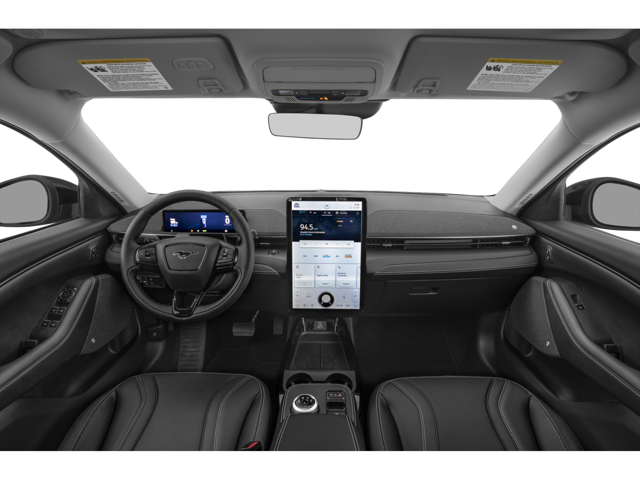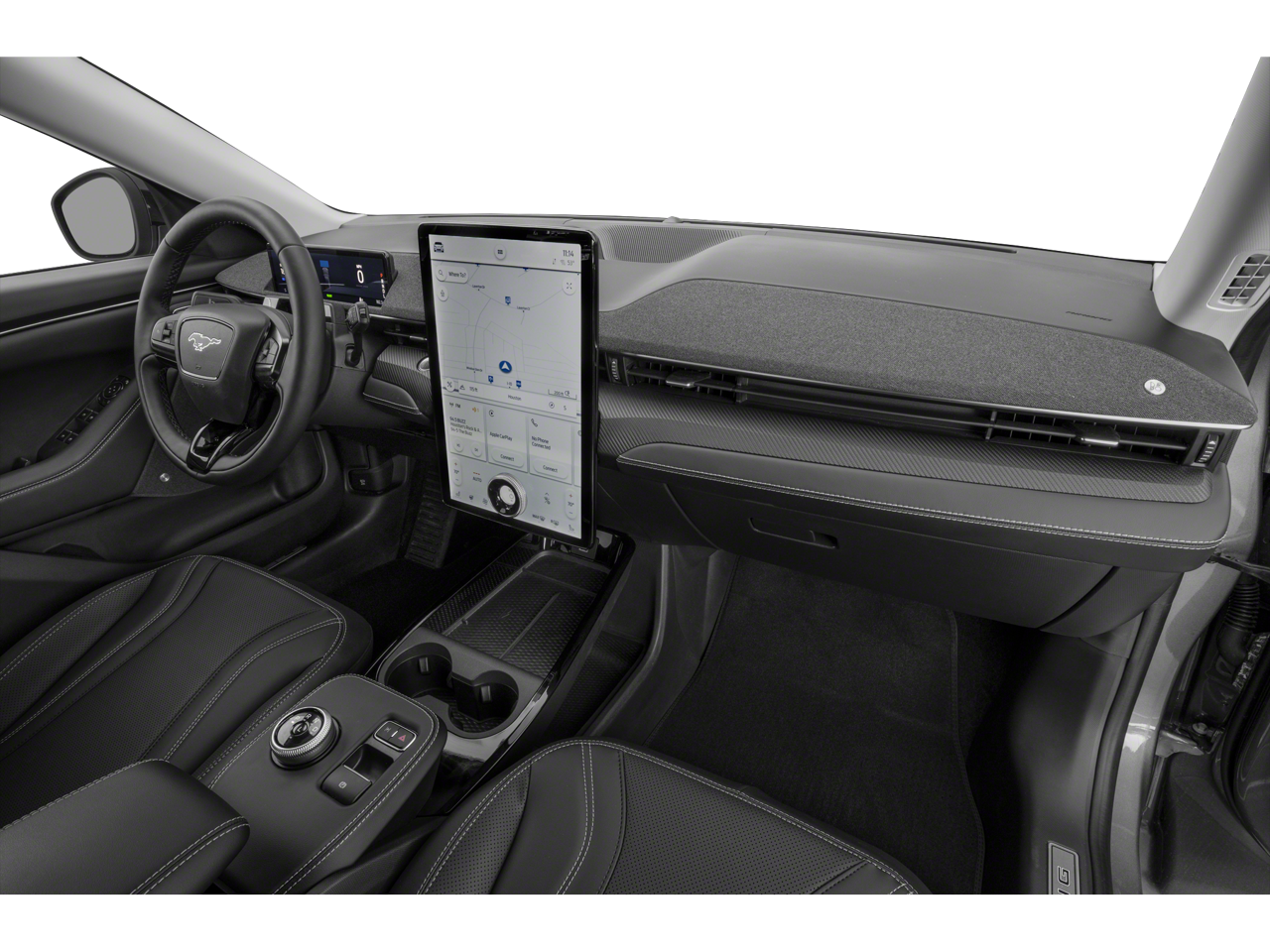 This 2022 Ford Mustang Mach-E is equipped with Equipment Group 300A, Interior Protection Package (Pre-Installed) (Cargo Area Protector and Front & Rear Floor Liners), Navigation system: Connected Navigation, 10 Speakers, 4-Wheel Disc Brakes, ABS brakes, Active Park Assist Prep Kit, Air Conditioning, Alloy wheels, AM/FM radio: SiriusXM with 360L, AM/FM Stereo, Apple CarPlay/Android Auto, Auto High-beam Headlights, Auto-dimming Rear-View mirror, Automatic temperature control, Axle Ratio: 9.05, Brake assist, Bumpers: body-color, Compass, Delay-off headlights, Driver door bin, Driver vanity mirror, Dual front impact airbags, Dual front side impact airbags, Electronic Stability Control, Emergency communication system: 911 Assist, Exterior Parking Camera Rear, Four wheel independent suspension, Front anti-roll bar, Front Bucket Seats, Front Center Armrest, Front dual zone A/C, Front reading lights, Fully automatic headlights, Garage door transmitter, Heated door mirrors, Heated front seats, Heated Perforated ActiveX Bucket Seats, Heated steering wheel, Illuminated entry, Knee airbag, Low tire pressure warning, Memory seat, Occupant sensing airbag, Outside temperature display, Overhead airbag, Overhead console, Panic alarm, Passenger door bin, Passenger vanity mirror, Power door mirrors, Power driver seat, Power Liftgate, Power passenger seat, Power steering, Power windows, Radio data system, Rain sensing wipers, Rear anti-roll bar, Rear seat center armrest, Rear side impact airbag, Rear window defroster, Rear window wiper, Remote keyless entry, Security system, SiriusXM Radio w/360L, Speed control, Speed-sensing steering, Speed-Sensitive Wipers, Split folding rear seat, Spoiler, Steering wheel mounted audio controls, SYNC 4A w/Enhanced Voice Recognition, Telescoping steering wheel, Tilt steering wheel, Traction control, Trip computer, Turn signal indicator mirrors, Variably intermittent wipers, and Wheels: 19 Machined-Face Aluminum.