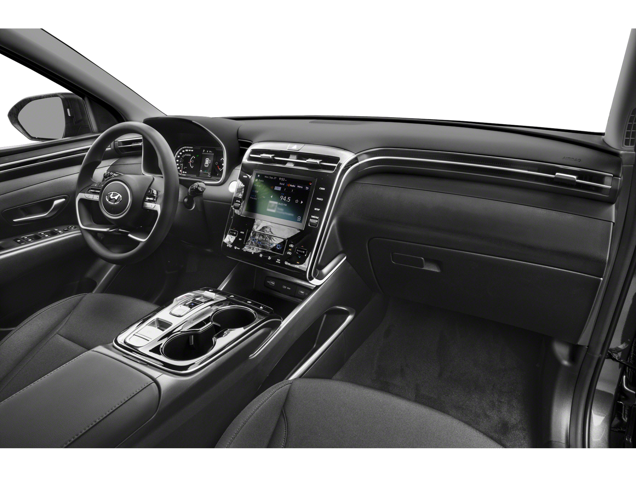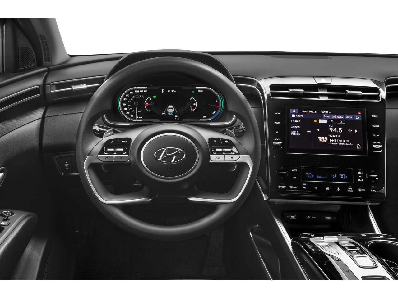 This 2022 Hyundai Tucson Hybrid is equipped with Option Group 01, I4, 3.32 Axle Ratio, 4-Wheel Disc Brakes, 6 Speakers, ABS brakes, Air Conditioning, Alloy wheels, AM/FM radio: SiriusXM, Apple CarPlay & Android Auto, Auto High-beam Headlights, Automatic temperature control, Brake assist, Bumpers: body-color, Cargo Net, Cargo Tray, Carpeted Floor Mats, Delay-off headlights, Driver door bin, Driver vanity mirror, Dual front impact airbags, Dual front side impact airbags, Electronic Stability Control, Emergency communication system: Blue Link Connected Car Service (3-year complimentary subscription), Four wheel independent suspension, Front and Rear Mudguards, Front anti-roll bar, Front Bucket Seats, Front Center Armrest, Front dual zone A/C, Front reading lights, Fully automatic headlights, Heated door mirrors, Heated Front Bucket Seats, Heated front seats, Illuminated entry, Low tire pressure warning, Occupant sensing airbag, Outside temperature display, Overhead airbag, Overhead console, Panic alarm, Passenger door bin, Passenger vanity mirror, Power door mirrors, Power driver seat, Power steering, Power windows, Radio data system, Radio: AM/FM/HD/SiriusXM Audio System, Rear anti-roll bar, Rear seat center armrest, Rear window defroster, Rear window wiper, Remote keyless entry, Security system, Speed control, Split folding rear seat, Spoiler, Stain & Odor Resistant Cloth Seat Trim, Steering wheel mounted audio controls, Tachometer, Telescoping steering wheel, Tilt steering wheel, Traction control, Trip computer, Turn signal indicator mirrors, Variably intermittent wipers, and Wheels: 17 x 7.0J Alloy.