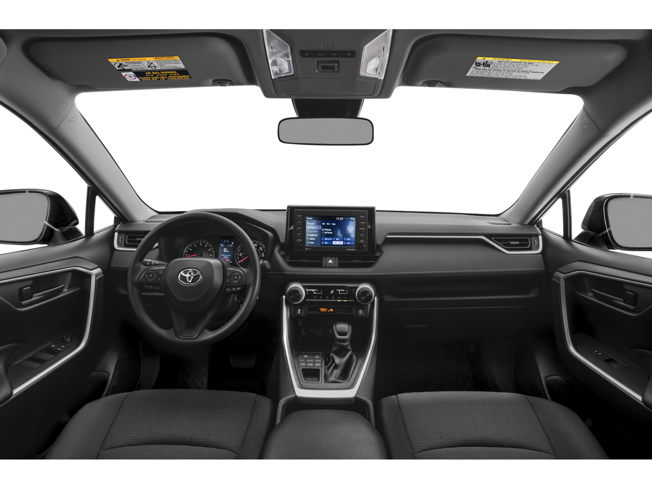 This 2022 Toyota RAV4 is equipped with AWD, Black Cloth, 17 Steel Wheels, 4-Wheel Disc Brakes, 6 Speakers, ABS brakes, Air Conditioning, AM/FM radio: SiriusXM, AM/FM Stereo, Apple CarPlay/Android Auto, Auto High-beam Headlights, Axle Ratio: 3.177, Brake assist, Bumpers: body-color, Driver door bin, Driver vanity mirror, Dual front impact airbags, Dual front side impact airbags, Electronic Stability Control, Emergency communication system: Safety Connect with 1-year trial, Exterior Parking Camera Rear, Fabric Seat Trim, Four wheel independent suspension, Front anti-roll bar, Front Bucket Seats, Front Center Armrest, Front reading lights, Illuminated entry, Knee airbag, Low tire pressure warning, Occupant sensing airbag, Outside temperature display, Overhead airbag, Overhead console, Panic alarm, Passenger door bin, Passenger vanity mirror, Power door mirrors, Power steering, Power windows, Radio data system, Rear anti-roll bar, Rear seat center armrest, Rear window defroster, Rear window wiper, Remote keyless entry, Speed control, Speed-sensing steering, Split folding rear seat, Spoiler, Steering wheel mounted audio controls, Tachometer, Telescoping steering wheel, Tilt steering wheel, Traction control, and Trip computer.