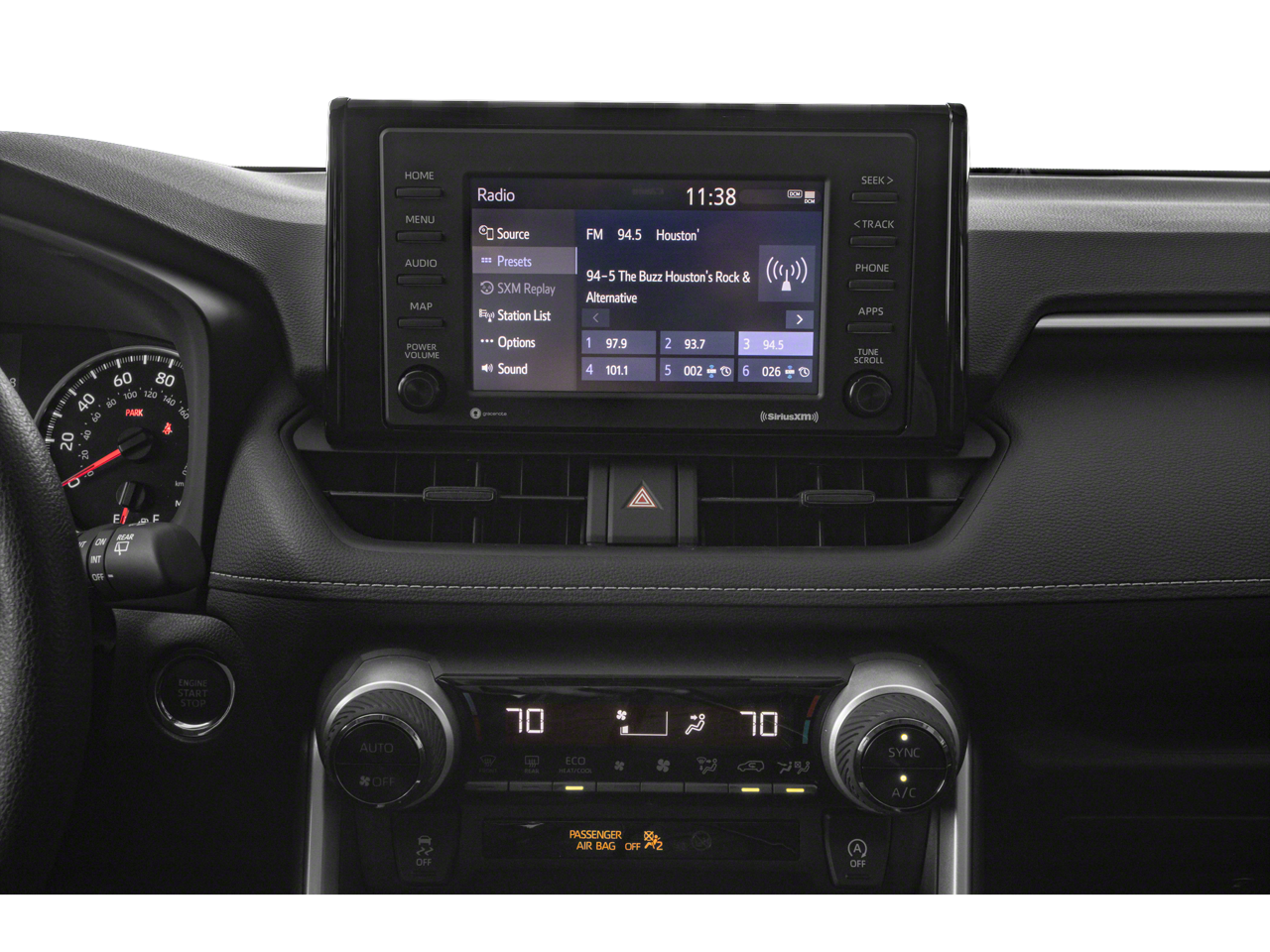 This 2022 Toyota RAV4 is equipped with Convenience Package (3 Spoke Leather Steering Wheel), Nutmeg Artificial Leather, 4-Wheel Disc Brakes, 6 Speakers, ABS brakes, Air Conditioning, Alloy wheels, AM/FM radio: SiriusXM, AM/FM Stereo, Apple CarPlay/Android Auto, Auto High-beam Headlights, Automatic temperature control, Axle Ratio: 3.177, Brake assist, Bumpers: body-color, Delay-off headlights, Driver door bin, Driver vanity mirror, Dual front impact airbags, Dual front side impact airbags, Electronic Stability Control, Emergency communication system: Safety Connect with 1-year trial, Exterior Parking Camera Rear, Four wheel independent suspension, Front anti-roll bar, Front Bucket Seats, Front Center Armrest, Front Door Smart Key System w/Push Button Start, Front dual zone A/C, Front reading lights, Fully automatic headlights, Heated door mirrors, Illuminated entry, Knee airbag, Leather Shift Knob, Low tire pressure warning, Occupant sensing airbag, Outside temperature display, Overhead airbag, Overhead console, Panic alarm, Passenger door bin, Passenger vanity mirror, Power door mirrors, Power driver seat, Power Liftgate, Power moonroof, Power steering, Power windows, Radio data system, Rear anti-roll bar, Rear seat center armrest, Rear window defroster, Rear window wiper, Remote keyless entry, Roof rack: rails only, SofTex Seat Trim, Speed control, Speed-sensing steering, Split folding rear seat, Spoiler, Steering wheel mounted audio controls, Tachometer, Telescoping steering wheel, Tilt steering wheel, Traction control, Trip computer, Turn signal indicator mirrors, Variably intermittent wipers, and Wheels: 19 5-Spoke Silver Alloy.