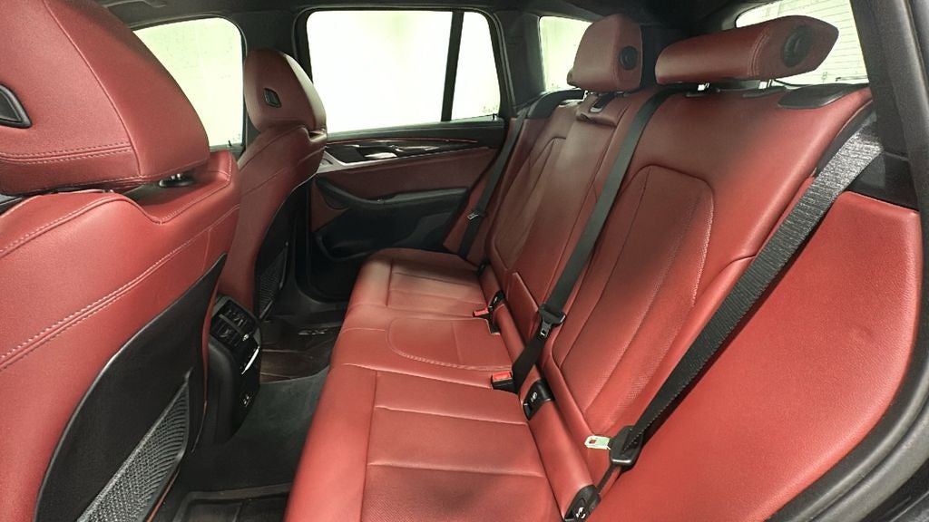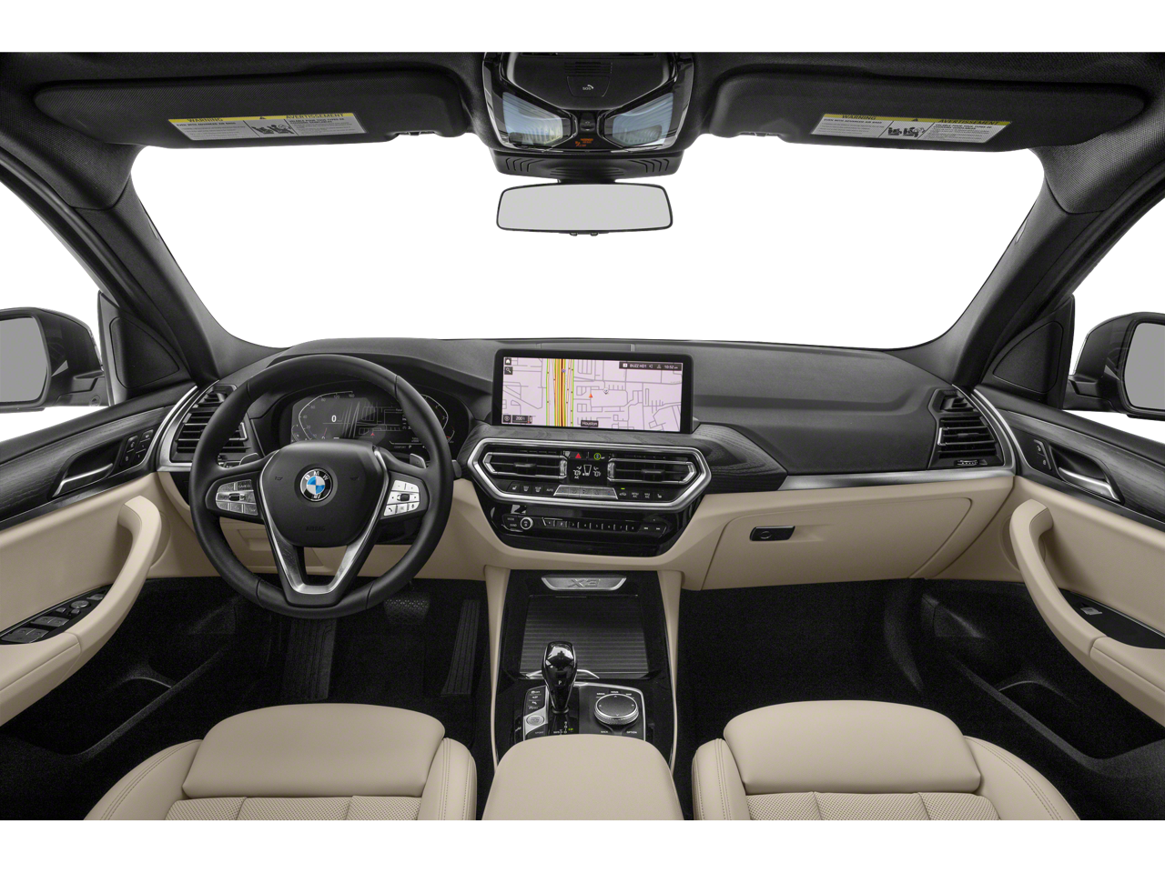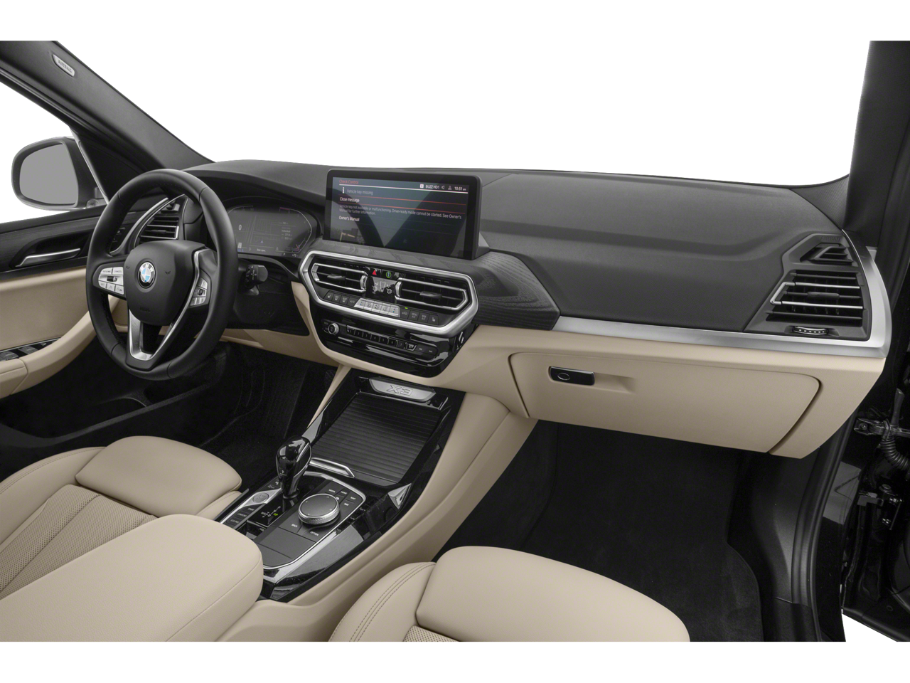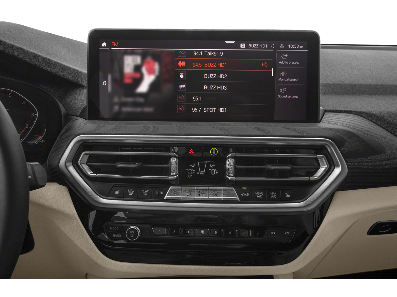 This 2023 BMW X3 is equipped with Connected Package Pro, Parking Assistance Package (Active Park Distance Control, Parking Assistant Plus, Rear-View Camera, and Surround View w/3D View), Premium Package (Head-Up Display, Heated Front Seats, and Heated Steering Wheel), Shadowline Package (Extended Shadowline Trim and M Shadowline Lights), 8-Speed Automatic Sport, Navigation System, 12 Speakers, 3.385 Axle Ratio, 4-Wheel Disc Brakes, ABS brakes, Adaptive suspension, Air Conditioning, Alloy wheels, AM/FM Radio, AM/FM radio: SiriusXM, Apple CarPlay & Android Auto Compatibility, Auto High-beam Headlights, Auto-dimming door mirrors, Auto-dimming Rear-View mirror, Automatic temperature control, BMW Assist eCall, BMW TeleServices, Brake assist, Bumpers: body-color, ConnectedDrive Services, Dark Oak Wood Trim, Delay-off headlights, Driver door bin, Driver Lumbar Support, Driver vanity mirror, Dual front impact airbags, Dual front side impact airbags, Electronic Stability Control, Emergency communication system: BMW Assist eCall, Enhanced USB & Bluetooth® w/Smartphone Integration, Exterior Parking Camera Rear, Four wheel independent suspension, Front anti-roll bar, Front Bucket Seats, Front Center Armrest, Front dual zone A/C, Front reading lights, Fully automatic headlights, Garage door transmitter, harman/kardon Surround Sound System, Heated door mirrors, Hi-Fi Sound System, Illuminated entry, Increased Top Speed Limiter, Knee airbag, Leather steering wheel, Live Cockpit Pro w/Navigation, Low tire pressure warning, Memory seat, Occupant sensing airbag, Outside temperature display, Overhead airbag, Overhead console, Panic alarm, Passenger door bin, Passenger vanity mirror, Perforated SensaTec Upholstery, Power door mirrors, Power driver seat, Power Front Seats, Power Liftgate, Power moonroof, Power passenger seat, Power steering, Power windows, Radio data system, Rain sensing wipers, Rear air conditioning, Rear anti-roll bar, Rear reading lights, Rear seat center armrest, Rear window defroster, Rear window wiper, Remote keyless entry, Security system, SiriusXM Satellite Radio, Speed control, Speed-sensing steering, Speed-Sensitive Wipers, Split folding rear seat, Spoiler, Sport Seats, Sport steering wheel, Steering wheel mounted audio controls, Tachometer, Telescoping steering wheel, Tilt steering wheel, Traction control, Trip computer, Turn signal indicator mirrors, Variably intermittent wipers, Wheels: 19 x 7.5 M Y-Spoke Bi-Color (Style 887M), Wheels: 20 x 8.0 Fr & 20 x 9.5 Rr (Style 699M), WiFi Hotspot, and Wireless Charging.