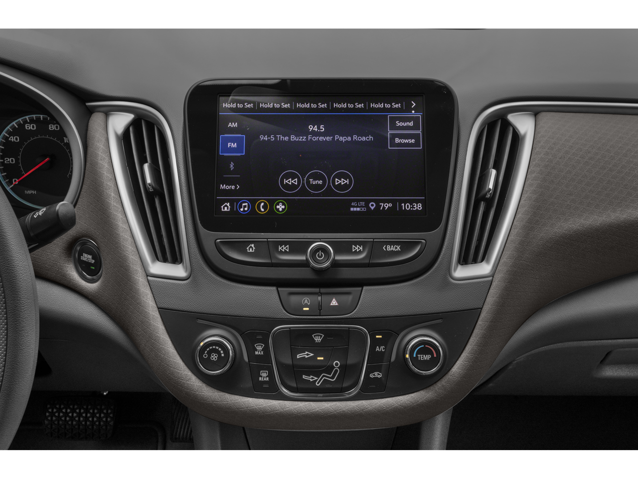 - Audio system, Chevrolet Infotainment 3 system, 8" diagonal color touchscreen, AM/FM stereo. Additional features for compatible phones include: Bluetooth® audio streaming for 2 active devices, voice command pass-through to phone, Apple CarPlay and Android Auto capable. (STD)
