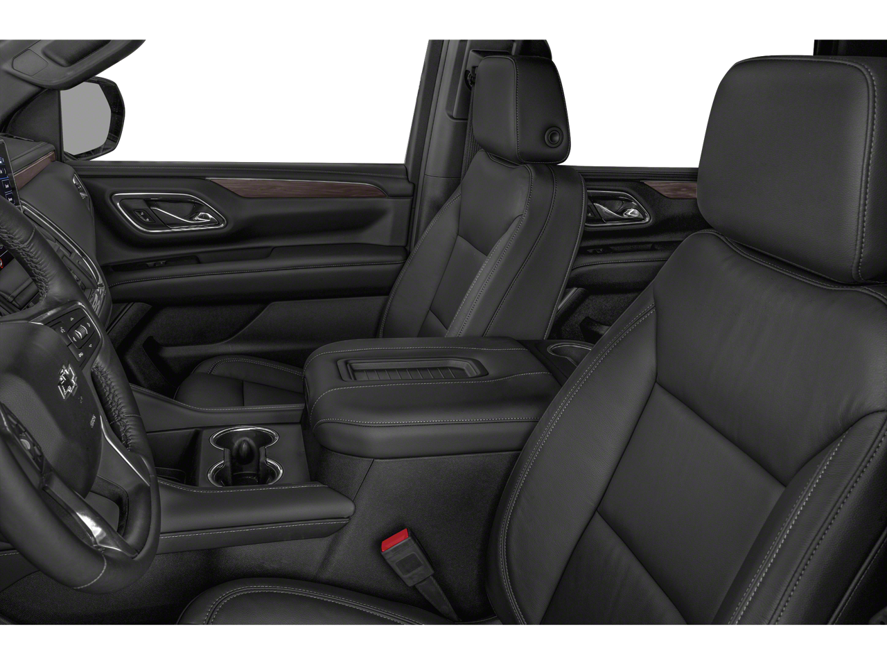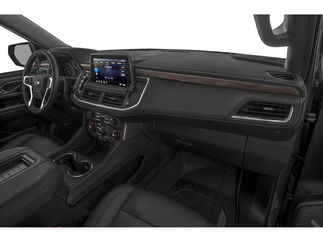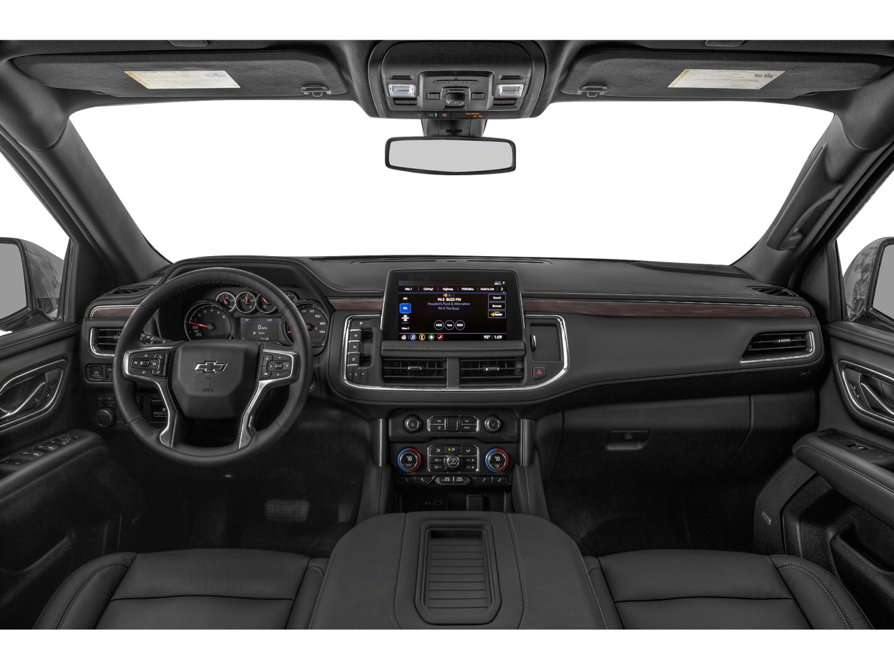 This 2023 Chevrolet Tahoe is equipped with License Plate Front Mounting Package, Preferred Equipment Group 2Z7 (1st & 2nd Row Color-Keyed Carpeted Floor Mats, 2-Speed Active Electronic AutoTrac Transfer Case, Auto-Dimming Inside Rear-View Mirror, Black Tubular Assist Steps, Bose 9-Speaker Stereo Audio System Feature, Bright Front & Rear Door Sill Plates, Color-Keyed Carpeting Floor Covering, Driver & Front Outboard Passenger Airbags, Enhanced Driver Information Center, Floor Console w/Storage Area, Front High-Approach Angle Fascia, Hands-Free Rear Power Programmable Liftgate, Hill Descent Control, Infotainment Display, LED Daytime Running Lamps, Memory Settings for Driver, Red Horizontal-Mounted Recovery Hooks, Remote Start, SiriusXM Radio w/360L, Universal Home Remote, Wireless Charging, and Wrapped Steering Wheel), 4WD, Gideon/Very Dark Atmosphere Leather, Navigation System, 10-Way Power Driver & Passenger Seat Adjusters, 2nd Row Manual Bucket Seats, 3.23 Rear Axle Ratio, 3rd row seats: split-bench, 4-Wheel Disc Brakes, 9 Speakers, ABS brakes, Air Conditioning, Alloy wheels, AM/FM radio: SiriusXM with 360L, Apple CarPlay/Android Auto, Auto High-beam Headlights, Auto-dimming Rear-View mirror, Automatic temperature control, Brake assist, Bumpers: body-color, Compass, Delay-off headlights, Driver door bin, Driver vanity mirror, Dual front impact airbags, Dual front side impact airbags, Dual-Pane Power Panoramic Sunroof, Electronic Stability Control, Emergency communication system: OnStar and Chevrolet connected services capable, Four wheel independent suspension, Front anti-roll bar, Front Bucket Seats, Front Center Armrest, Front dual zone A/C, Front High-Back Reclining Bucket Seats, Front reading lights, Fully automatic headlights, Garage door transmitter, Heated door mirrors, Heated Driver & Front Passenger Seats, Heated front seats, Illuminated entry, Leather-Appointed Seat Trim, Low tire pressure warning, Memory seat, Occupant sensing airbag, Outside temperature display, Overhead airbag, Overhead console, Panic alarm, Passenger door bin, Passenger vanity mirror, Power door mirrors, Power driver seat, Power Liftgate, Power passenger seat, Power steering, Power windows, Premium audio system: Chevrolet Infotainment 3 Premium, Premium Smooth Ride Suspension, Radio: Chevrolet Infotainment 3 Premium System, Rain sensing wipers, Rear air conditioning, Rear anti-roll bar, Rear reading lights, Rear seat center armrest, Rear window defroster, Rear window wiper, Remote keyless entry, Roof rack: rails only, Security system, Speed control, Speed-sensing steering, Split folding rear seat, Spoiler, Steering wheel mounted audio controls, Tachometer, Telescoping steering wheel, Tilt steering wheel, Traction control, Trip computer, Variably intermittent wipers, Voltmeter, and Wheels: 20 x 9 Machined Aluminum.