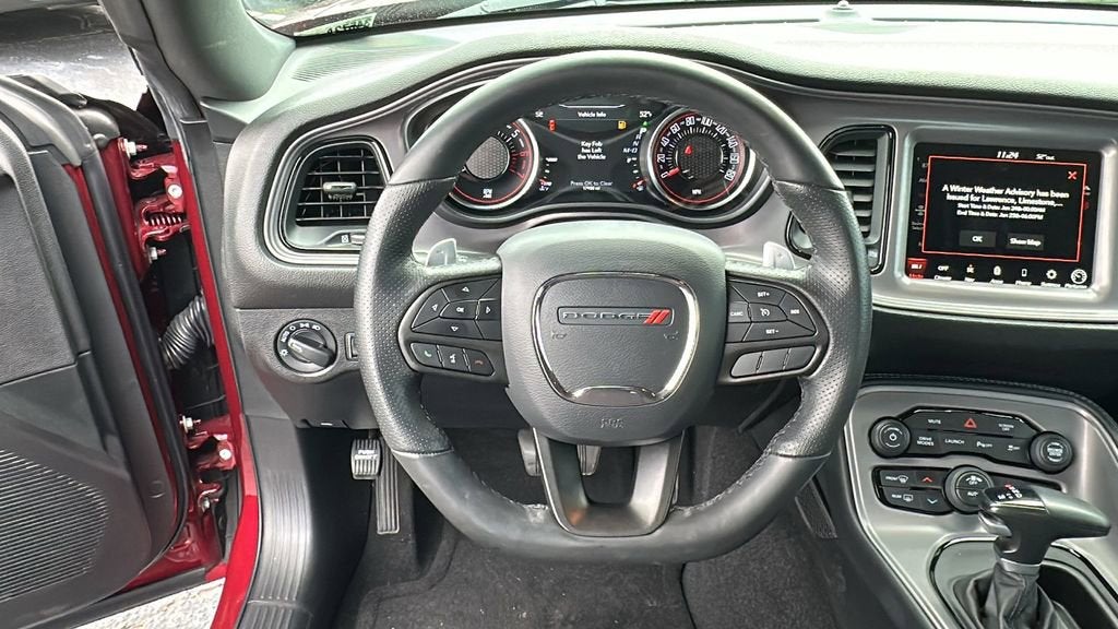 This 2023 Dodge Challenger is equipped with Alpine Audio Group w/Subwoofer (506 Watt Amplifier, 9 Amplified Speakers w/Subwoofer, and Surround Sound), Quick Order Package 24N R/T Scat Pack Widebody (Adaptive Damping Suspension, Brembo 6-Pot Fixed Front Caliper Brakes, Flat-Bottom Steering Wheel, Performance Shift Indicator, Rhombi 2-Pc Wheel Center Cap, Wheels: 20 x 11.0 Carbon Black Aluminum, Widebody Competition Suspension, and Widebody Fender Flares), GPS Navigation, 1-Yr SiriusXM Guardian Trial, 4-Wheel Disc Brakes, 4G LTE Wi-Fi Hot Spot, 5-Year SiriusXM Traffic Service, 5-Year SiriusXM Travel Link Service, 6 Speakers, 8.4 Touchscreen Display, ABS brakes, Air Conditioning, All Radio Equipped Vehicles, All VP4R Radios, Alloy wheels, AM/FM radio: SiriusXM, Anti-whiplash front head restraints, Apple CarPlay, Apple CarPlay/Android Auto, Auto-dimming Rear-View mirror, Automatic temperature control, Body Color Exterior Mirrors, Brake assist, Bumpers: body-color, Compass, Compass Gauge, Delay-off headlights, Driver door bin, Driver vanity mirror, Dual front impact airbags, Dual front side impact airbags, Electronic Stability Control, Emergency communication system: SiriusXM Guardian, Exterior Mirrors w/Heating Element, For Details, Visit DriveUconnect.com, For More Info, Call 800-643-2112, Four wheel independent suspension, Front anti-roll bar, Front Bucket Seats, Front Center Armrest, Front dual zone A/C, Front fog lights, Front reading lights, Fully automatic headlights, Garage door transmitter, Google Android Auto, GPS Antenna Input, HD Radio, Heated door mirrors, Houndstooth Cloth Performance Seats, Illuminated entry, Integrated Center Stack Radio, Integrated Voice Command w/Bluetooth®, Leather Shift Knob, Low tire pressure warning, Media Hub (2 USB, AUX), Outside temperature display, Overhead airbag, Overhead console, Panic alarm, ParkView Rear Back-Up Camera, Passenger door bin, Passenger vanity mirror, Power door mirrors, Power driver seat, Power steering, Power windows, Radio data system, Radio: Uconnect 4C Nav w/8.4 Display, Radio: Uconnect 4C w/8.4 Display, Rear anti-roll bar, Rear reading lights, Rear seat center armrest, Rear window defroster, Remote keyless entry, Security system, Shark Fin Antenna, SiriusXM Radio Service, SiriusXM Satellite Radio, SiriusXM Traffic Plus, SiriusXM Travel Link, Speed control, Speed-sensing steering, Split folding rear seat, Spoiler, Sport steering wheel, Steering wheel mounted audio controls, Tachometer, Telescoping steering wheel, Tilt steering wheel, Traction control, Trip computer, USB Host Flip, Variably intermittent wipers, and Wheels: 20 x 9.0 Lo Gloss Granite Crystal. Recent Arrival!