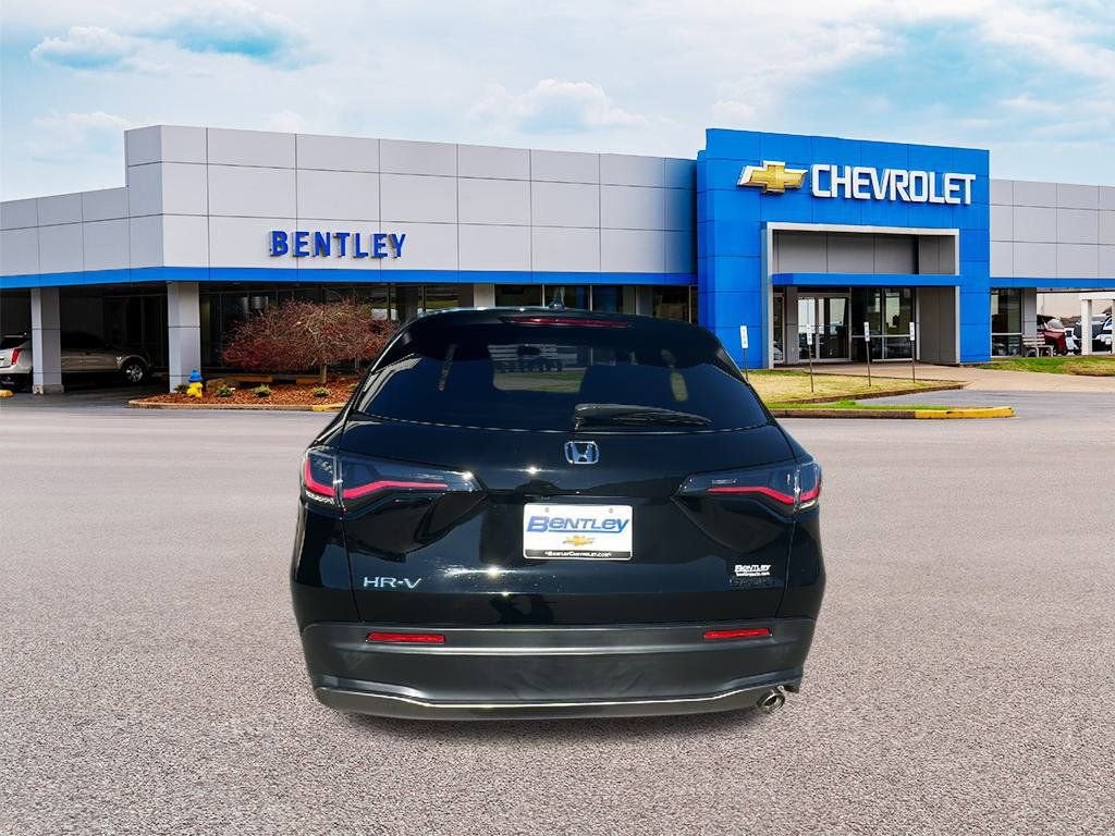 This 2023 Honda HR-V is equipped with 4-Wheel Disc Brakes, 5.436 Axle Ratio, 6 Speakers, ABS brakes, Adaptive Cruise Control: Adaptive Cruise Control (ACC) with Low-Speed Follow, Air Conditioning, Alloy wheels, AM/FM radio, Apple CarPlay/Android Auto, Auto High-beam Headlights, Automatic temperature control, Blind Spot Information (BSI) System warning, Brake assist, Bumpers: body-color, Cloth Seat Trim, Delay-off headlights, Driver door bin, Driver vanity mirror, Dual front impact airbags, Dual front side impact airbags, Electronic Stability Control, Emergency communication system: HondaLink, Exterior Parking Camera Rear, Four wheel independent suspension, Front anti-roll bar, Front Bucket Seats, Front Center Armrest, Front reading lights, Fully automatic headlights, Heated door mirrors, Heated Front Bucket Seats, Heated front seats, Illuminated entry, Knee airbag, Leather Shift Knob, Low tire pressure warning, Occupant sensing airbag, Outside temperature display, Overhead airbag, Panic alarm, Passenger door bin, Passenger vanity mirror, Power door mirrors, Power steering, Power windows, Radio data system, Radio: 180-Watt Audio System w/6 Speakers, Rear anti-roll bar, Rear reading lights, Rear side impact airbag, Rear window defroster, Rear window wiper, Remote keyless entry, Security system, Speed control, Speed-sensing steering, Split folding rear seat, Spoiler, Steering wheel mounted audio controls, Tachometer, Telescoping steering wheel, Tilt steering wheel, Traction control, Trip computer, Turn signal indicator mirrors, Variably intermittent wipers, and Wheels: 18 Gloss Black Alloy.
