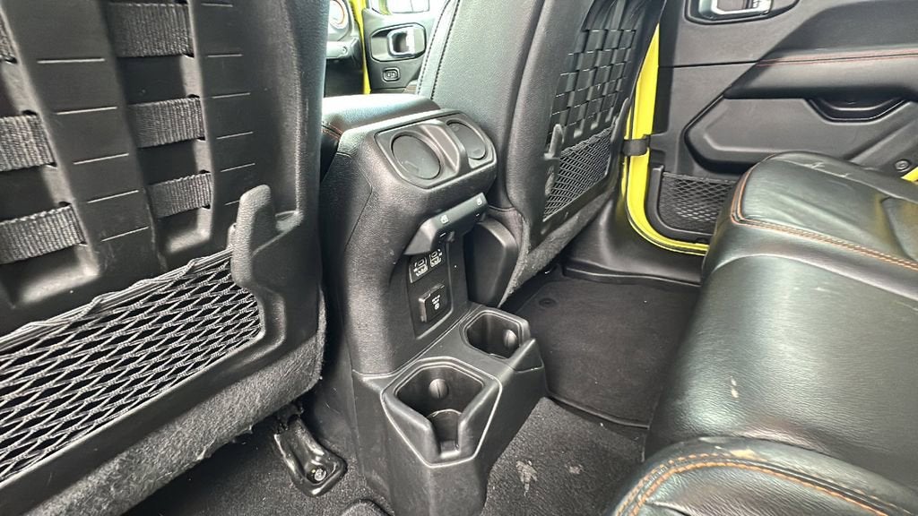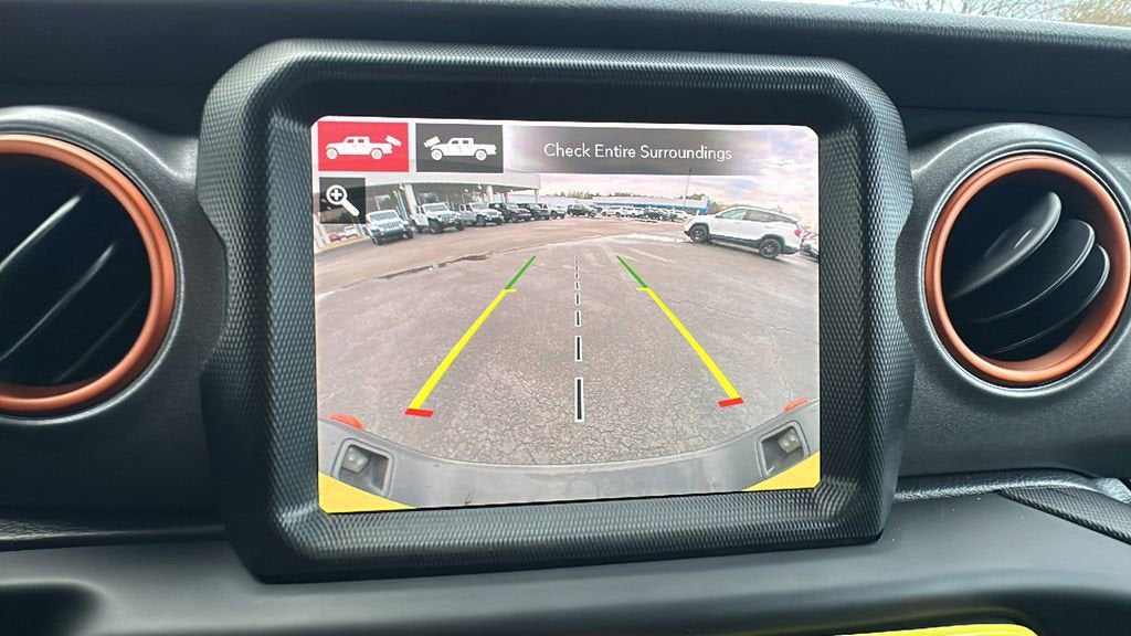 This 2023 Jeep Gladiator is equipped with Auxiliary Switch Group (240 Amp Alternator and Auxiliary Switches), Cold Weather Group (Heated Front Seats and Heated Steering Wheel), LED Lighting Group (Daytime Running Lamps LED Accents, Front LED Fog Lamps, LED Park Turn Lamps, LED Premium Reflector Headlamps, and LED Taillamps), Quick Order Package 24D Mojave, Trailer Tow Package (Class IV Receiver Hitch, Heavy-Duty Engine Cooling, and Trailer Hitch Zoom), Navigation System, 4-Wheel Disc Brakes, 4.10 Rear Axle Ratio, 9 Speakers, 97 MPH Vehicle Max Speed Calibration, ABS brakes, Air Conditioning, Alloy wheels, AM/FM radio: SiriusXM, Apple CarPlay/Android Auto, Auto-dimming Rear-View mirror, Automatic temperature control, Body Color 3-Piece Hard Top, Body Color Fender Flares (2-Piece), Brake assist, Compass, Delay-off headlights, Driver door bin, Driver vanity mirror, Dual front impact airbags, Dual front side impact airbags, Electronic Stability Control, Emergency communication system, Freedom Panel Storage Bag, Front anti-roll bar, Front Bucket Seats, Front Center Armrest w/Storage, Front dual zone A/C, Front fog lights, Front reading lights, Fully automatic headlights, Garage door transmitter, Heated door mirrors, Heavy Duty Suspension w/Gas Shocks, Illuminated entry, Integrated Off-Road Camera, Integrated roll-over protection, Leather steering wheel, Low tire pressure warning, MOPAR Hard Tri-Fold Tonneau Cover, MOPAR Spray In Bedliner, No Soft Top, Occupant sensing airbag, Outside temperature display, Panic alarm, ParkView Rear Back-Up Camera, Passenger door bin, Passenger vanity mirror, Power door mirrors, Power steering, Power windows, Premium Cloth Seats w/Sport Bolsters, Radio data system, Radio: Uconnect 4C Nav w/8.4 Display, Rear anti-roll bar, Rear reading lights, Rear Sliding Window, Rear Window Defroster, Remote keyless entry, Security system, Speed control, Split folding rear seat, Steering wheel mounted audio controls, Tachometer, Telescoping steering wheel, Tilt steering wheel, Traction control, Trip computer, Variably intermittent wipers, Voltmeter, and Wheels: 17 x 7.5 Low Gloss Black Aluminum.