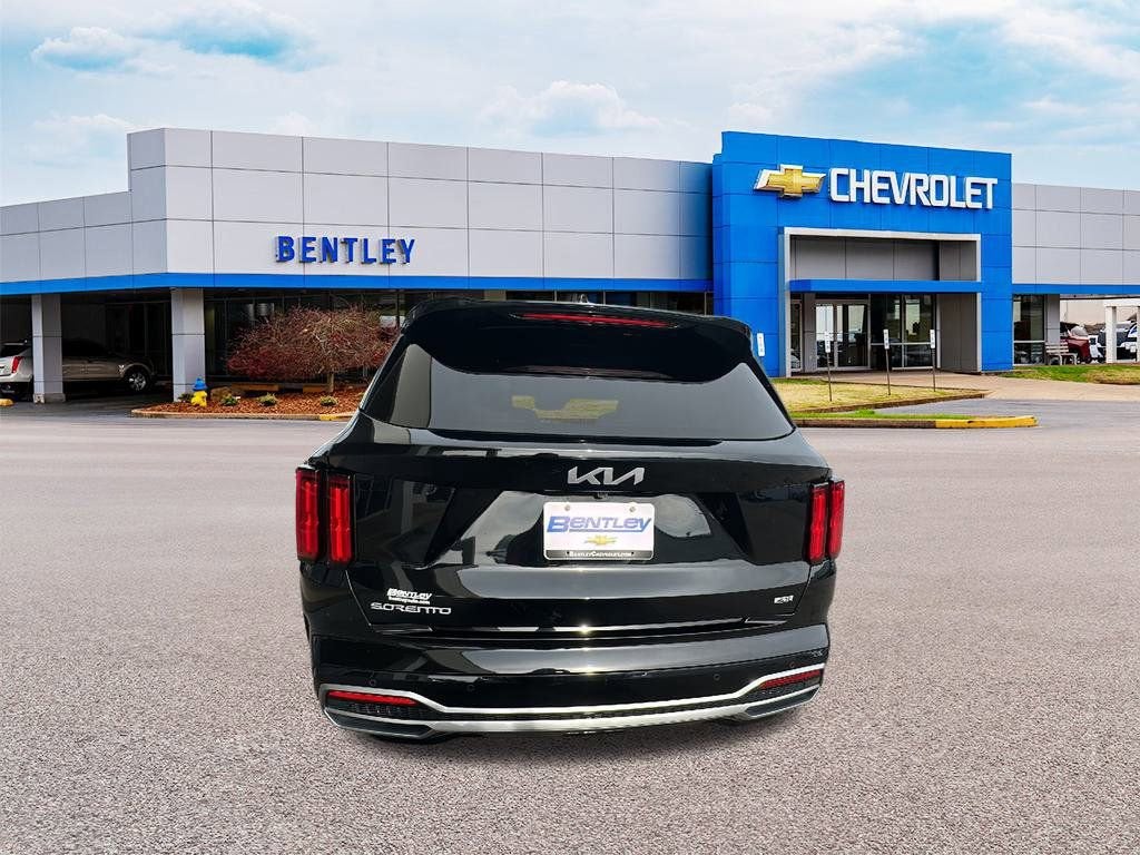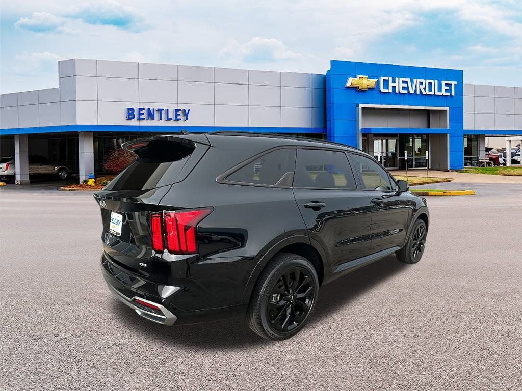 This 2023 Kia Sorento is equipped with AWD, Navigation System, 3.316 Axle Ratio, 3rd row seats: split-bench, 4-Wheel Disc Brakes, 6 Speakers, ABS brakes, Air Conditioning, Alloy wheels, AM/FM radio: SiriusXM, Apple CarPlay & Android Auto, Auto High-beam Headlights, Auto-dimming Rear-View mirror, Automatic temperature control, Brake assist, Bumpers: body-color, Carpet Floor Mats, Delay-off headlights, Driver door bin, Driver vanity mirror, Dual front impact airbags, Dual front side impact airbags, Electronic Stability Control, Emergency communication system, Exterior Parking Camera Rear, Four wheel independent suspension, Front anti-roll bar, Front Bucket Seats, Front Center Armrest, Front dual zone A/C, Front fog lights, Front reading lights, Fully automatic headlights, Heated door mirrors, Heated Front Bucket Seats, Heated front seats, Illuminated entry, Knee airbag, Leather steering wheel, Low tire pressure warning, Occupant sensing airbag, Outside temperature display, Overhead airbag, Overhead console, Panic alarm, Passenger door bin, Passenger vanity mirror, Power door mirrors, Power driver seat, Power Liftgate, Power moonroof, Power passenger seat, Power steering, Power windows, Radio data system, Radio: AM/FM Audio System, Rain sensing wipers, Rear air conditioning, Rear anti-roll bar, Rear reading lights, Rear window defroster, Rear window wiper, Remote keyless entry, Roof rack: rails only, Security system, Smart Key w/ Push Button and Remote Start, Speed control, Speed-sensing steering, Split folding rear seat, Spoiler, Steering wheel mounted audio controls, SynTex Artificial Leather Seat Trim, Tachometer, Telescoping steering wheel, Tilt steering wheel, Traction control, Trip computer, Turn signal indicator mirrors, Variably intermittent wipers, and Wheels: 8.5J x 20 Gloss Black Alloy.