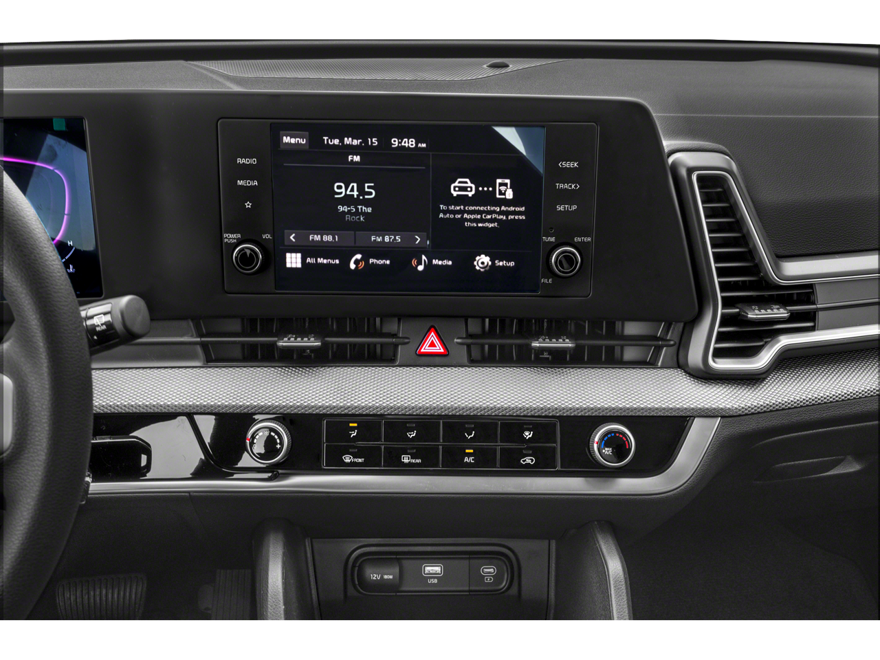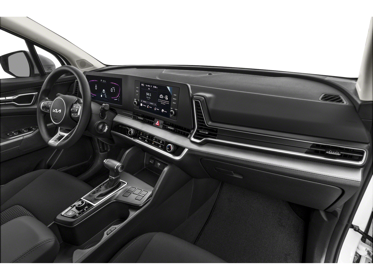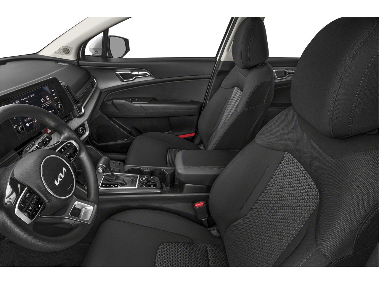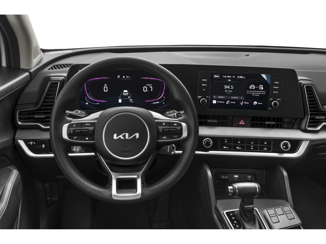 This 2023 Kia Sportage is equipped with 17 Alloy Wheels, 4-Wheel Disc Brakes, 6 Speakers, ABS brakes, Air Conditioning, Alloy wheels, AM/FM radio, Auto High-beam Headlights, Axle Ratio: 3.648, Brake assist, Bumpers: body-color, Carpeted Floor Mats, Cloth Seat Trim, Delay-off headlights, Driver door bin, Driver vanity mirror, Dual front impact airbags, Dual front side impact airbags, Electronic Stability Control, Four wheel independent suspension, Front anti-roll bar, Front Bucket Seats, Front Center Armrest, Fully automatic headlights, Illuminated entry, Low tire pressure warning, Occupant sensing airbag, Outside temperature display, Overhead airbag, Overhead console, Panic alarm, Passenger door bin, Passenger vanity mirror, Power door mirrors, Power steering, Power windows, Radio: AM/FM/HD Audio System, Rear anti-roll bar, Rear seat center armrest, Rear window defroster, Rear window wiper, Remote keyless entry, Security system, Speed control, Speed-sensing steering, Split folding rear seat, Spoiler, Steering wheel mounted audio controls, Tachometer, Telescoping steering wheel, Tilt steering wheel, Traction control, Trip computer, and Variably intermittent wipers.