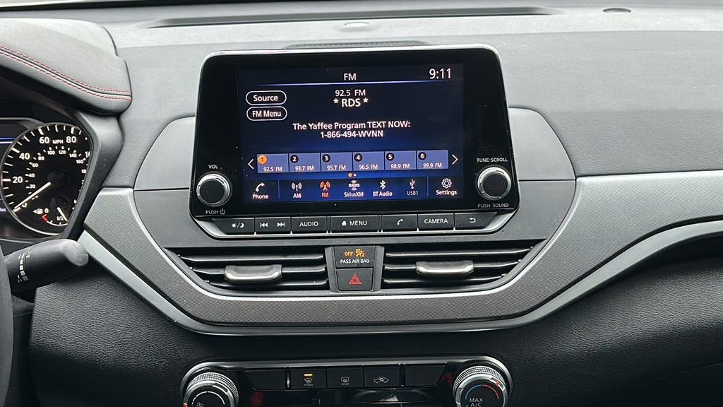 This 2023 Nissan Altima is equipped with CVT with Xtronic, 4-Wheel Disc Brakes, 6 Speakers, ABS brakes, Air Conditioning, Alloy wheels, AM/FM radio: SiriusXM, Auto High-beam Headlights, Blind Spot Warning, Body-Colored Rear Spoiler, Body-Colored Splash Guards, Brake assist, Bumpers: body-color, Chrome Bumper Protector, Delay-off headlights, Driver door bin, Driver vanity mirror, Dual front impact airbags, Dual front side impact airbags, Electronic Stability Control, Four wheel independent suspension, Front anti-roll bar, Front Bucket Seats, Front Center Armrest, Front reading lights, Front Sport Bucket Seats, Fully automatic headlights, Illuminated entry, Knee airbag, Leather Shift Knob, Low tire pressure warning, NissanConnect featuring Apple CarPlay and Android Auto, Occupant sensing airbag, Outside temperature display, Overhead airbag, Overhead console, Panic alarm, Passenger door bin, Passenger vanity mirror, Power door mirrors, Power driver seat, Power steering, Power windows, Radio data system, Radio: AM/FM Audio System, Rear anti-roll bar, Rear Parking Sensors, Rear reading lights, Rear seat center armrest, Rear side impact airbag, Rear window defroster, Remote keyless entry, Security system, Speed control, Speed-sensing steering, Speed-Sensitive Wipers, Split folding rear seat, Sport Seat Trim, SR Floor Mats/Trunk Mat/Hideaway Nets, Steering wheel mounted audio controls, Tachometer, Telescoping steering wheel, Tilt steering wheel, Traction control, Trip computer, Trunk Organizer Tray, Variably intermittent wipers, and Wheels: 19 Sport Alloy.
