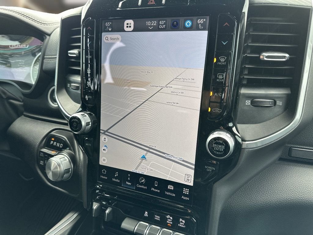 This 2023 Ram 1500 is equipped with Bed Utility Group (MOPAR 4 Adjustable Cargo Tie-Down Hooks, MOPAR Spray In Bedliner, and Pick-Up Box Lighting), Laramie Level B Equipment Group (12 Touchscreen Display, 2nd Row In Floor Storage Bins, 4G LTE Wi-Fi Hot Spot, Apple CarPlay, Auto High Beam Headlamp Control, Blind Spot & Cross Path Detection, Connected Travel & Traffic Services, Connectivity - US/Canada, Disassociated Touchscreen Display, Electric Shift-On-Demand Transfer Case, Foam Bottle Insert (Door Trim Panel), For Details, Visit DriveUconnect.com, For More Info, Call 800-643-2112, Front Door Accent Lighting, Front LED Fog Lamps, Global Telematics Box Module (TBM), Google Android Auto, GPS Antenna Input, GPS Navigation, harman/kardon 19 Speaker Premium Sound, HD Radio, Integrated Center Stack Radio, Integrated Voice Command w/Bluetooth®, LED Reflector Headlamps, ParkSense Front/Rear Park Assist w/Stop, Radio: Uconnect 5 Nav w/12.0 Display, Rain Sensitive Windshield Wipers, Rear Door Accent Lighting, Rear Power Sliding Window, Rear Underseat Compartment Storage, Rear Window Defroster, Remote Tailgate Release, SiriusXM Radio Service, SiriusXM w/360L, and USB Host Flip), Quick Order Package 27H Laramie, Sport Appearance Package (Black Interior Accents, Body Color Exterior Mirrors, Body Color Front Bumper, Body Color Premium Power Mirrors, Body Color Rear Bumper w/Step Pads, Grille Surround 3 Body Color Tex 2 Black, RAM Grille Badge - Chrome, Sport Decal, Sport Performance Hood, and Wheels: 20 x 9 Premium Painted w/Inserts), Navigation System, #1 Seat Foam Cushion, 10 Speakers, 3 Rear Seat Head Restraints, 33 Gallon Fuel Tank, 4 Way Front Headrests, 4-Wheel Disc Brakes, 48V Belt Starter Generator, ABS brakes, Adjustable pedals, Air Conditioning, Alloy wheels, AM/FM radio: SiriusXM with 360L, Anti-Spin Differential Rear Axle, Apple CarPlay/Android Auto, Audio memory, Auto-dimming door mirrors, Auto-Dimming Exterior Driver Mirror, Auto-dimming Rear-View mirror, Automatic temperature control, Brake assist, Bumpers: chrome, Chrome Exterior Mirrors, Class IV Receiver Hitch, Compass, Convex Wide-Angle Exterior Mirror Insert, Delay-off headlights, Dome Dual LED Reading Lamp, Driver door bin, Driver Seat Memory, Driver vanity mirror, Dual front imp