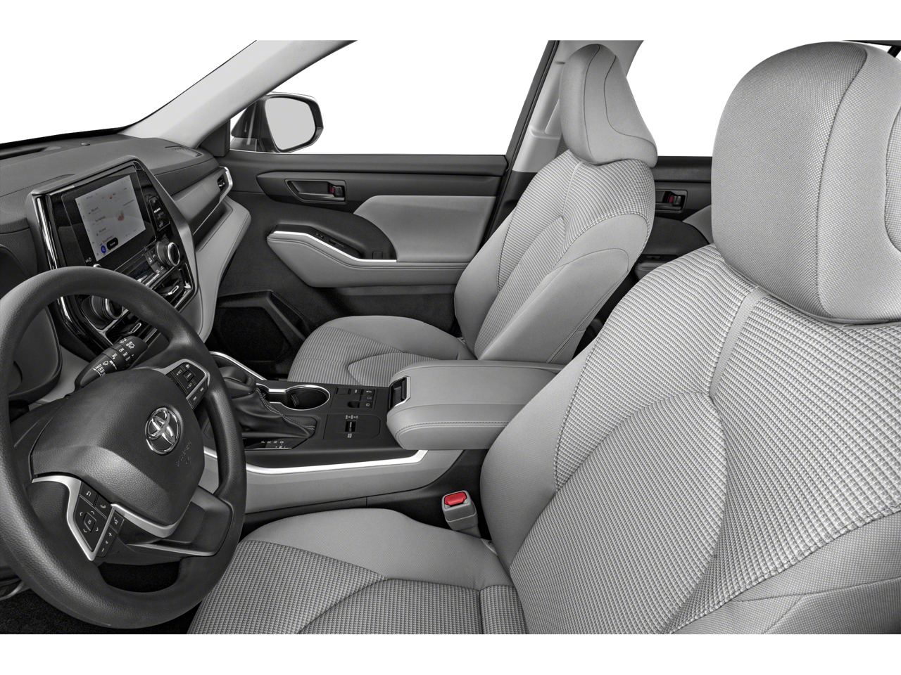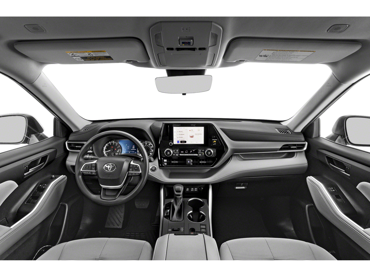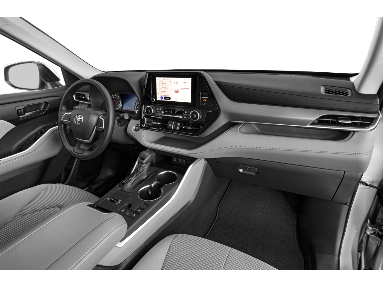 This 2023 Toyota Highlander is equipped with 18 Painted Alloy Wheels, 3.329 Axle Ratio, 3rd row seats: split-bench, 4-Wheel Disc Brakes, 6 Speakers, ABS brakes, Air Conditioning, All Weather Floor & Cargo Liner (TMS), Alloy wheels, AM/FM radio: SiriusXM, Apple CarPlay/Android Auto, Auto High-beam Headlights, Automatic temperature control, Body Side Moldings (TMS), Brake assist, Bumpers: body-color, Cargo Cover (TMS), Clear Rear Bumper Applique (TMS), Delay-off headlights, Door Edge Guards (TMS), Driver door bin, Driver vanity mirror, Dual front impact airbags, Dual front side impact airbags, Electronic Stability Control, Emergency Assistance Kit (TMS), Emergency communication system: Safety Connect (up to 10-year trial subscription), Exterior Parking Camera Rear, Fabric Seat Trim, First Aid Kit (TMS), Four wheel independent suspension, Front anti-roll bar, Front Bucket Seats, Front Center Armrest, Front dual zone A/C, Front fog lights, Front reading lights, Fully automatic headlights, Heated door mirrors, Illuminated Door Sills (TMS), Illuminated entry, Knee airbag, Leather Shift Knob, Leather steering wheel, Low tire pressure warning, Occupant sensing airbag, Outside temperature display, Overhead airbag, Overhead console, Panic alarm, Passenger door bin, Passenger vanity mirror, Power door mirrors, Power driver seat, Power Liftgate, Power steering, Power windows, Quick Charge Cables (TMS), Radio: 8 Toyota Audio Multimedia, Rear air conditioning, Rear anti-roll bar, Rear reading lights, Rear seat center armrest, Rear window defroster, Rear window wiper, Reclining 3rd row seat, Remote keyless entry, Security system, Speed control, Speed-sensing steering, Split folding rear seat, Spoiler, Steering wheel mounted audio controls, Tachometer, Telescoping steering wheel, Tilt steering wheel, Traction control, Trip computer, Turn signal indicator mirrors, and Variably intermittent wipers.