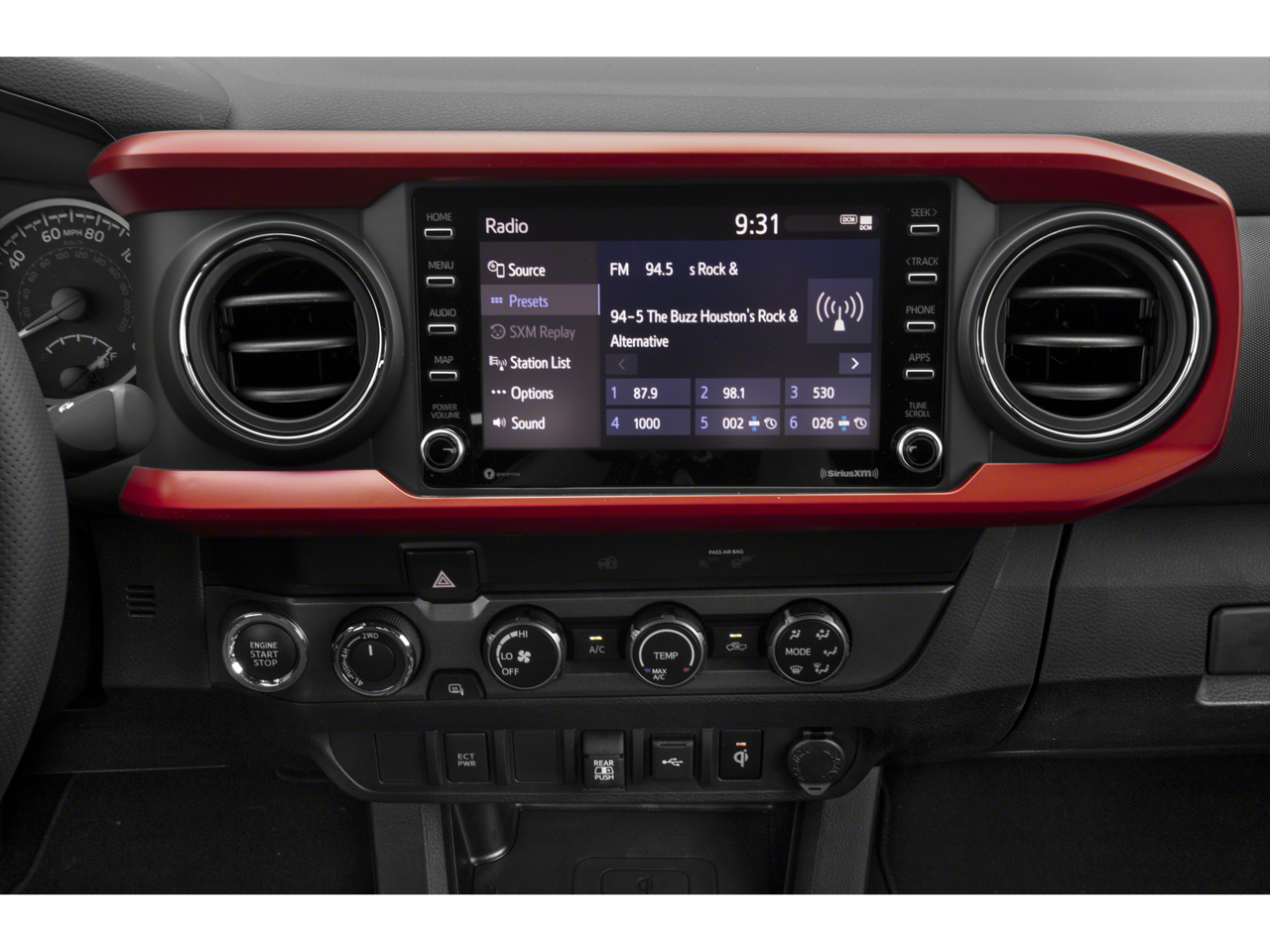 This 2023 Toyota Tacoma is equipped with TRD Premium Sport Package (120V/400W Deck Mounted AC Power, Auto Headlights, Auto-Dimming Rearview Mirror w/HomeLink, Color-Keyed Rear Bumper, Engine Immobilizer, Heated Front Seats, Leather Seat Trim, Power Tilt/Slide Moonroof, and Radio: Premium JBL Audio w/Dynamic Navigation), 4WD, 17 Machined Alloy Wheels, 6 Speakers, ABS brakes, Air Conditioning, Alloy wheels, AM/FM radio: SiriusXM, Anti-whiplash front head restraints, Apple CarPlay/Android Auto, Auto High-beam Headlights, Auto-dimming Rear-View mirror, Automatic temperature control, Axle Ratio: 3.91, Brake assist, Bumpers: body-color, Driver door bin, Dual front impact airbags, Dual front side impact airbags, Electronic Stability Control, Emergency communication system: Safety Connect (1-year trial), Exterior Parking Camera Rear, Fabric Seat Trim, Front anti-roll bar, Front Bucket Seats, Front Center Armrest, Front dual zone A/C, Front fog lights, Front reading lights, Front Seats, Front wheel independent suspension, Heated door mirrors, Illuminated entry, Knee airbag, Leather Shift Knob, Low tire pressure warning, Occupant sensing airbag, Outside temperature display, Overhead airbag, Overhead console, Panic alarm, Passenger door bin, Power door mirrors, Power driver seat, Power steering, Power windows, Radio: Audio, Rear step bumper, Remote keyless entry, Security system, Speed control, Speed-sensing steering, Split folding rear seat, Steering wheel mounted audio controls, Tachometer, Telescoping steering wheel, Tilt steering wheel, Traction control, Trip computer, Turn signal indicator mirrors, and Variably intermittent wipers.