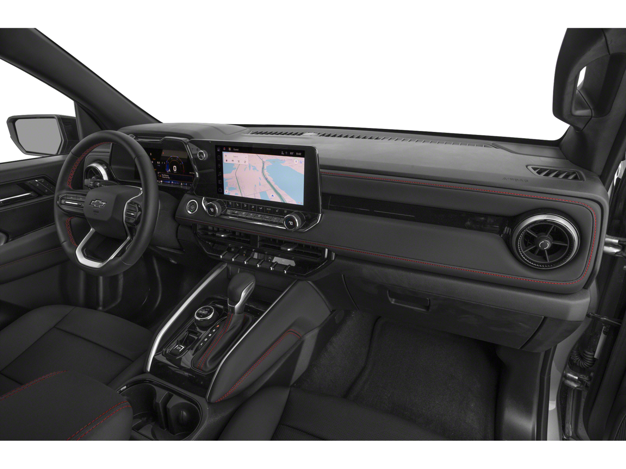 This 2024 Chevrolet Colorado is equipped with Advanced Trailering Package (Trailering App), Heavy-Duty Trailering Package (Integrated Trailer Brake Controller), Preferred Equipment Group 4Z7 (Automatic Emergency Braking, Chevy Safety Assist, Electronic Automatic Cruise Control, Following Distance Indicator, Forward Collision Alert, Front Pedestrian & Bicyclist Braking, IntelliBeam Automatic High Beam On/Off, Lane Keep Assist w/Lane Departure Warning, and Rear-Window Electric Defogger), Safety Package (Rear Cross Traffic Braking and Rear Park Assist), 4WD, 220 Amp Generator, 3.42 Rear Axle Ratio, 4-Way Manual Passenger Seat Adjuster, 4-Wheel Disc Brakes, 6 Speakers, 6-Speaker Audio System Feature, 6-Way Manual Driver Seat Adjuster, ABS brakes, Air Conditioning, Alloy wheels, AM/FM radio: SiriusXM, Apple CarPlay/Android Auto, Auto High-beam Headlights, Black Spray-On Bedliner w/Chevrolet Logo, Blind Zone Steering Assist w/Trailering, Brake assist, Bumpers: body-color, Cloth/Evotex Seat Trim, Compass, Delay-off headlights, Driver door bin, Driver vanity mirror, Dual front impact airbags, Dual front side impact airbags, Electronic Stability Control, Front anti-roll bar, Front Bucket Seats, Front Center Armrest, Front fog lights, Front Passenger Seatback Map Pocket, Front reading lights, Front wheel independent suspension, Heated door mirrors, Illuminated entry, Low tire pressure warning, Navigation System, Occupant sensing airbag, Outside temperature display, Overhead airbag, Overhead console, Panic alarm, Passenger door bin, Passenger vanity mirror, Power door mirrors, Power steering, Power windows, Radio data system, Radio: 11.3 Diagonal Advanced Color LCD Display, Rear reading lights, Rear step bumper, Rear window defroster, Remote keyless entry, Security system, SiriusXM Radio, Speed control, Speed-sensing steering, Split folding rear seat, Steering Wheel Mounted Audio Controls, Steering wheel mounted audio controls, Tachometer, Tilt steering wheel, Traction control, Trip computer, Variably intermittent wipers, Wheels: 18 x 8.5 Android Dark Full Gloss Aluminum, and Wireless Phone Projection.