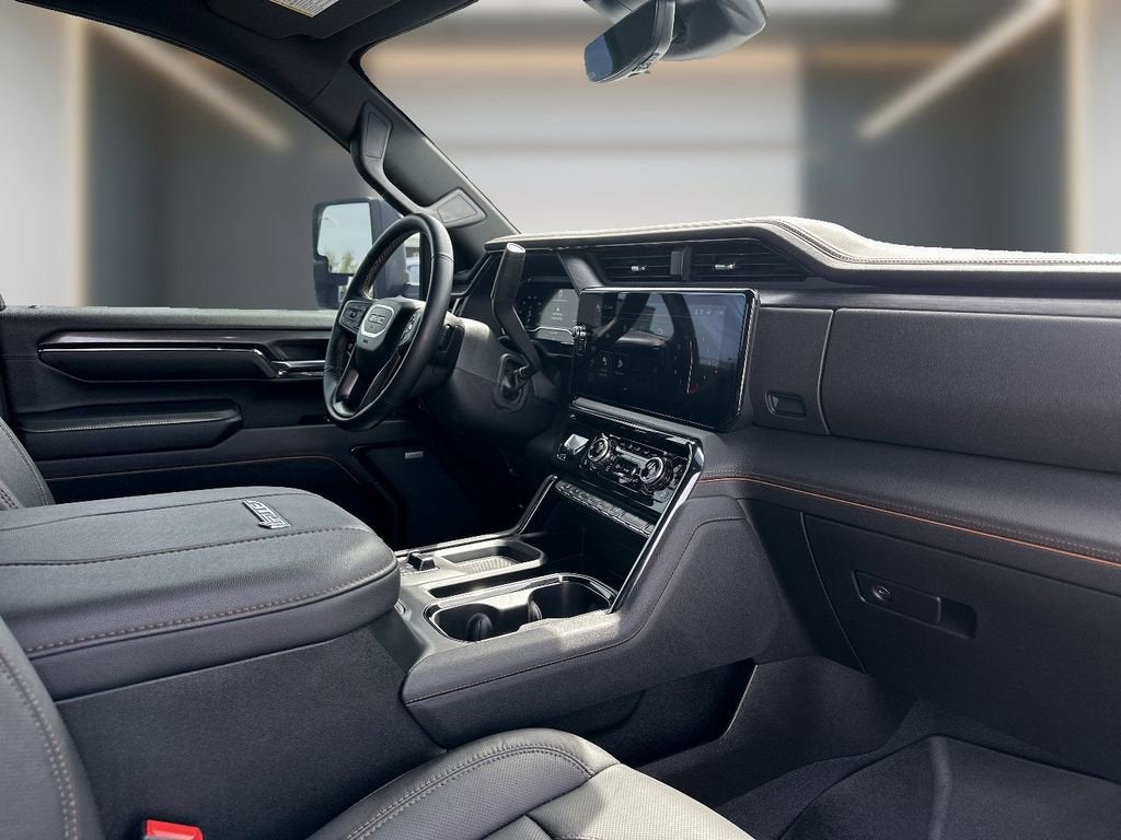 This 2024 GMC Sierra 2500HD is equipped with AT4 Preferred Package (Adaptive Cruise Control, LED Smoked Amber Roof Marker Lamps, Power Sliding Rear Window w/Defogger, and Universal Home Remote), AT4 Premium Plus Package (Off-Road High Clearance Step (LPO) and Power Sunroof), Gooseneck/5th Wheel Prep Package, Preferred Equipment Group 4SB (120-Volt Bed Mounted Power Outlet, 120-Volt Instrument Panel Power Outlet, 2 Charge-Only Rear USB Ports, 2 Charge/Data USB Ports Inside Center Console, 2 USB Ports, 2-Speed Active Transfer Case, Bed View Camera w/2 Trailer Camera Provisions, Bose Premium 7-Speaker Sound System, Deep-Tinted Glass, Electric Rear-Window Defogger, Floor-Mounted Center Console, Front Prem Floor Liners w/Removable Carpet Insert, Front Rain-Sensing Wipers, Gloss Black Header Grille & Grille Insert Bars, GMC Connected Access Capable, HD Surround Vision, Heated 2nd Row Outboard Seats, Heated Driver & Front Outboard Passenger Seats, Integrated Trailer Brake Controller, Keyless Open & Start, LED Cargo Area Lighting, Manual Tilt-Wheel/Telescoping Steering Column, OnStar & GMC Connected Services Capable, Power Front Passenger Windows w/Express Up/Down, Push Button Start, Rear Cross Traffic Alert, Rear Prem Floor Liners w/Removable Carpet Insert, Rear Wheelhouse Liners, Remote Vehicle Starter System, Safety Alert Seat, SiriusXM w/360L, Spray-On Bedliner w/AT4 Logo, Steering Wheel Audio Controls, Trailer Cam Provisions & Trailer Viewing Software, Trailer Side Blind Zone Alert, Ultrasonic Front & Rear Park Assist, Unauthorized Entry Theft-Deterrent System, Ventilated Driver & Front Passenger Seats, Wireless Charging, and Wireless Phone Projection), Technology Package (Inside Rearview Auto-Dimming Rear Camera Mirror and Multicolor 15 Diagonal Head-Up Display), X31 Off-Road Package (Hill Descent Control), GMC Certified Pre-Owned Certified, 10-Speed Automatic, 4WD, Jet Black With Kalahari Accents Leather, 10-Way Power Driver Seat Ad