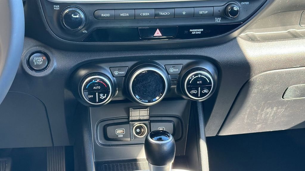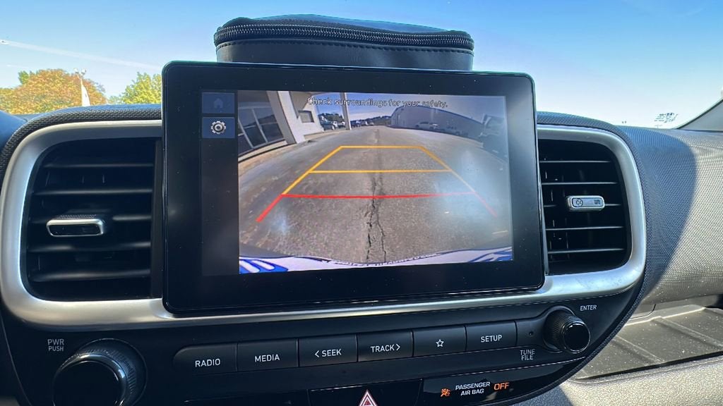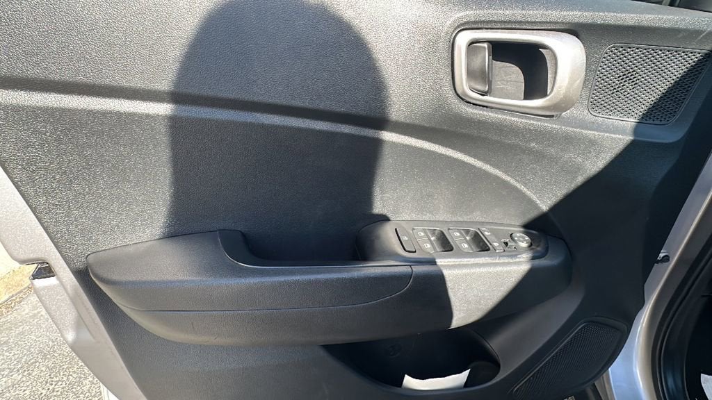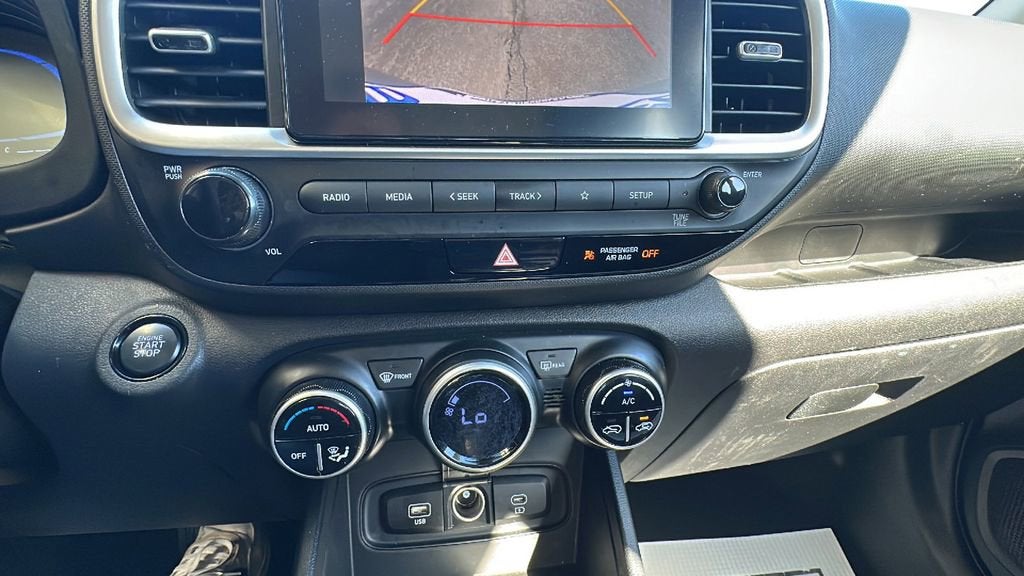 This 2024 Hyundai Venue is equipped with Option Group 01, 4-Wheel Disc Brakes, 6 Speakers, 6.052 Axle Ratio, 6.5J x 17 Alloy Wheels, ABS brakes, Air Conditioning, All-Weather Floor Mats, Alloy wheels, AM/FM radio, Apple CarPlay & Android Auto, Auto High-beam Headlights, Automatic temperature control, Brake assist, Bumpers: body-color, Cargo Net, Cargo Tray, Cloth Seat Trim, Delay-off headlights, Driver door bin, Driver vanity mirror, Dual front impact airbags, Dual front side impact airbags, Electronic Stability Control, First Aid Kit, Front anti-roll bar, Front Bucket Seats, Front Center Armrest, Front reading lights, Front wheel independent suspension, Fully automatic headlights, Illuminated entry, Leather Shift Knob, Leather steering wheel, Low tire pressure warning, Mudguards, Occupant sensing airbag, Outside temperature display, Overhead airbag, Overhead console, Panic alarm, Passenger door bin, Passenger vanity mirror, Power door mirrors, Power moonroof, Power steering, Power windows, Radio: AM/FM/HD Display Audio, Rear Seat Cup Holder, Rear window defroster, Rear window wiper, Remote keyless entry, Roof rack: rails only, Security system, Speed control, Speed-sensing steering, Split folding rear seat, Spoiler, Steering wheel mounted audio controls, Tachometer, Telescoping steering wheel, Tilt steering wheel, Traction control, Trip computer, and Variably intermittent wipers. 29/33 City/Highway MPG