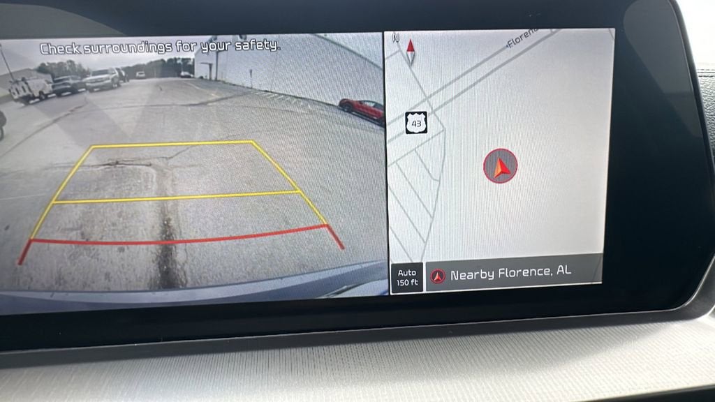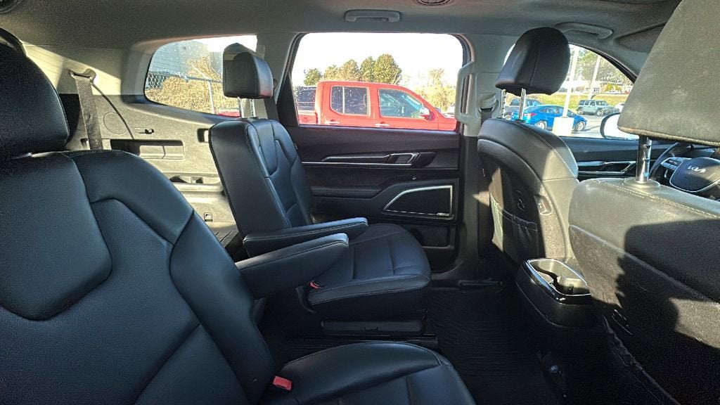 This 2024 Kia Telluride is equipped with S Sunroof Package (Power Sunroof w/Sunshade), Navigation System, 3.510 Axle Ratio, 3rd row seats: split-bench, 4-Wheel Disc Brakes, 6 Speakers, ABS brakes, Air Conditioning, Alloy wheels, AM/FM radio: SiriusXM, Apple CarPlay & Android Auto, Auto High-beam Headlights, Automatic temperature control, Brake assist, Bumpers: body-color, Carpet Floor Mats, Cross Bars, Delay-off headlights, Driver door bin, Driver vanity mirror, Dual front impact airbags, Dual front side impact airbags, Electrochromic Mirror w/HomeLink & Compass, Electronic Stability Control, Emergency communication system: 911 Connect, Exterior Parking Camera Rear, Four wheel independent suspension, Front anti-roll bar, Front Bucket Seats, Front Center Armrest, Front dual zone A/C, Front reading lights, Fully automatic headlights, Heated door mirrors, Heated Front Bucket Seats, Heated front seats, Illuminated entry, Knee airbag, Leather Shift Knob, Leather steering wheel, Low tire pressure warning, Occupant sensing airbag, Outside temperature display, Overhead airbag, Overhead console, Panic alarm, Passenger door bin, Passenger vanity mirror, Power door mirrors, Power driver seat, Power steering, Power windows, Radio data system, Radio: AM/FM Display Audio System, Rear air conditioning, Rear anti-roll bar, Rear audio controls, Rear reading lights, Rear side impact airbag, Rear window defroster, Rear window wiper, Reclining 3rd row seat, Remote keyless entry, Roof rack: rails only, Security system, Smart Key w/ Push Button and Remote Start, Speed control, Speed-sensing steering, Split folding rear seat, Spoiler, Steering wheel mounted audio controls, SynTex Synthetic Leather Seat Trim, Tachometer, Telescoping steering wheel, Tilt steering wheel, Traction control, Trip computer, Turn signal indicator mirrors, Variably intermittent wipers, and Wheels: 20 x 7.5 Black Finish.