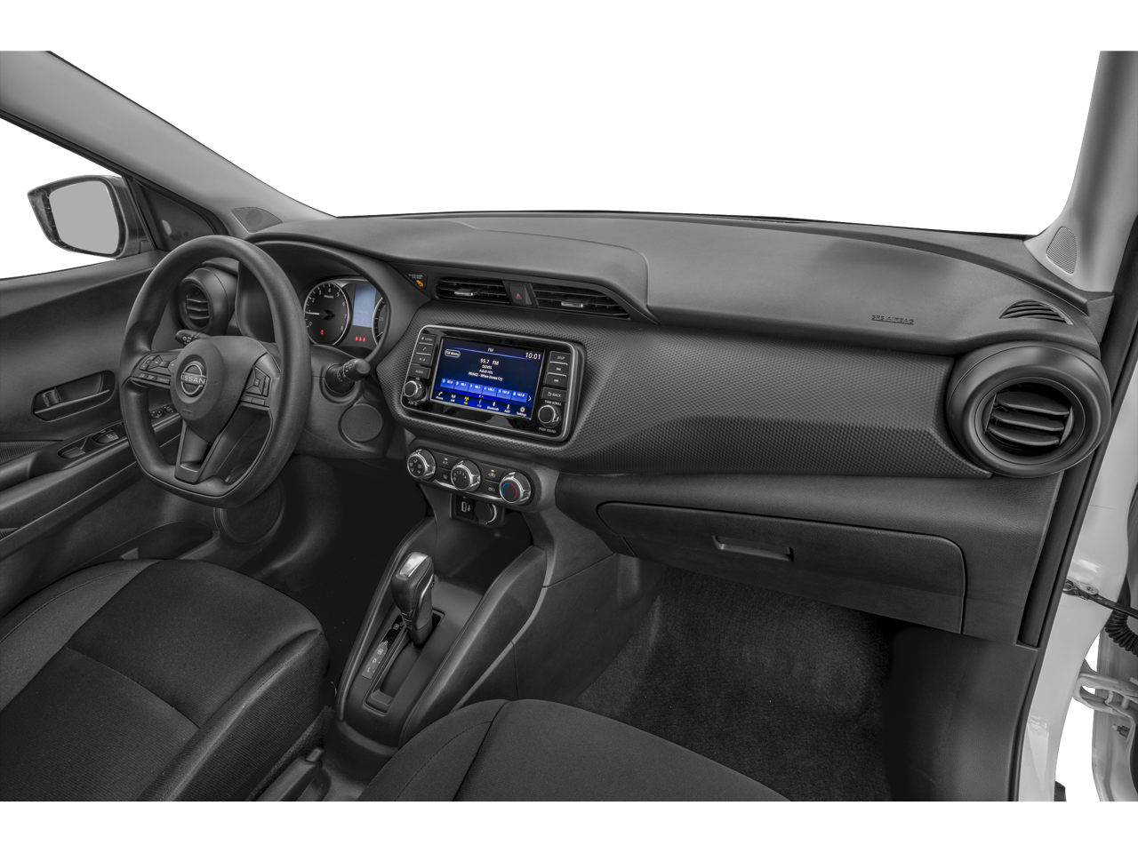 This 2024 Nissan Kicks is equipped with 16 Steel Wheels w/Full Covers, 3.93 Axle Ratio, 6 Speakers, ABS brakes, Air Conditioning, AM/FM radio, Apple CarPlay/Android Auto, Auto High-beam Headlights, Blind Spot Warning, Brake assist, Bumpers: body-color, Carpeted Floor Mats w/Cargo Mat, Center Armrest w/Storage, Cloth Seat Trim, Door Sill Plates, Driver door bin, Driver vanity mirror, Driver's Seat Mounted Armrest, Dual front impact airbags, Dual front side impact airbags, Electronic Stability Control, Front anti-roll bar, Front Bucket Seats, Front reading lights, Front wheel independent suspension, Fully automatic headlights, Illuminated entry, Knee airbag, Low tire pressure warning, Occupant sensing airbag, Outside temperature display, Overhead airbag, Panic alarm, Passenger door bin, Passenger vanity mirror, Power door mirrors, Power steering, Power windows, Radio data system, Radio: AM/FM Audio System, Rear Parking Sensors, Rear reading lights, Rear side impact airbag, Rear window defroster, Rear window wiper, Remote keyless entry, Speed control, Splash Guards Grain (4 Piece), Split folding rear seat, Sport steering wheel, Steering wheel mounted audio controls, Tachometer, Telescoping steering wheel, Tilt steering wheel, Traction control, Trip computer, USB Charging Cable Set - Nissan, and Variably intermittent wipers.