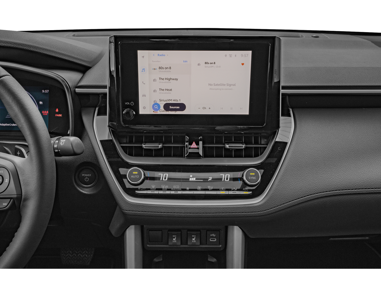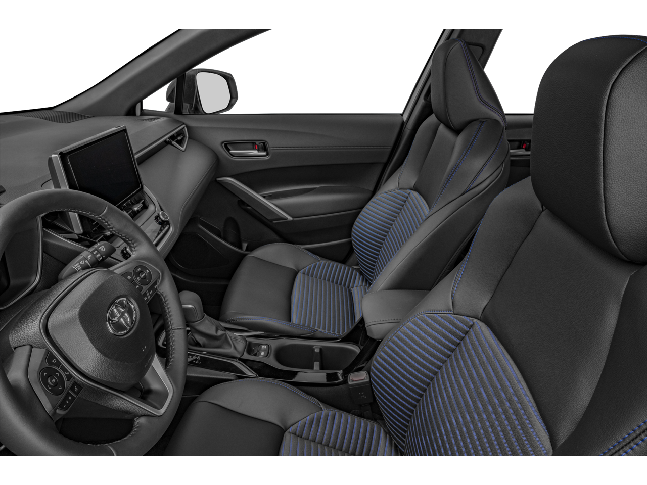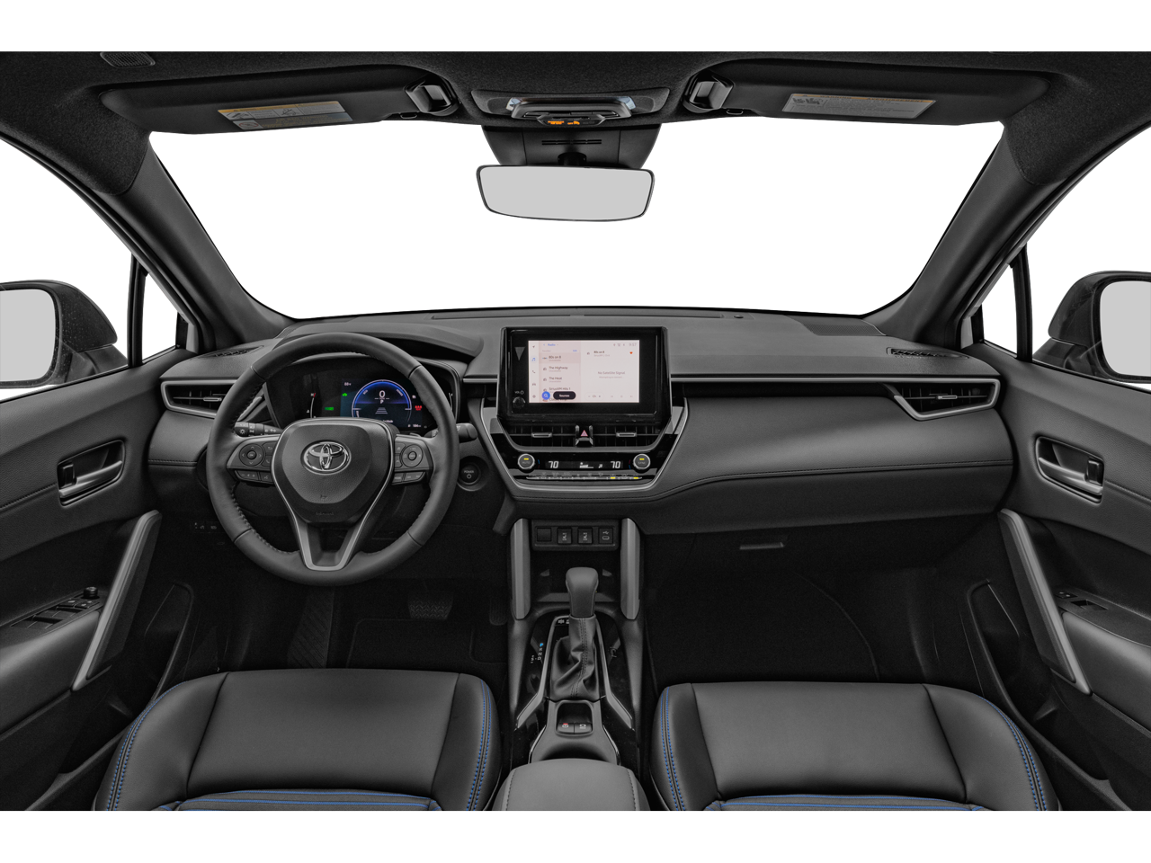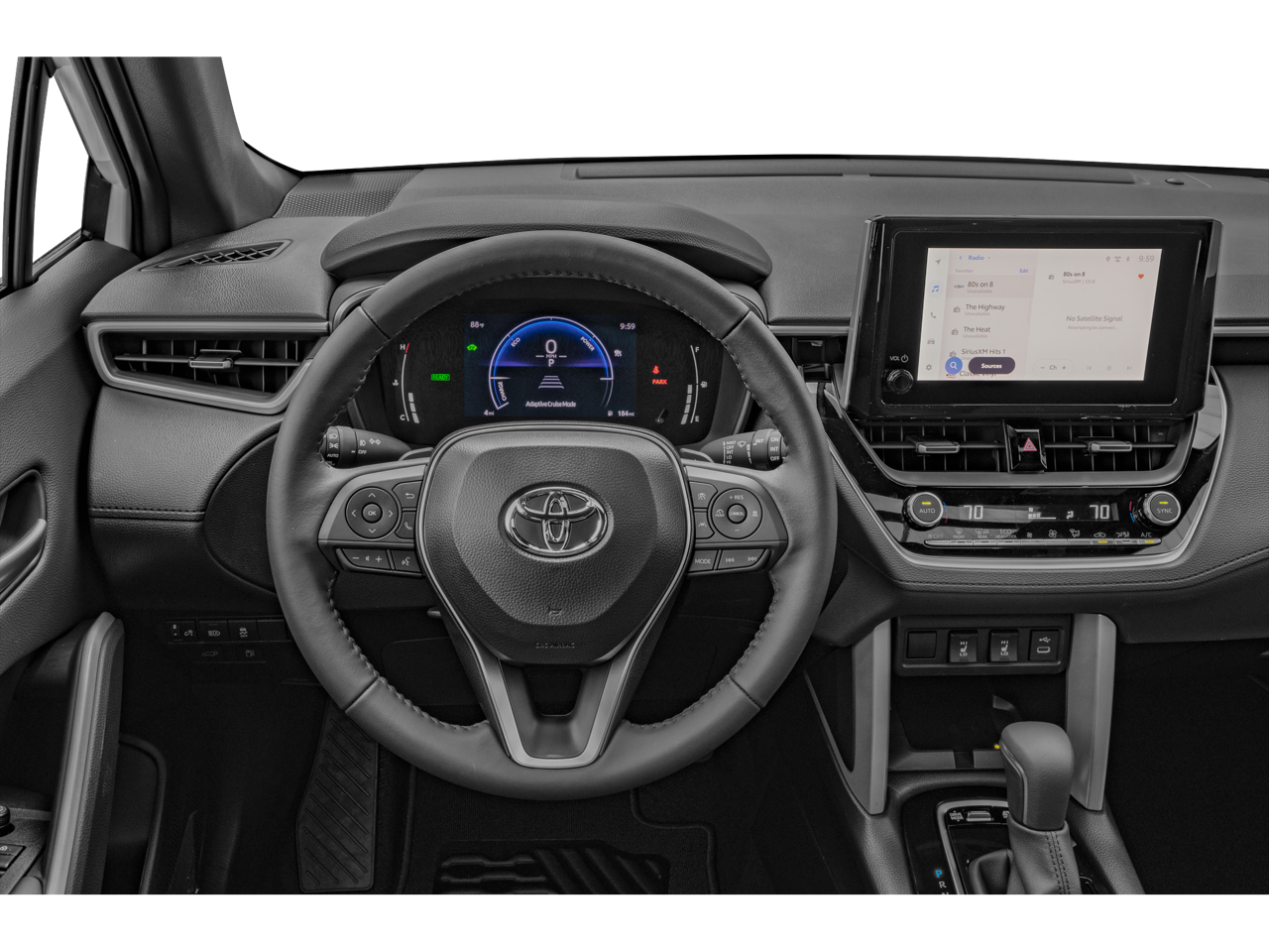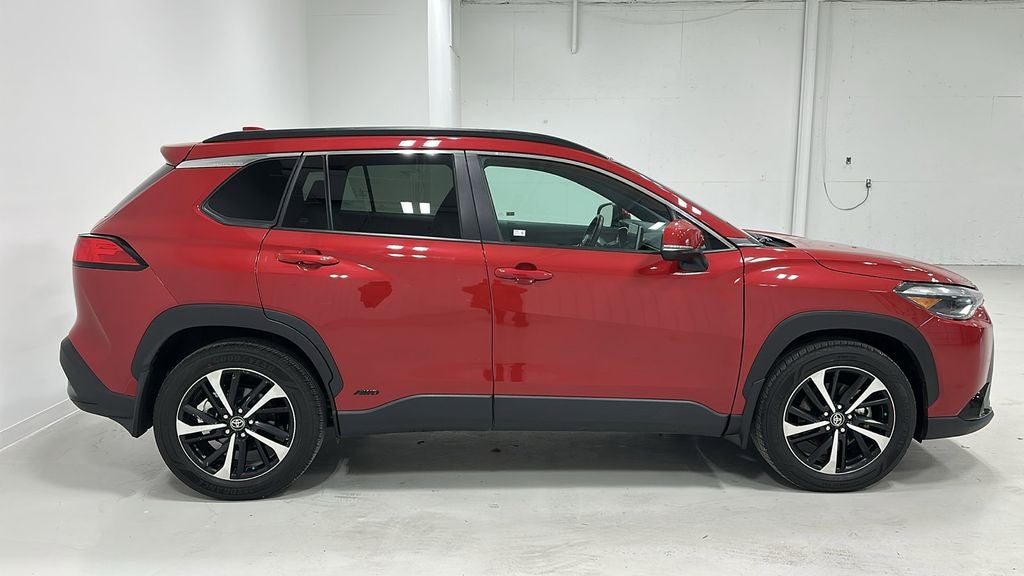 This 2024 Toyota Corolla Cross is equipped with Activity Package (TMS), Convenience Package (PBD Auto & Easy Closer Door and Tilt & Slide Sunroof & Moonroof), 2.0L I4 PDI Hybrid DOHC 16V LEV3-SULEV30 150hp, ABS brakes, Active Cruise Control, Alloy wheels, Electronic Stability Control, Front dual zone A/C, Heated door mirrors, Heated Front Bucket Seats, Heated front seats, Illuminated entry, Low tire pressure warning, Remote keyless entry, Traction control, 4-Wheel Disc Brakes, 6 Speakers, Air Conditioning, AM/FM radio: SiriusXM, Auto High-beam Headlights, Auto-dimming Rear-View mirror, Automatic temperature control, Brake assist, Bumpers: body-color, Delay-off headlights, Driver door bin, Driver vanity mirror, Dual front impact airbags, Dual front side impact airbags, Emergency communication system: Safety Connect (up to 10-year trial subscription), Exterior Parking Camera Rear, Four wheel independent suspension, Front anti-roll bar, Front Bucket Seats, Front Center Armrest, Front fog lights, Front reading lights, Fully automatic headlights, Garage door transmitter: HomeLink, Knee airbag, Leather Shift Knob, Leather steering wheel, Occupant sensing airbag, Outside temperature display, Overhead airbag, Panic alarm, Passenger door bin, Passenger vanity mirror, Power door mirrors, Power driver seat, Power steering, Power windows, Radio data system, Radio: 8 Touch-Screen Display Audio, Rear anti-roll bar, Rear seat center armrest, Rear side impact airbag, Rear window defroster, Rear window wiper, SofTex Mixed Media Seat Trim, Speed control, Split folding rear seat, Spoiler, Steering wheel mounted audio controls, Tachometer, TBD Axle Ratio, Telescoping steering wheel, Tilt steering wheel, Trip computer, Turn signal indicator mirrors, Variably intermittent wipers, and Wheels: 18 Black-Painted Machined Sport Alloy.