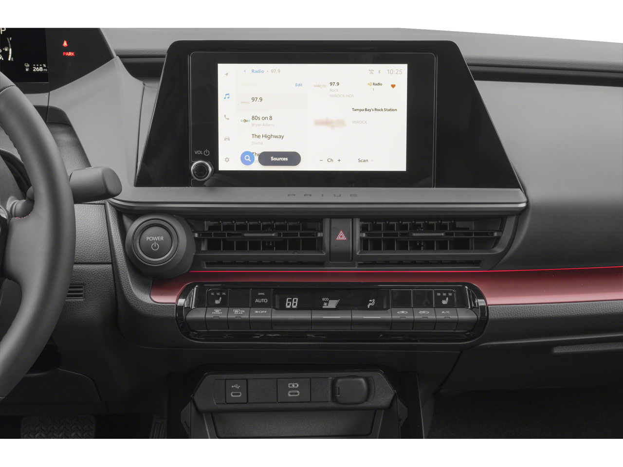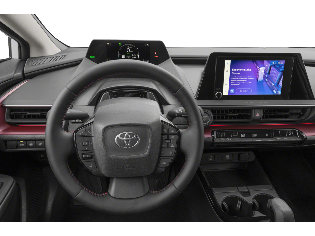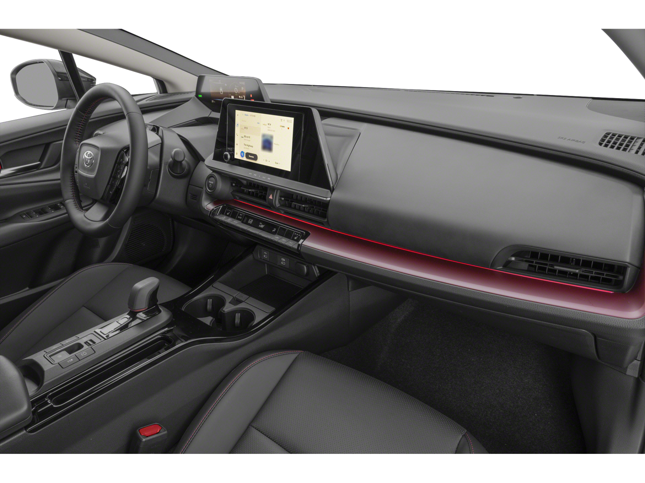 This 2024 Toyota Prius Prime is equipped with Navigation system: Drive Connect Cloud Navigation (1-year trial subscription), 4-Wheel Disc Brakes, 6 Speakers, ABS brakes, Air Conditioning, Alloy wheels, AM/FM radio: SiriusXM, Auto High-beam Headlights, Auto-dimming Rear-View mirror, Automatic temperature control, Brake assist, Bumpers: body-color, Delay-off headlights, Digital Key Capability, Driver door bin, Driver vanity mirror, Dual front impact airbags, Dual front side impact airbags, Electronic Stability Control, Emergency communication system: Safety Connect (up to 10-year trial subscription), Exterior Parking Camera Rear, Fixed Glass Roof, Four wheel independent suspension, Front anti-roll bar, Front Bucket Seats, Front Center Armrest, Front reading lights, Fully automatic headlights, Garage door transmitter: HomeLink, Heated door mirrors, Heated front seats, Heated Sport Front Bucket Seats, Heated steering wheel, Illuminated entry, Low tire pressure warning, Occupant sensing airbag, Outside temperature display, Overhead airbag, Overhead console, Panic alarm, Passenger door bin, Passenger vanity mirror, Power door mirrors, Power driver seat, Power steering, Power windows, Radio data system, Radio: Toyota Audio Multimedia w/12.3 Touchscreen, Radio: Toyota Audio Multimedia w/8 Touchscreen, Rain sensing wipers, Rear anti-roll bar, Rear reading lights, Rear seat center armrest, Rear side impact airbag, Rear window defroster, Remote keyless entry, SofTex Seat Trim, Speed control, Speed-Sensitive Wipers, Split folding rear seat, Steering wheel mounted audio controls, Telescoping steering wheel, Tilt steering wheel, Traction control, Trip computer, Variably intermittent wipers, and Wheels: 19 x 6.5J Machine Finished Aluminum Alloy.