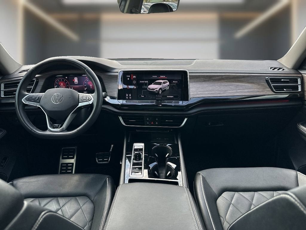 This 2024 Volkswagen Atlas is equipped with Navigation System, 10 Speakers, 3.60 Axle Ratio, 3rd row seats: split-bench, 4-Wheel Disc Brakes, ABS brakes, Air Conditioning, Alloy wheels, AM/FM radio: SiriusXM with 360L, Auto High-beam Headlights, Auto-dimming Rear-View mirror, Automatic temperature control, Brake assist, Bumpers: body-color, Compass, Delay-off headlights, Driver door bin, Driver vanity mirror, Dual front impact airbags, Dual front side impact airbags, Electronic Stability Control, Emergency communication system: VW Car-Net Safe & Secure 5-year, Exterior Parking Camera Rear, Four wheel independent suspension, Front anti-roll bar, Front Bucket Seats, Front Center Armrest, Front dual zone A/C, Front fog lights, Front reading lights, Fully automatic headlights, harman/kardon® Speakers, Heads-Up Display, Heated door mirrors, Heated front seats, Heated rear seats, Heated steering wheel, Heated/Actively Ventilated Front Bucket Seats, Illuminated entry, Leather steering wheel, Low tire pressure warning, Memory seat, Occupant sensing airbag, Outside temperature display, Overhead airbag, Overhead console, Panic alarm, Passenger door bin, Passenger vanity mirror, Perforated Vienna Leather Seating Surfaces, Power door mirrors, Power driver seat, Power Liftgate, Power moonroof: Panoramic, Power passenger seat, Power steering, Power windows, Radio data system, Radio: MIB3 Discover Media w/Navigation, Rain sensing wipers, Rear air conditioning, Rear anti-roll bar, Rear audio controls, Rear reading lights, Rear seat center armrest, Rear window defroster, Rear window wiper, Remote keyless entry, Security system, Speed control, Speed-sensing steering, Split folding rear seat, Spoiler, Sport steering wheel, Standard Suspension, Steering wheel mounted audio controls, Tachometer, Telescoping steering wheel, Tilt steering wheel, Traction control, Trip computer, Turn signal indicator mirrors, Variably intermittent wipers, Ventilated front seats, and Wheels: 21 2-Tone Machined Alloy. Recent Arrival!