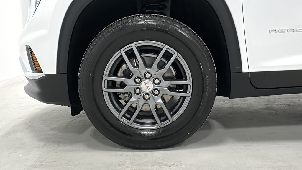 This 2025 GMC Acadia is equipped with Preferred Equipment Group 4SC, FWD, After Dark Cloth, 12 Speakers, 18 x 7.5 Aluminum Wheels, 2-Way Driver Power Lumbar Seat Adjuster, 3.49 Final Drive Axle Ratio, 3rd row seats: split-bench, 4-Way Manual Front Passenger Seat Adjuster, 4-Wheel Disc Brakes, 8-Passenger Seating (2-3-3 Seating Configuration), 8-Way Power Driver Seat Adjuster, ABS brakes, Air Conditioning, Alloy wheels, AM/FM radio: SiriusXM with 360L, Apple CarPlay/Android Auto, Auto High-beam Headlights, Auto-dimming Rear-View mirror, Automatic temperature control, Bodyside moldings, Brake assist, Bumpers: body-color, Cloth Seat Trim, Compass, Delay-off headlights, Driver door bin, Driver vanity mirror, Dual front impact airbags, Dual front side impact airbags, Electronic Stability Control, Emergency communication system: OnStar Services capable, Exterior Parking Camera Rear, Four wheel independent suspension, Front anti-roll bar, Front Bucket Seats, Front Center Armrest, Front dual zone A/C, Front fog lights, Front reading lights, Fully automatic headlights, Heated door mirrors, Heated front seats, Heated steering wheel, Illuminated entry, Leather steering wheel, Low tire pressure warning, Navigation System, Occupant sensing airbag, Outside temperature display, Overhead airbag, Overhead console, Panic alarm, Passenger door bin, Passenger vanity mirror, Power door mirrors, Power driver seat, Power Liftgate, Power steering, Power windows, Radio data system, Rear air conditioning, Rear anti-roll bar, Rear reading lights, Rear seat center armrest, Rear side impact airbag, Rear window defroster, Rear window wiper, Remote keyless entry, Security system, Speed control, Speed-sensing steering, Split folding rear seat, Spoiler, Sport steering wheel, Steering wheel mounted audio controls, Tachometer, Telescoping steering wheel, Tilt steering wheel, Traction control, Trip computer, Turn signal indicator mirrors, Variably intermittent wipers, and Voltmeter. 20/27 City/Highway MPG